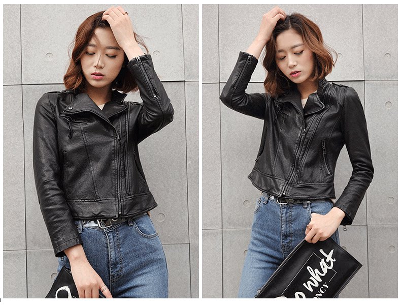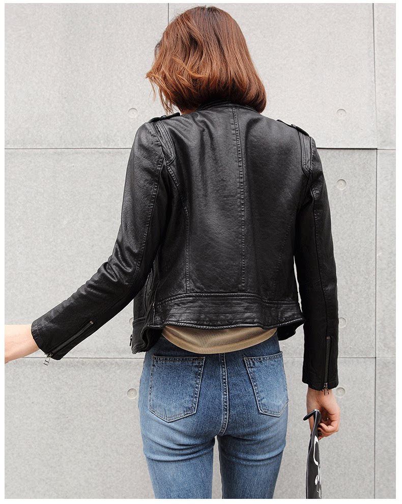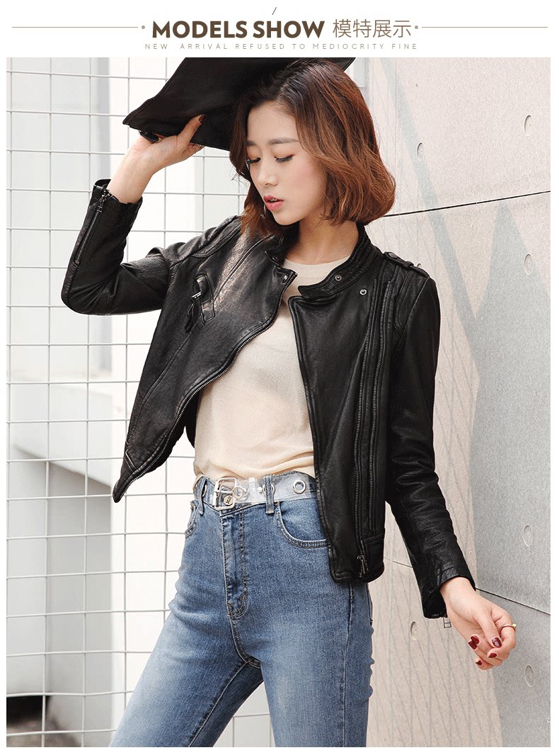 2024 Haining new spring and autumn genuine leather jacket for women sheepskin motorcycle slim short stand collar leather jacket