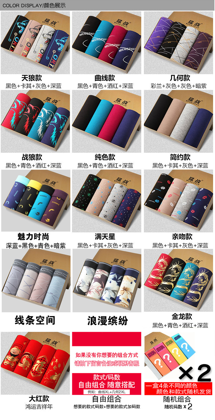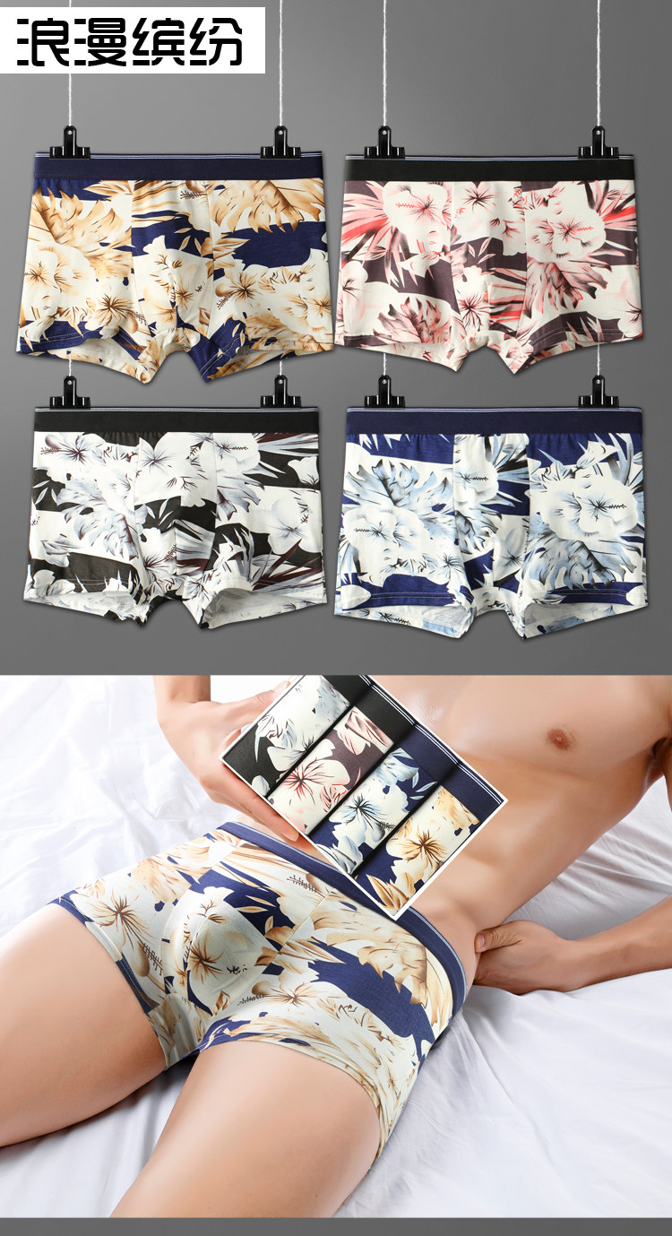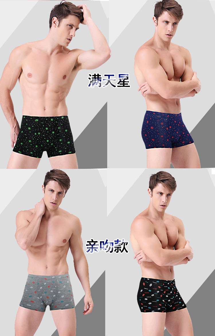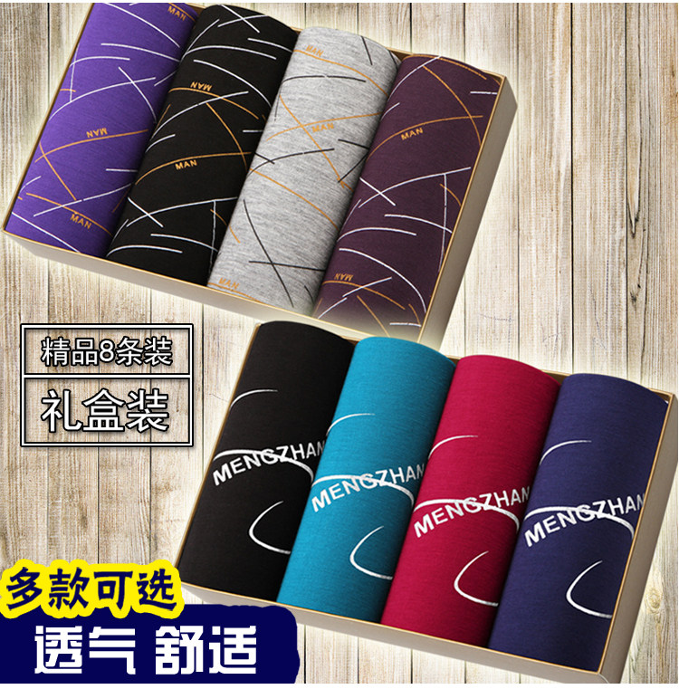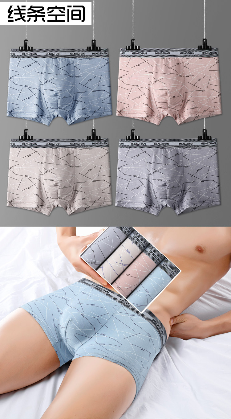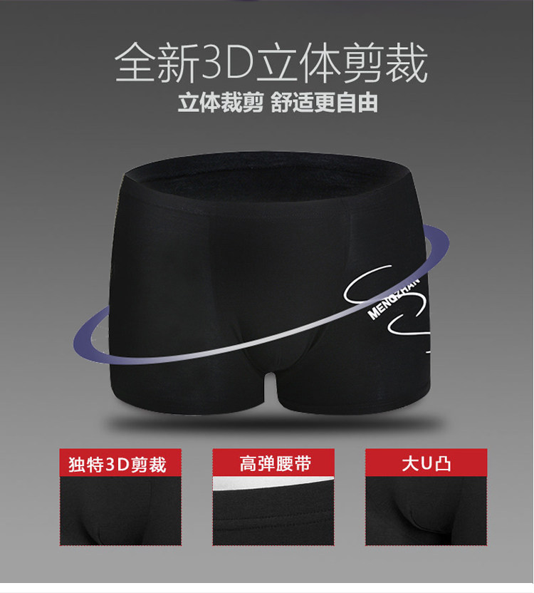 Men's Modal Underwear, Pure Cotton Boxer Briefs, Ice Silk Youth Underpants, All-Cotton Four-Corner Bamboo Fiber Briefs, Trendy