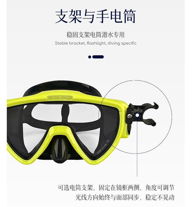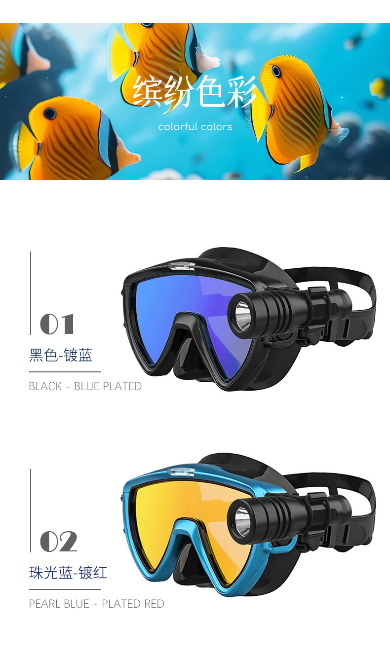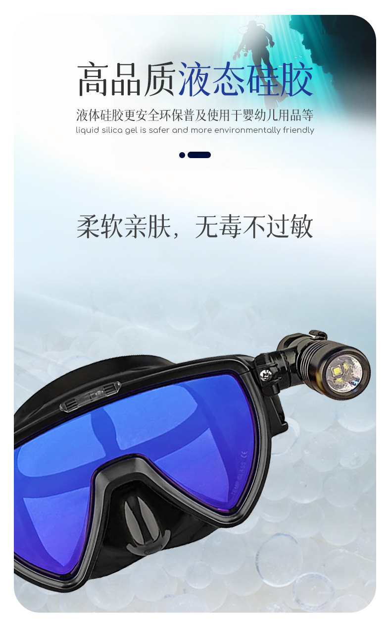 Diving mask with flashlight liquid silicone mask tempered glass single lens anti-fog snorkeling mask flashlight holder