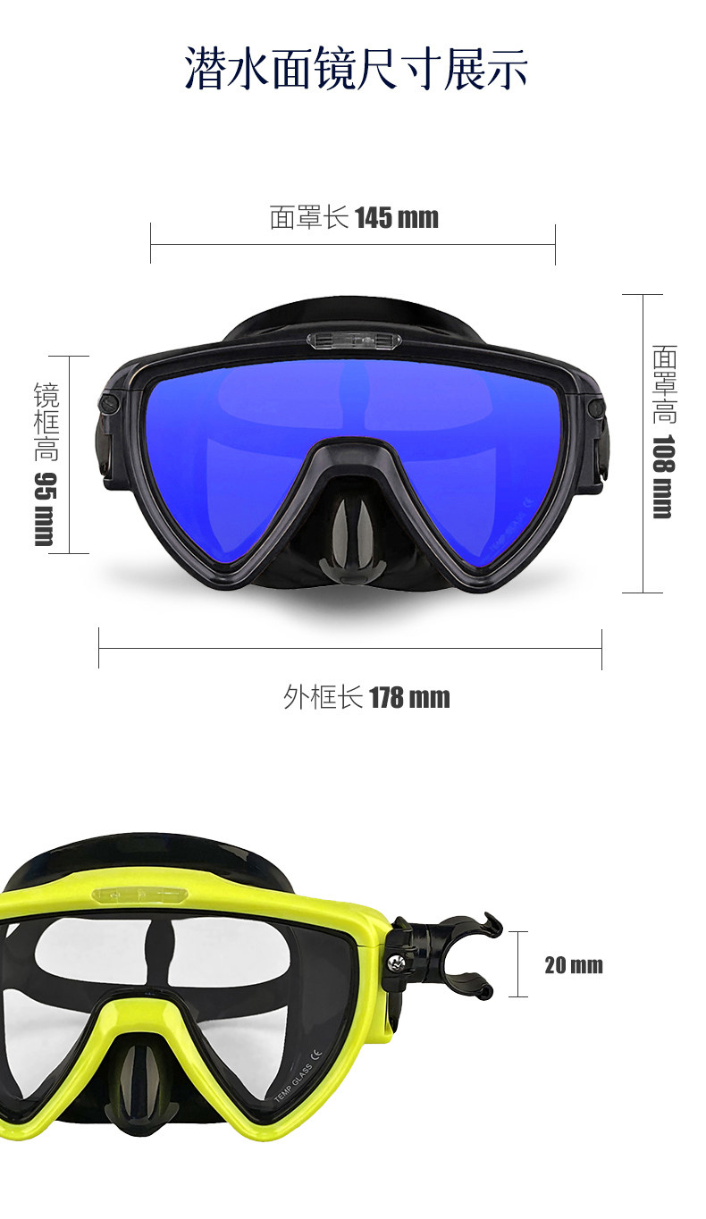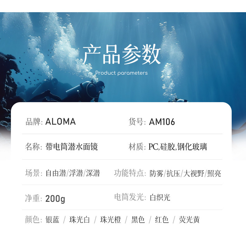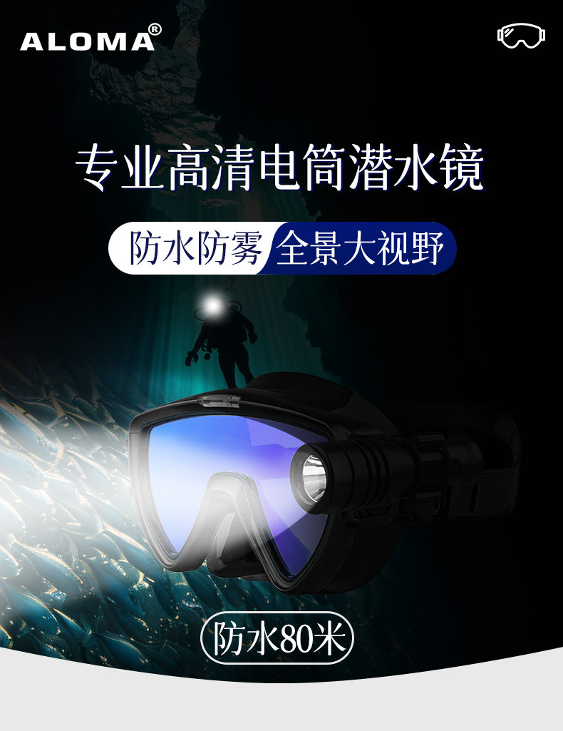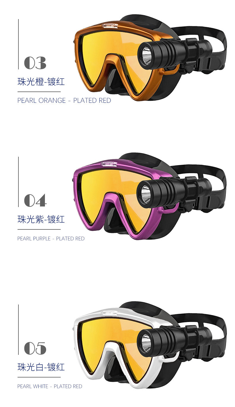 Diving mask with flashlight liquid silicone mask tempered glass single lens anti-fog snorkeling mask flashlight holder