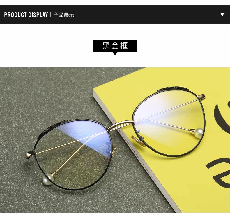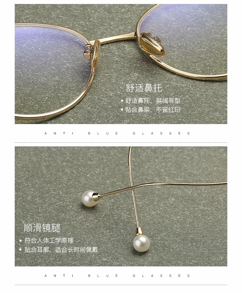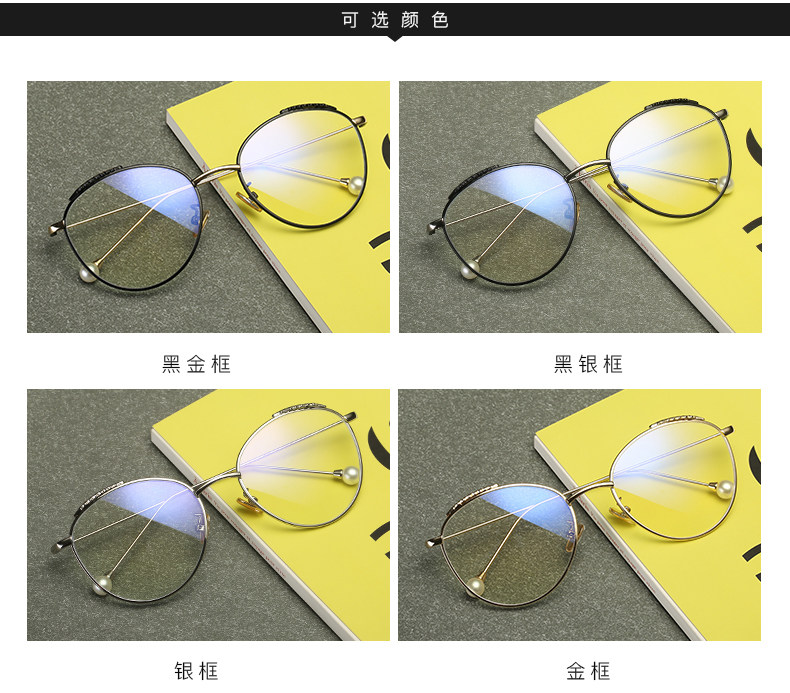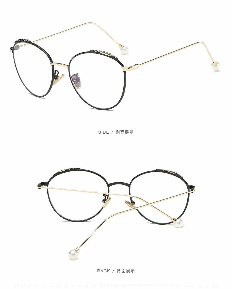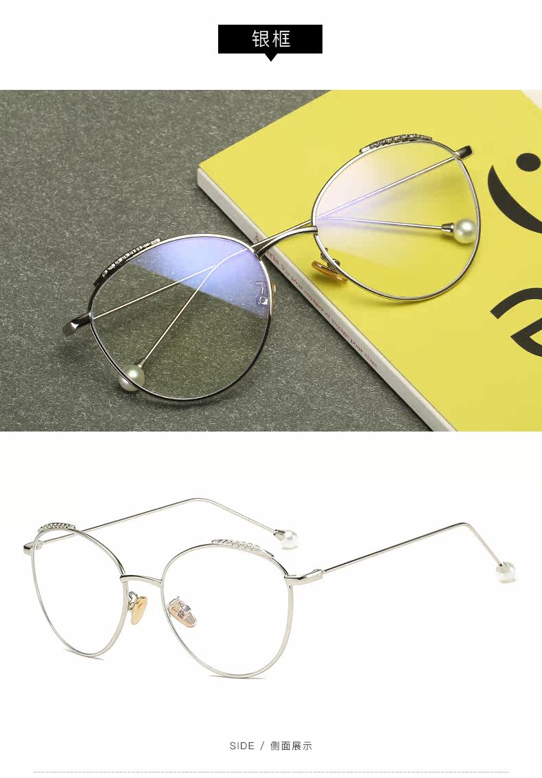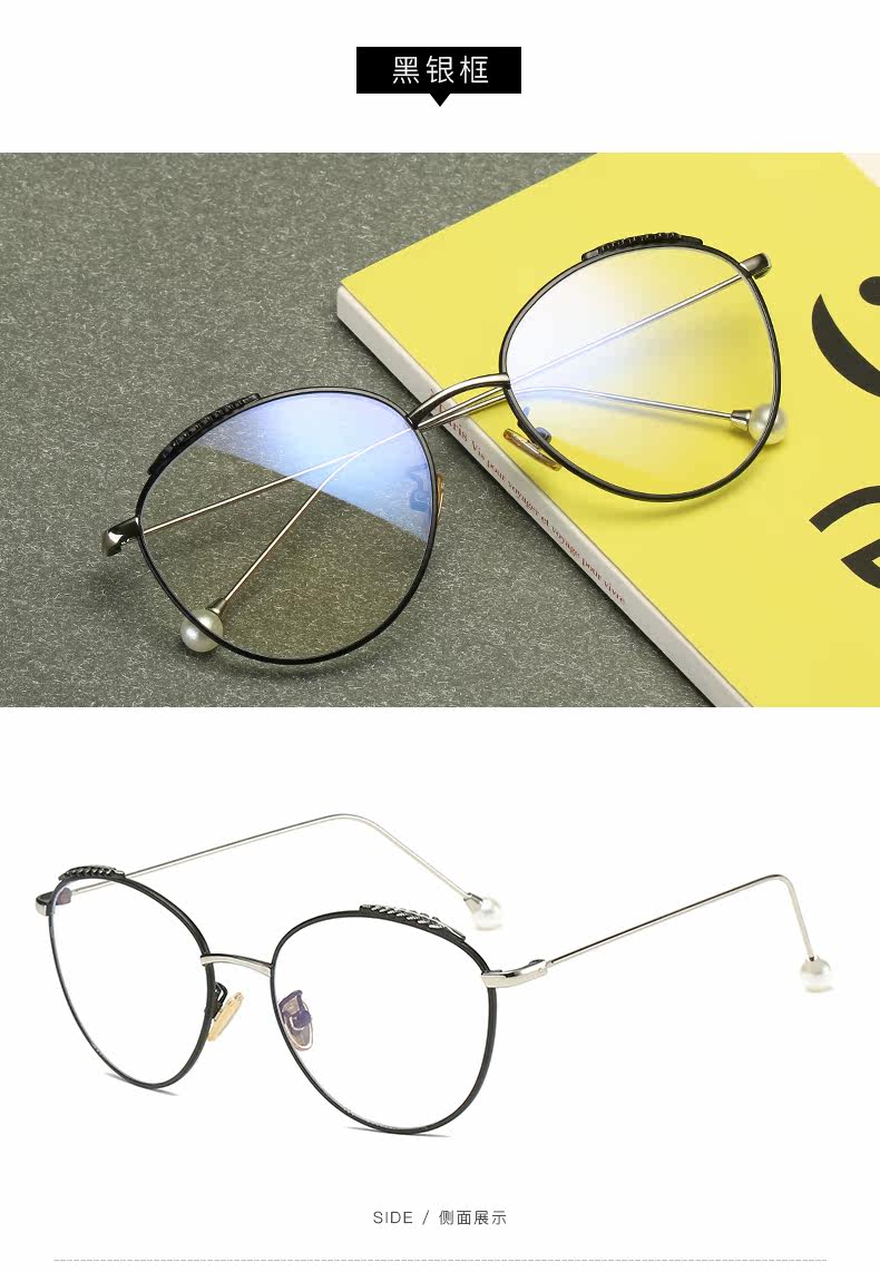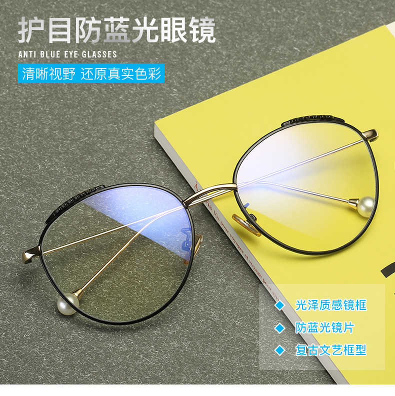 Radiation-proof blue light glasses frame for women, Korean version, trendy, plain-faced, large-frame, myopic eyes, internet celebrity wheat ear pearl style flat mirror