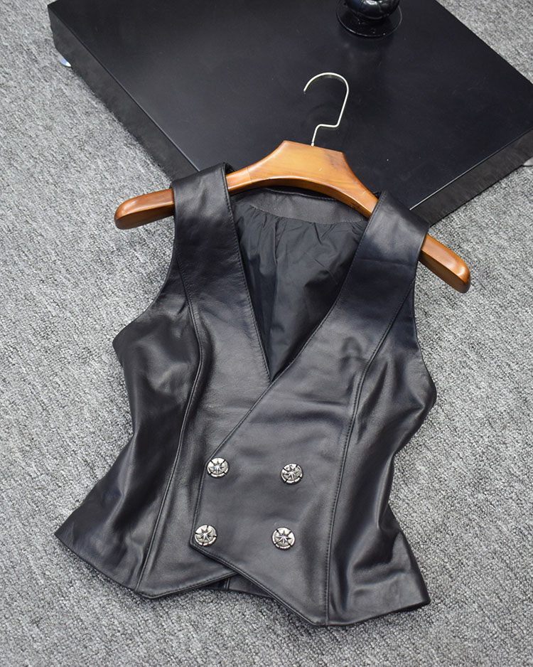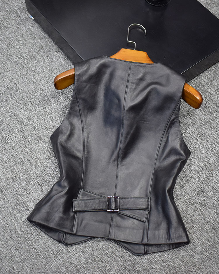 Haining Leather Vest Women's Autumn New Fashion Versatile Slim Sheepskin Vest Jacket Genuine Leather Pony Clip