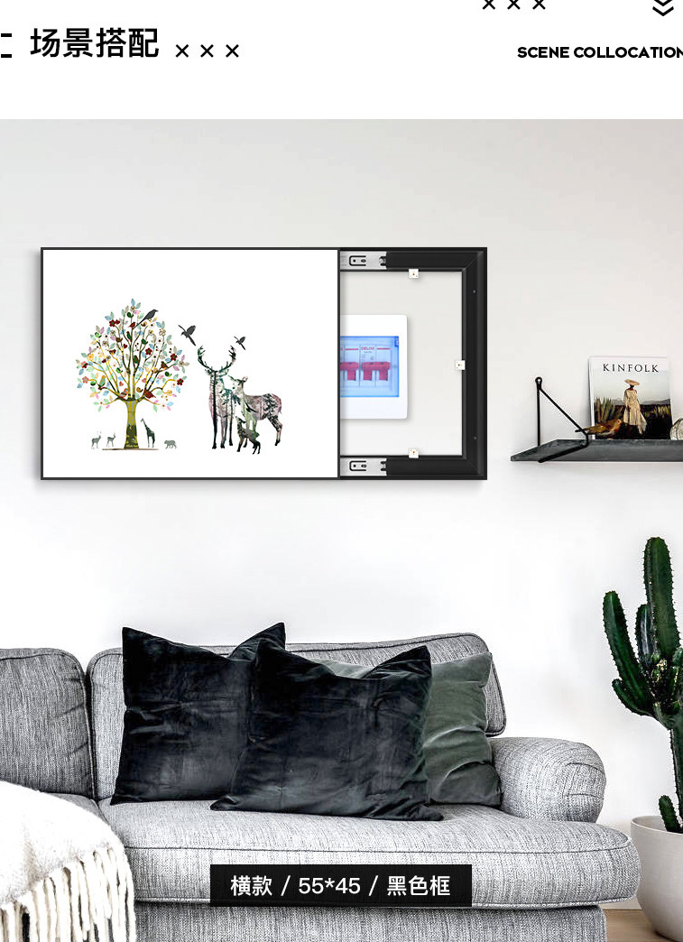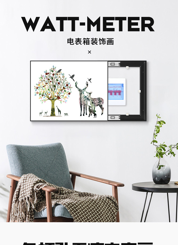 Zählerkasten, dekorative Malerei, frei von Stanzen, modern, einfach, nordischer Verteilerkasten, blockierender Wand-Stromkasten, Elektrokasten, hängende Malerei