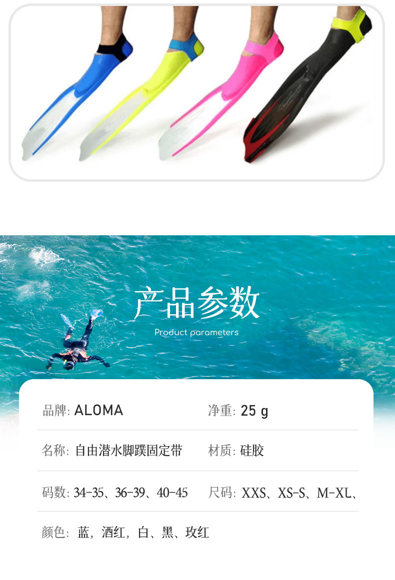 Elastic silicone fins with fins fixed ring to prevent falling off and flippers fixed belt for swimming, deep diving and snorkeling to prevent falling off