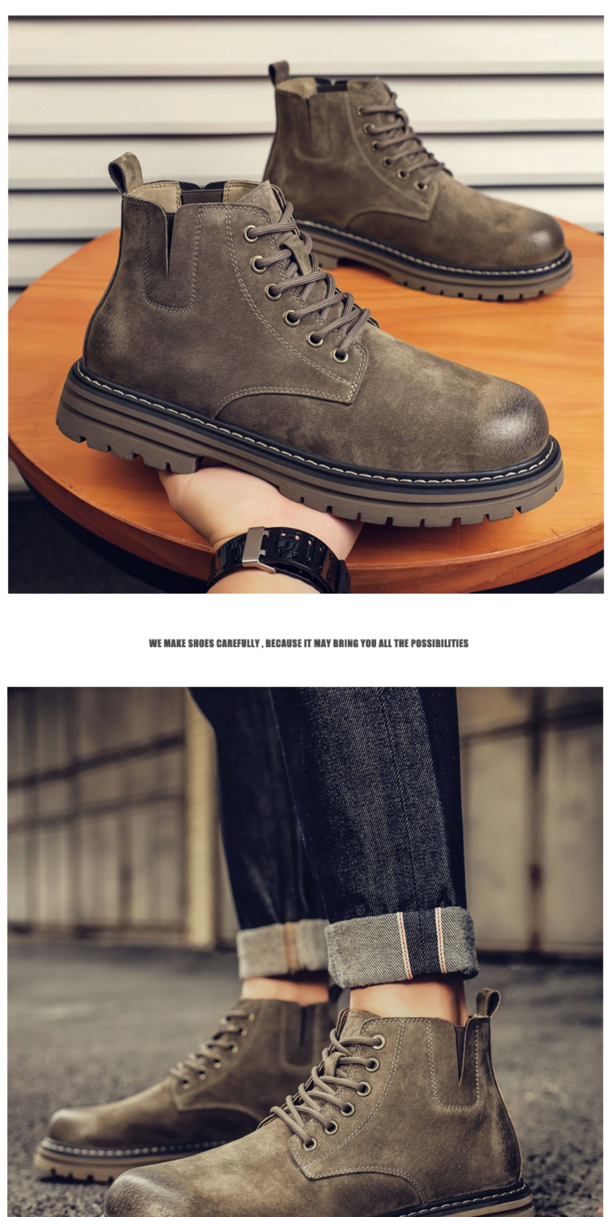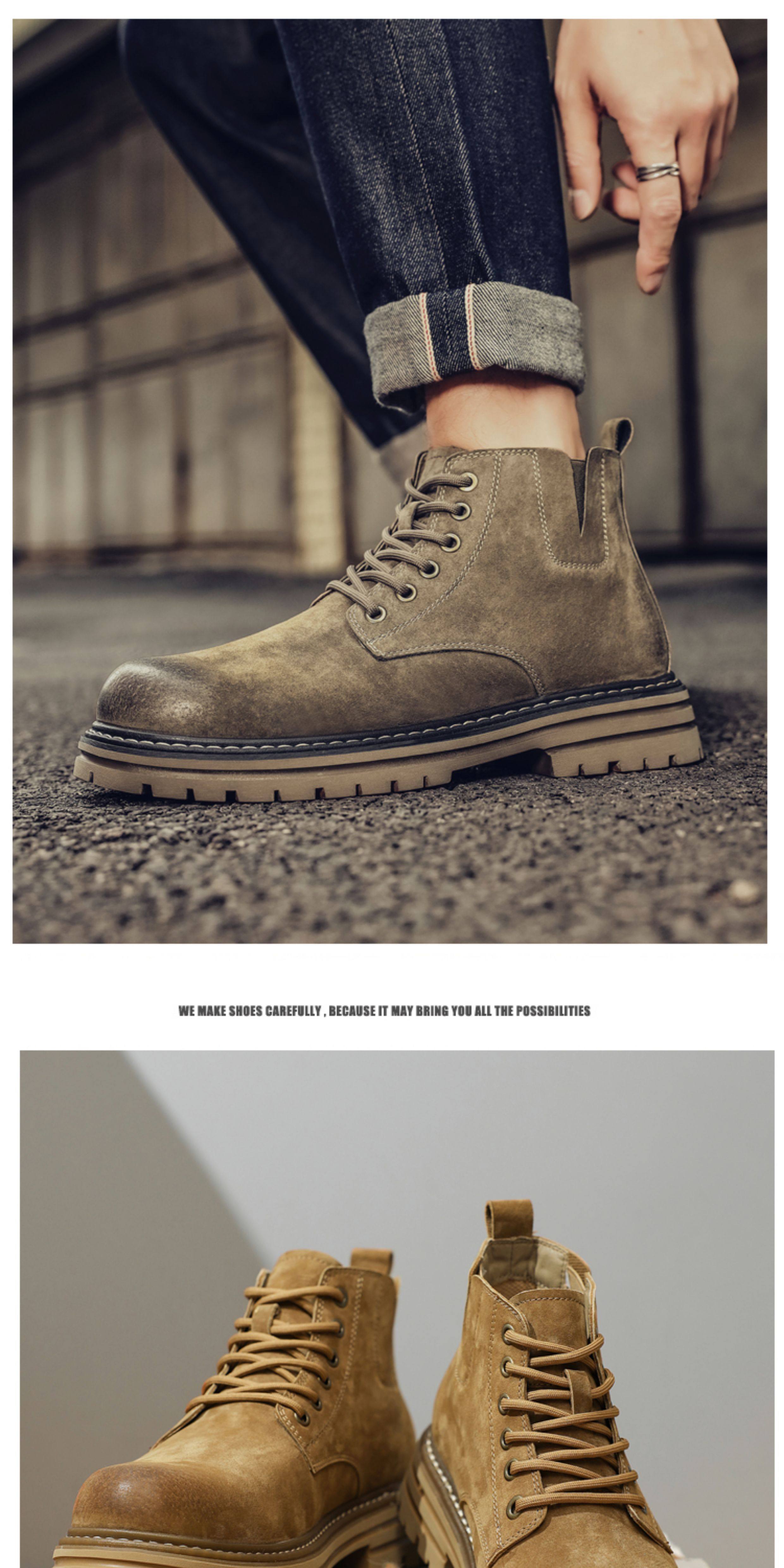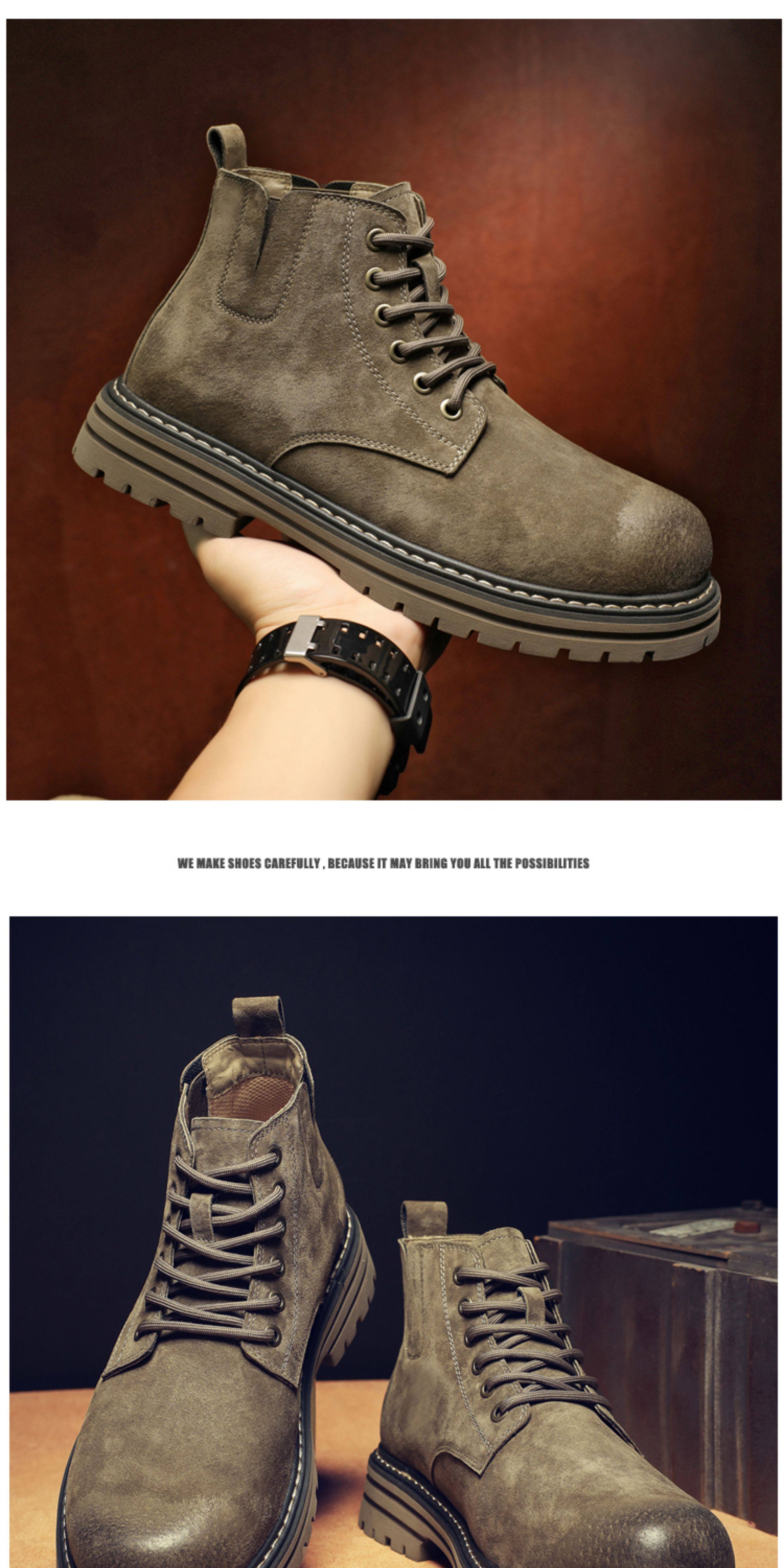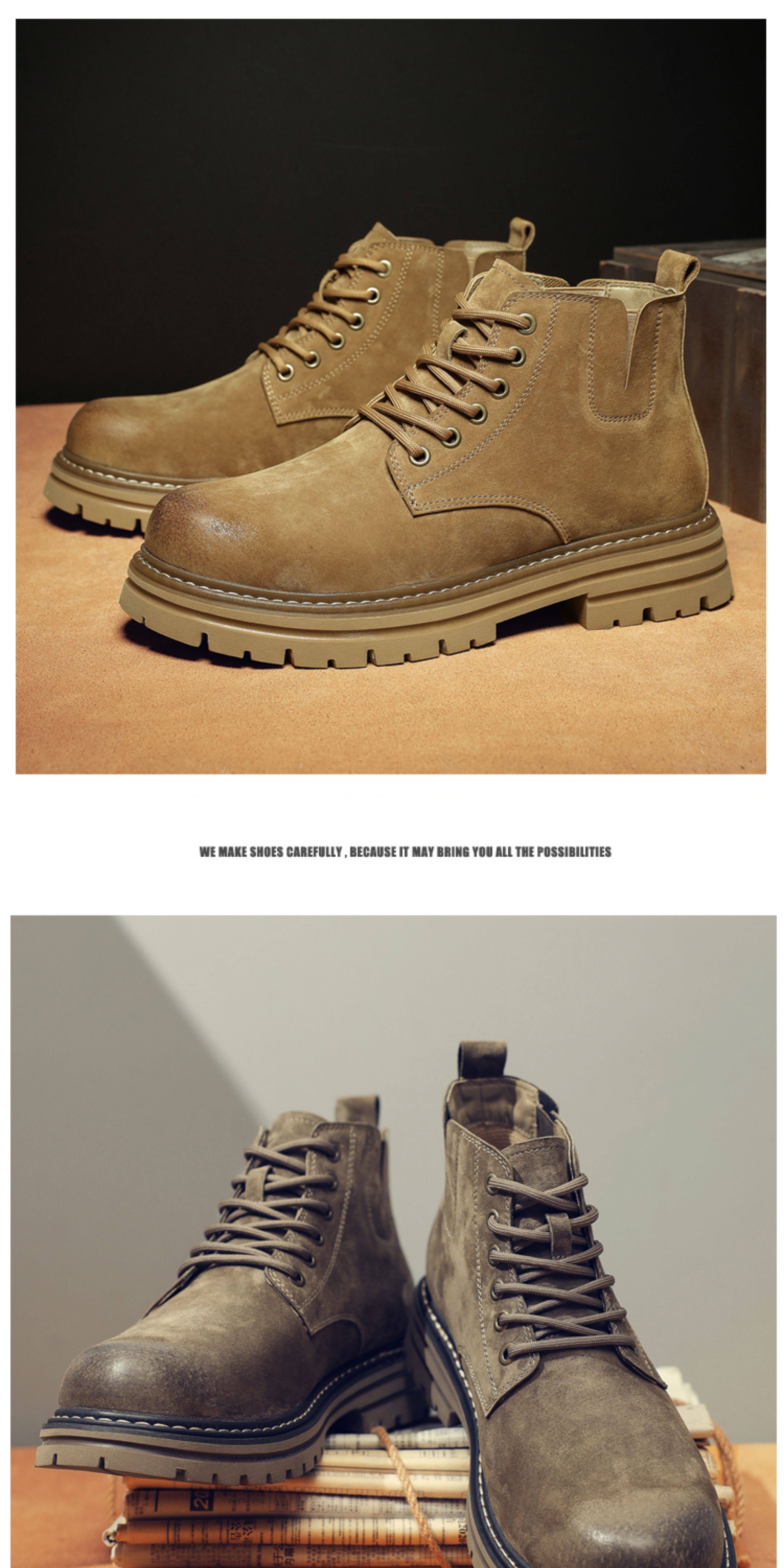 Martin Boots for Men, Winter Breathable High-Top Shoes, Trendy Genuine Leather British Style Short Boots, New Retro Mid-Top Work Boots