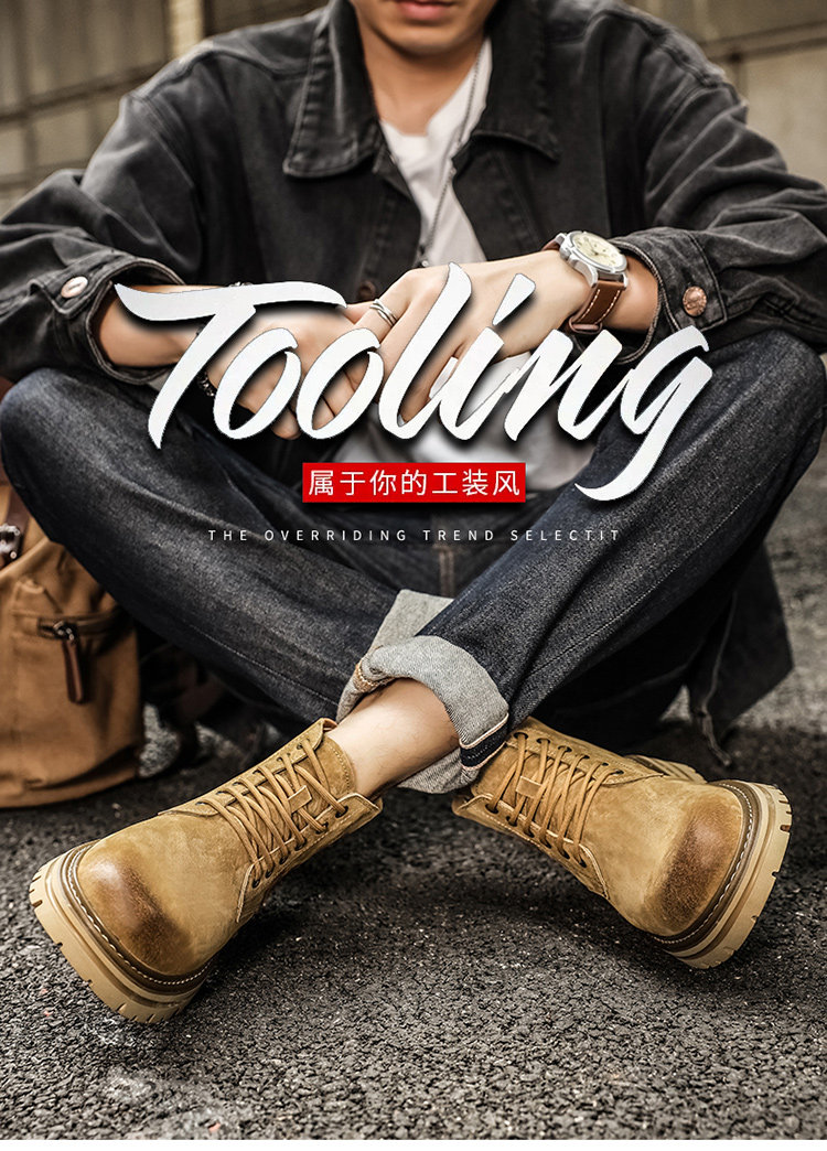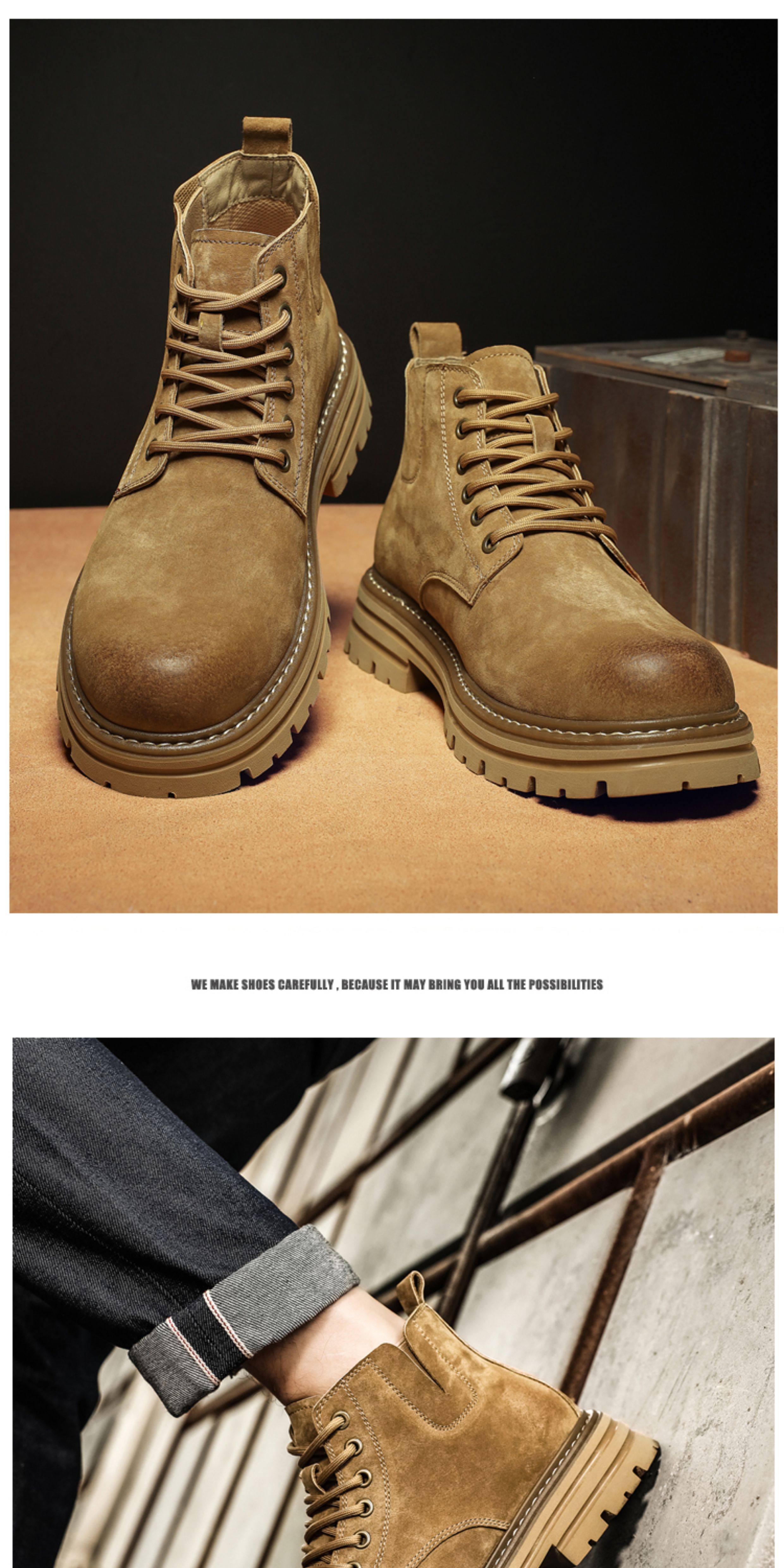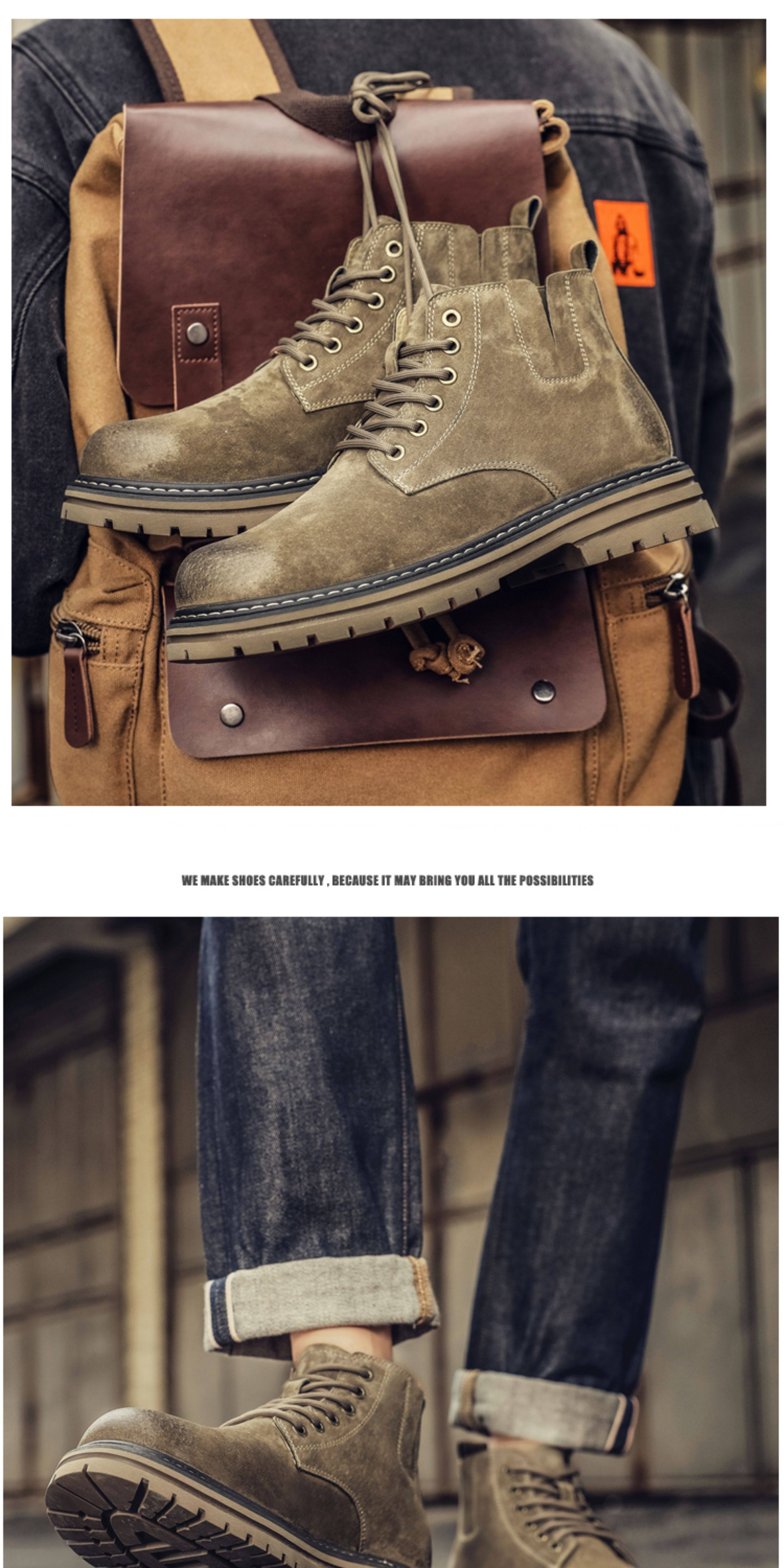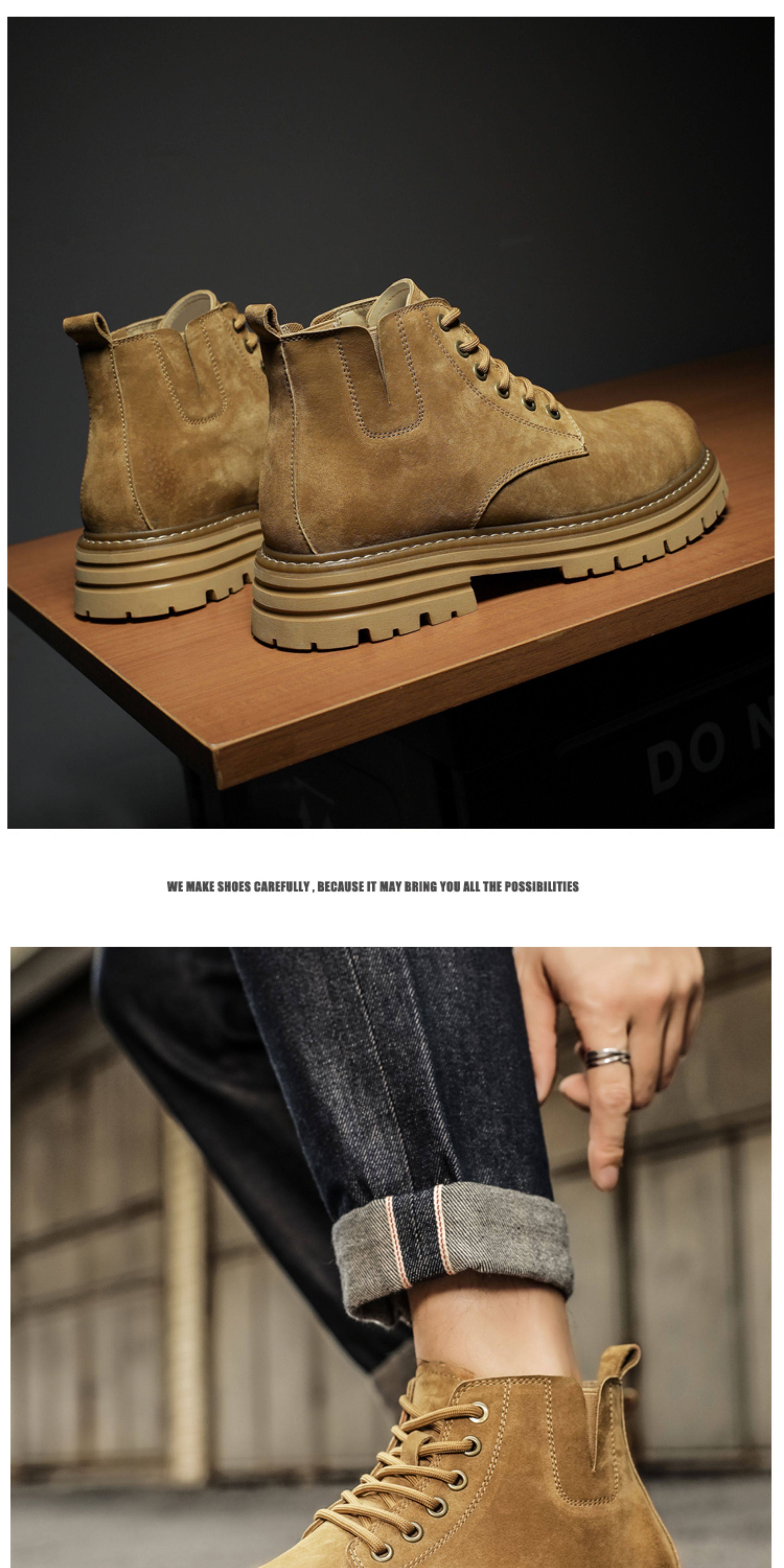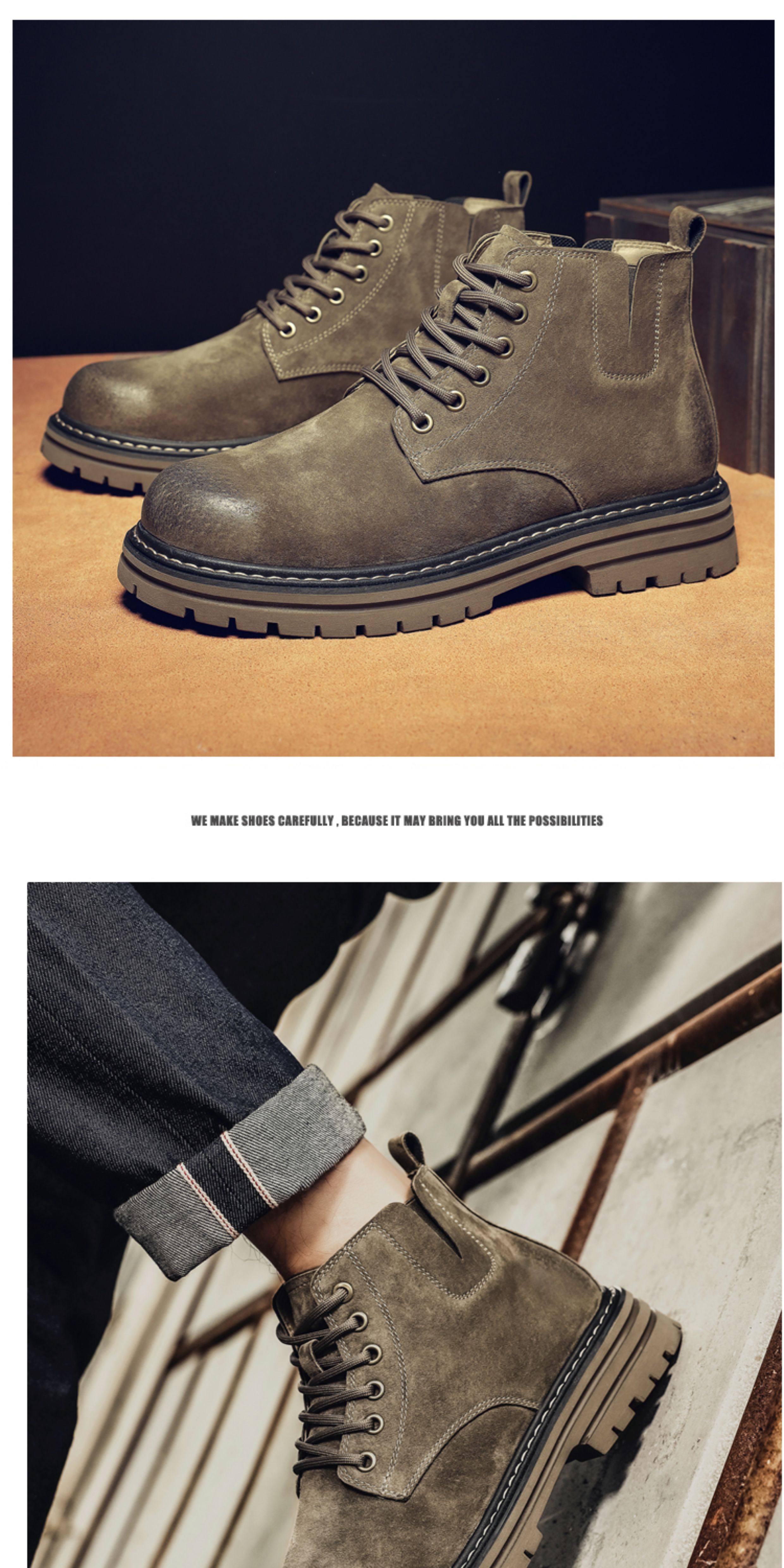 Martin Boots for Men, Winter Breathable High-Top Shoes, Trendy Genuine Leather British Style Short Boots, New Retro Mid-Top Work Boots