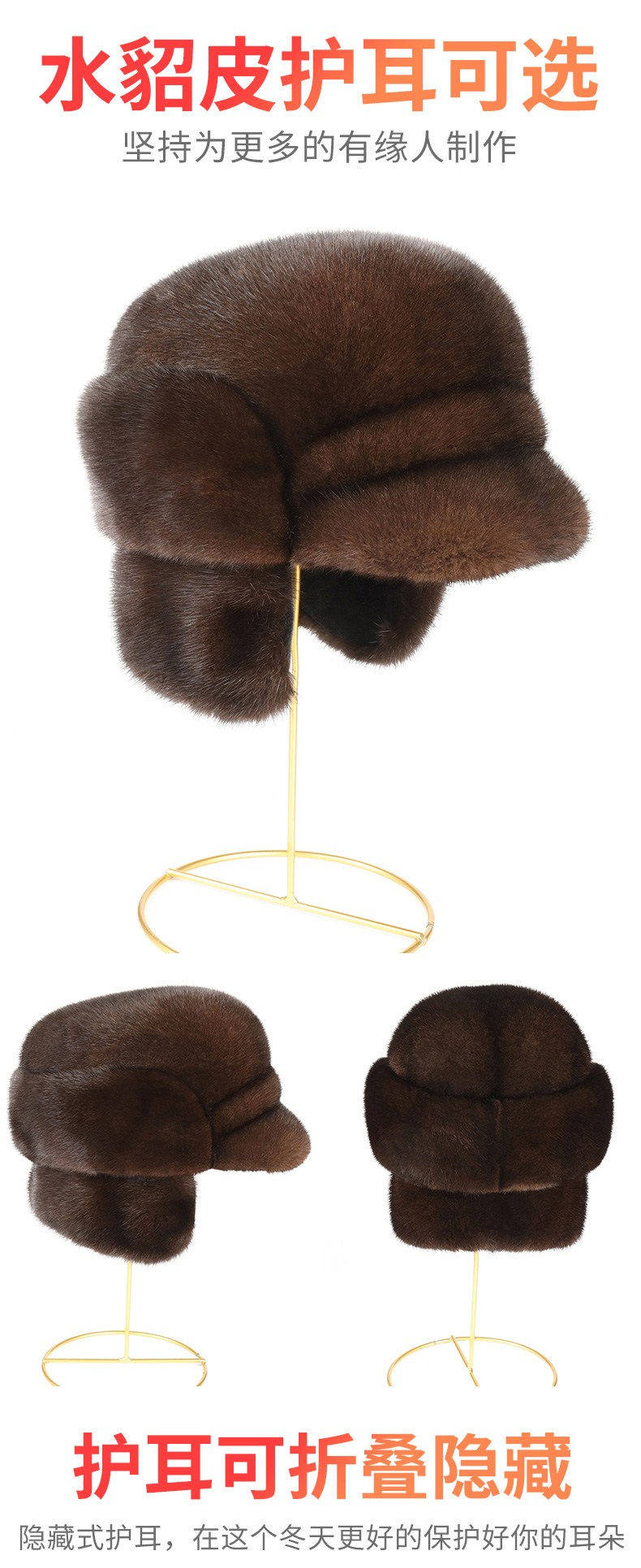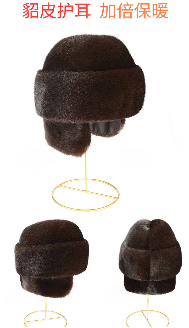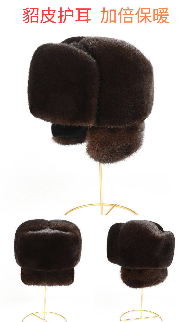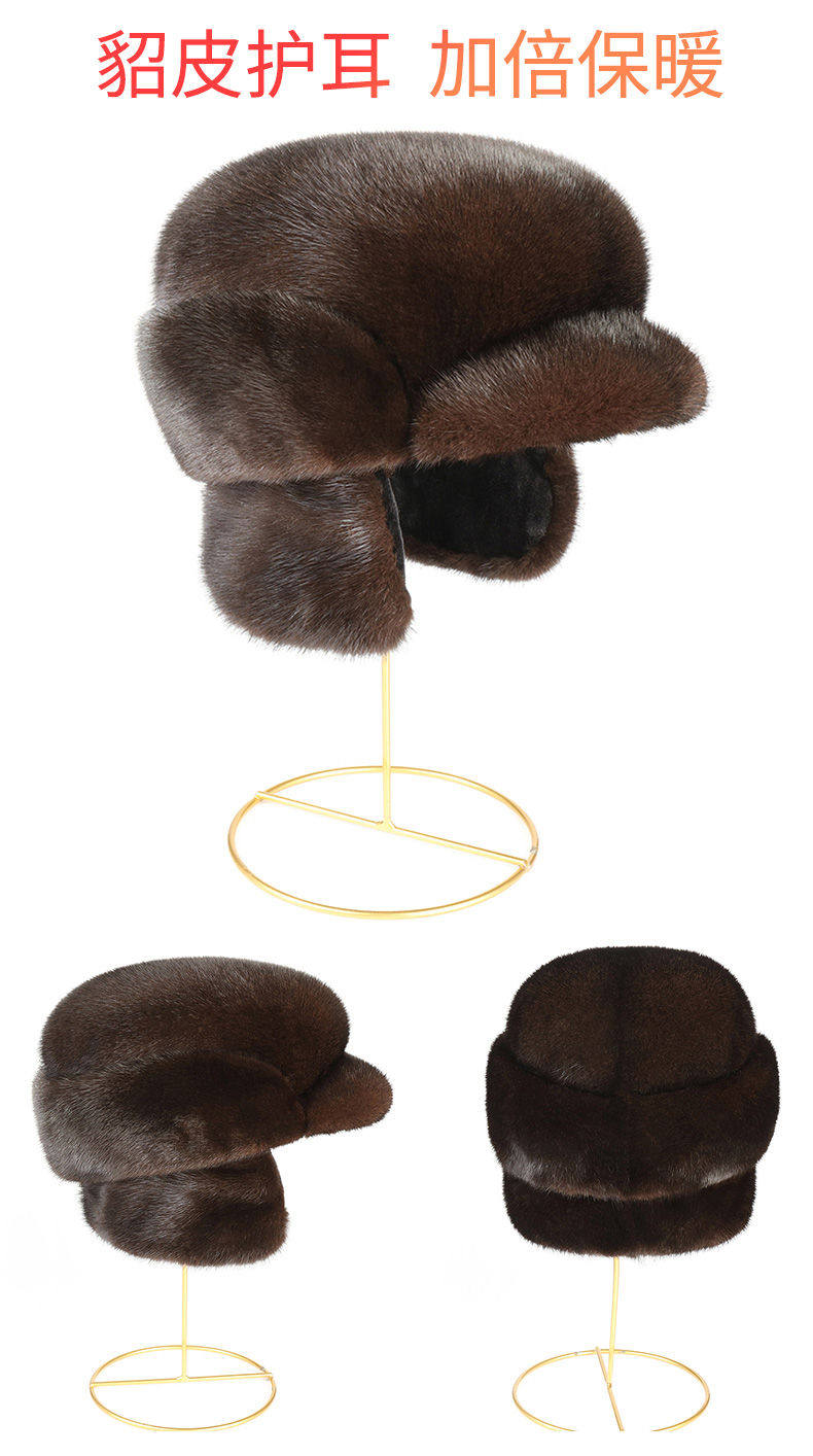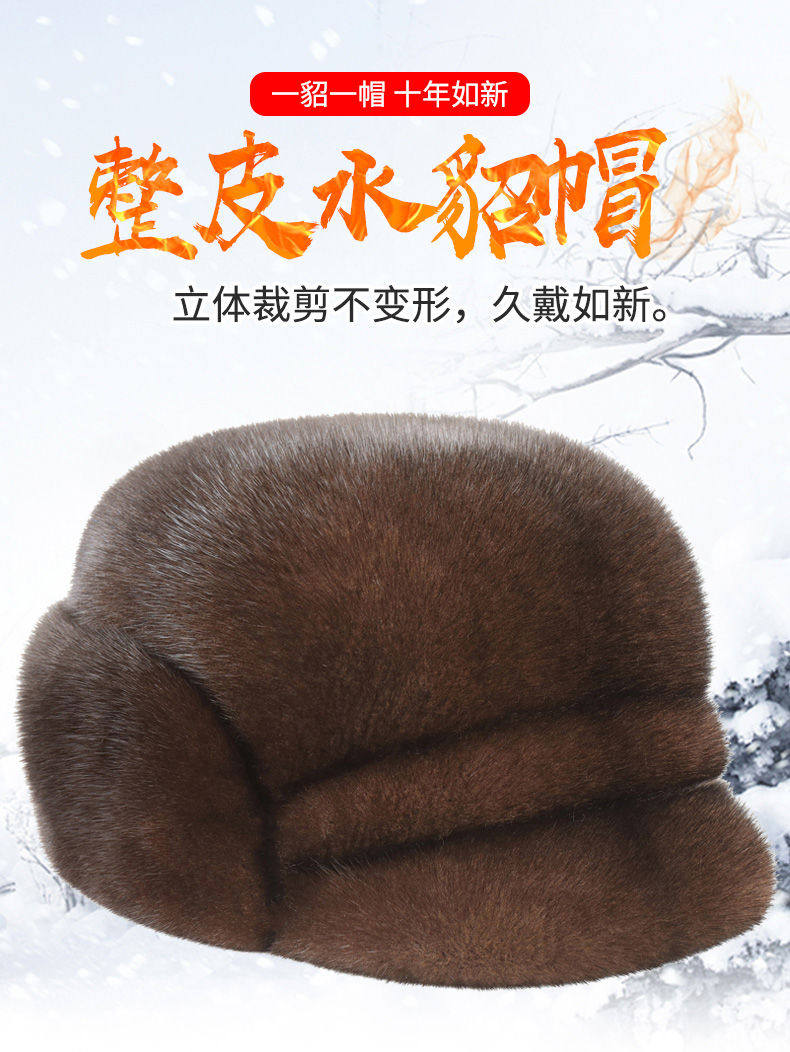 Ear-Protecting Whole Mink Fur Hat for Men, Middle-Aged and Elderly, Autumn and Winter Mink Velvet Old Man Hat, Mink Fur Genuine Fur Thickened Cotton Hat