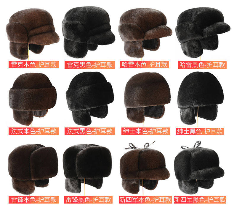 Color Classification Leke Black (Mink Ear Protection) Removable,Leke Color (Mink Ear Protection) Detachable,Presidential Black (Mink Ear Flaps) Detachable,Presidential Edition (Mink Fur Ear Muffs) - Detachable,Landlord Black (Mink Fur Ear Muffs) Detachable,Landlord's True Colors (Mink Fur Ear Muffs) - Detachable,New Fourth Army Black (Mink Fur Ear Flaps) Detachable,The True Color of the New Fourth Army (Mink Ear Protection) Is Detachable,Lei Feng Black (Mink Fur Ear Flaps) - Detachable,Lei Feng's True Colors (Mink Fur Ear Muffs) - Detachable,Harley Black (Mink Fur Earflaps) - Detachable,Harley Davidson Genuine Mink Fur Earflaps - Detachable