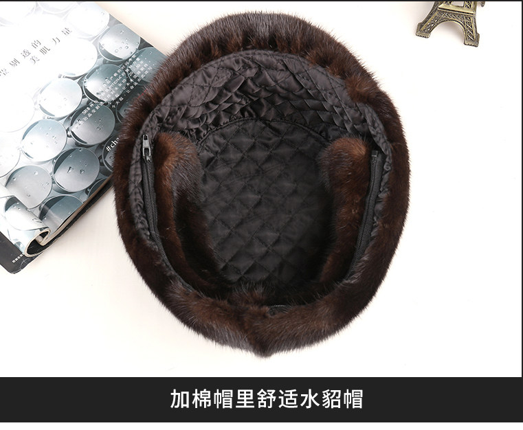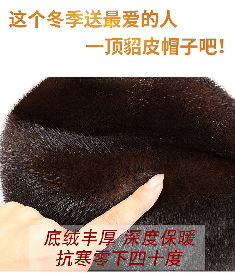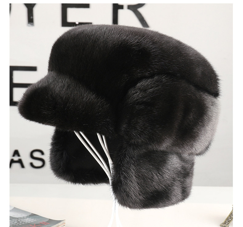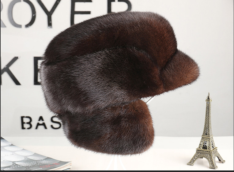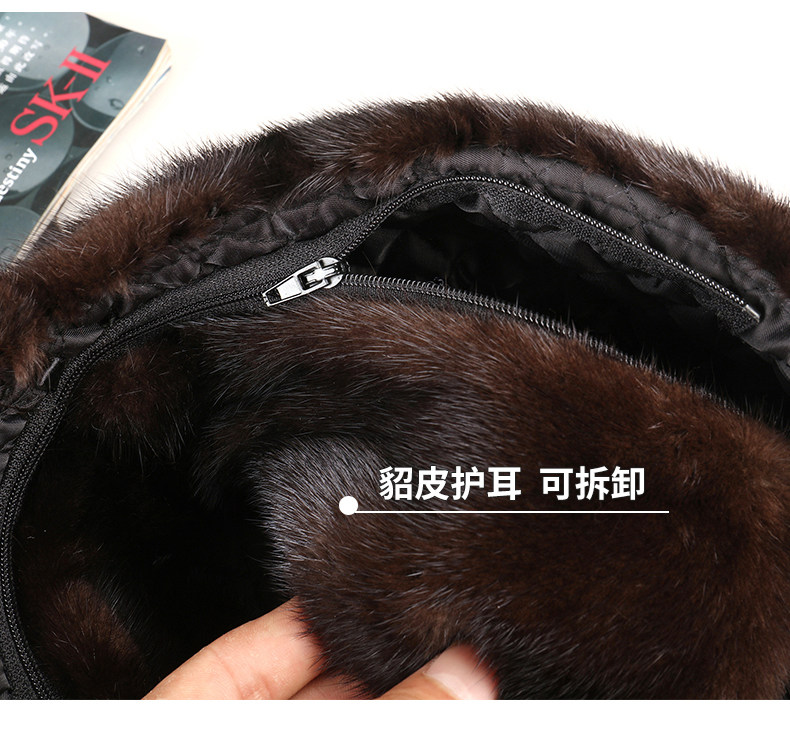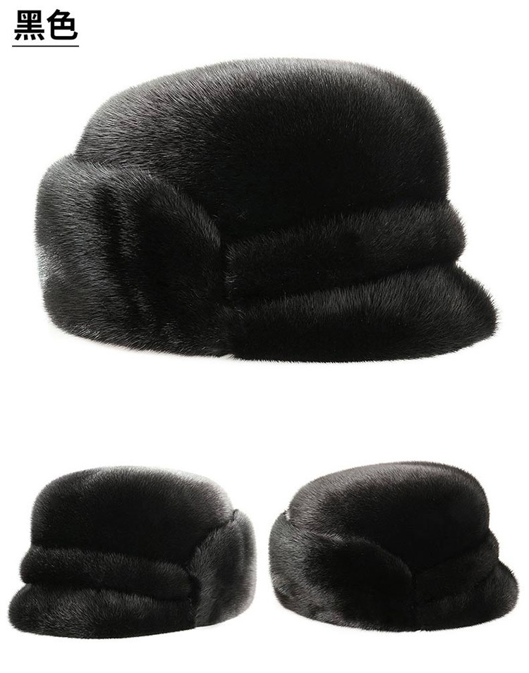 Mink Fur Hat for Men, Middle-Aged and Elderly, Winter Warm Ear Protection, Mink Velvet, Winter Whole Mink Fur, Dad's Cotton Hat