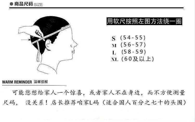 Size S(54-56cm),L(58-60cm),M(56-58cm),XL (over 60cm)