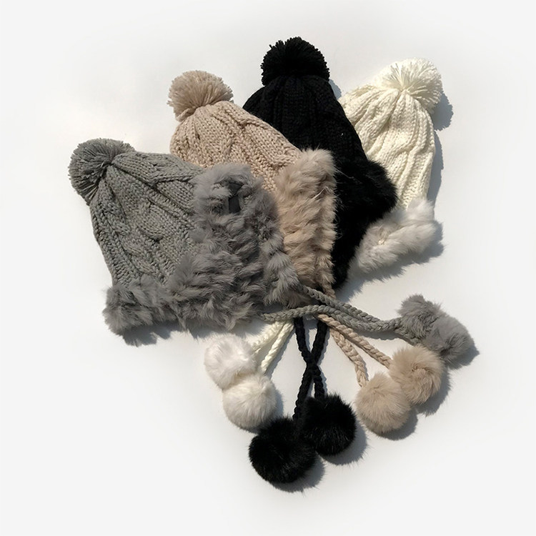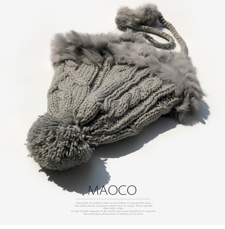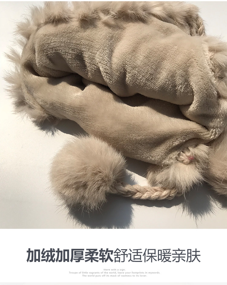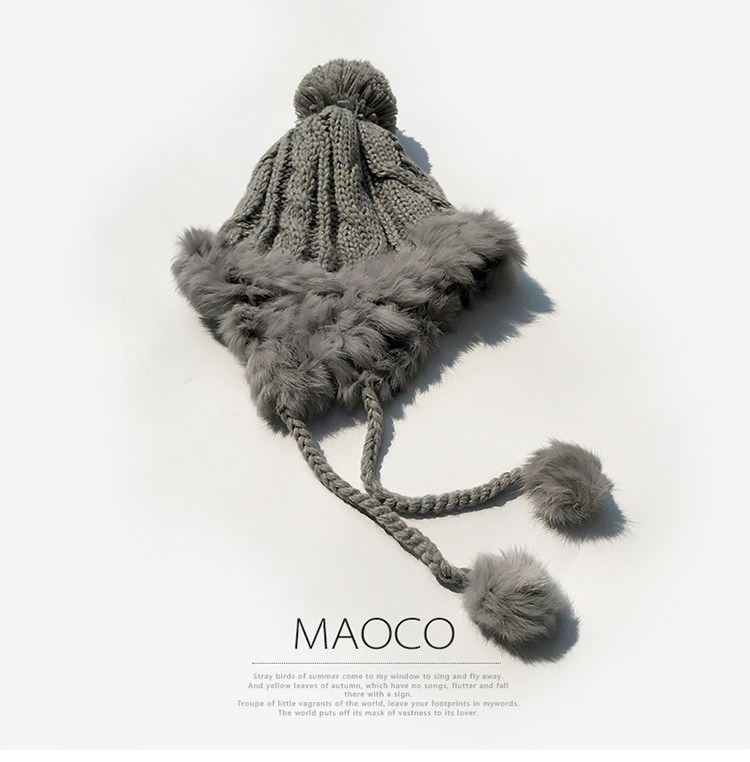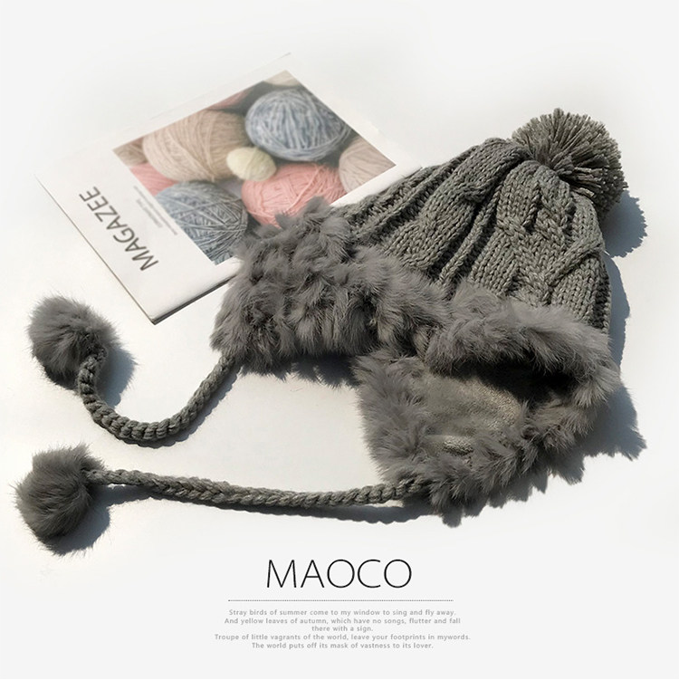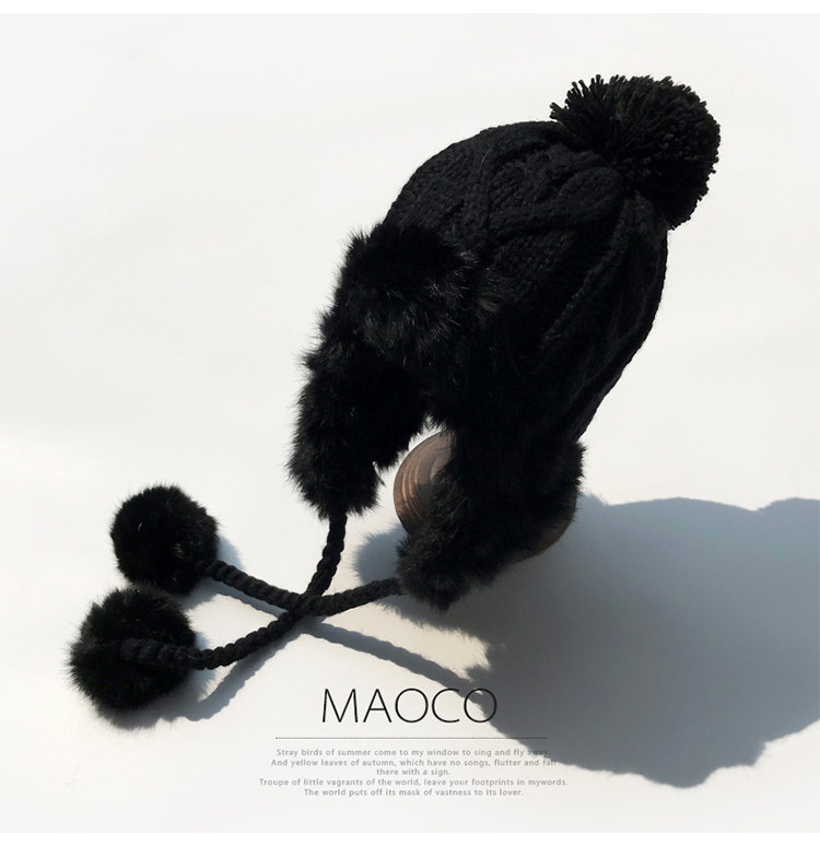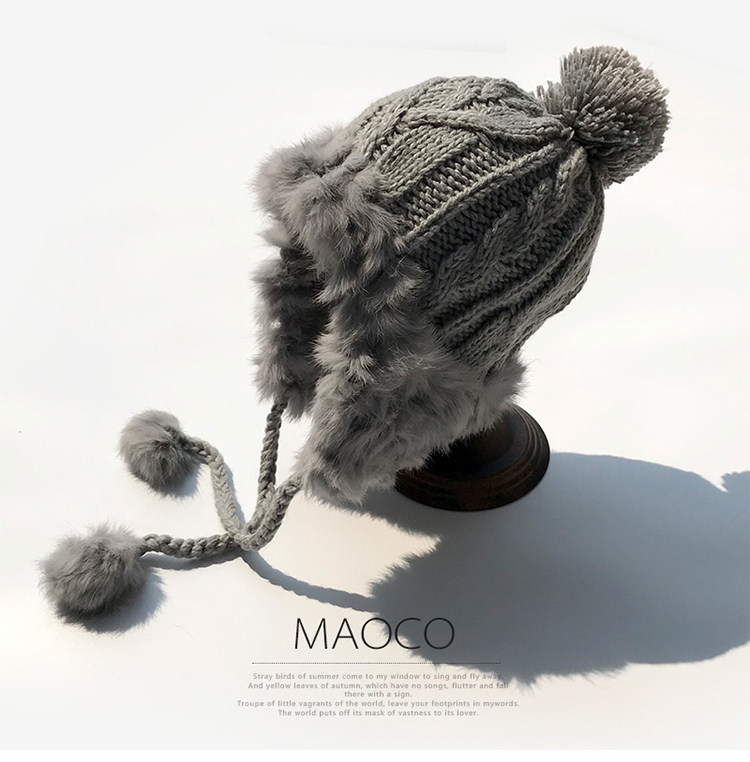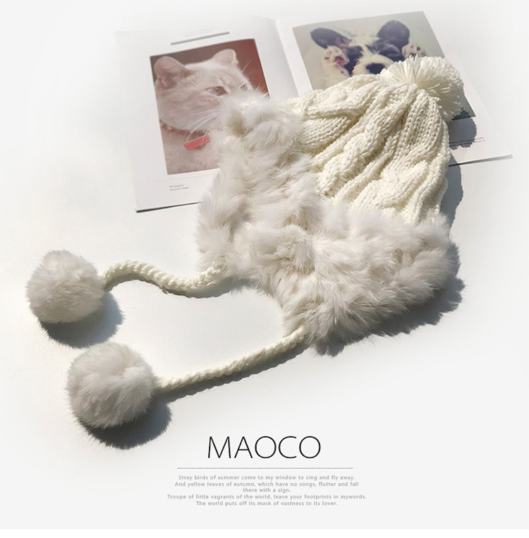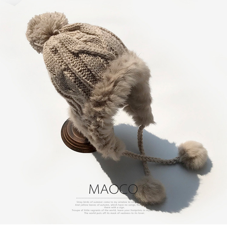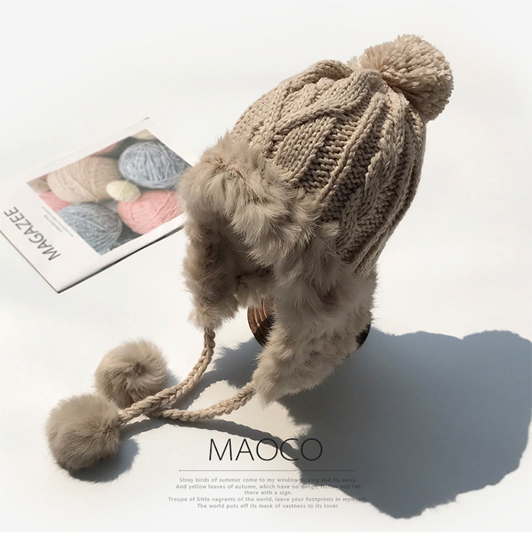 Winter Hat for Women, Warm Knitted Wool Hat, Ear-Protecting Thick Rabbit Fur Windproof Snow Hat, Sweet Forest Style Hat
