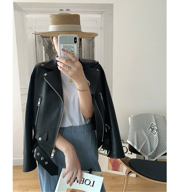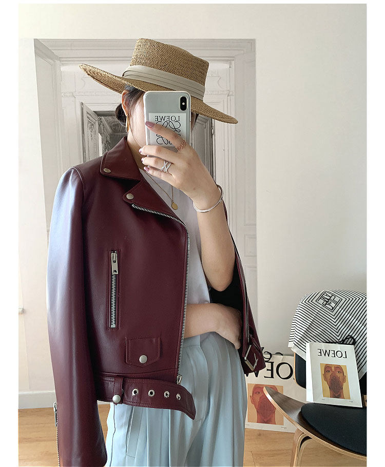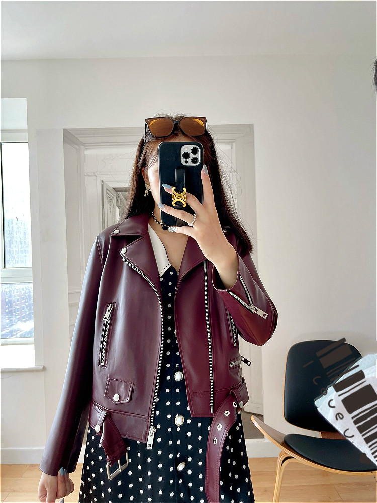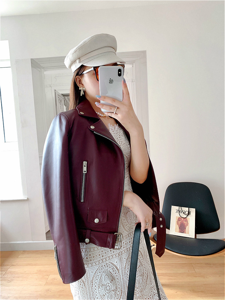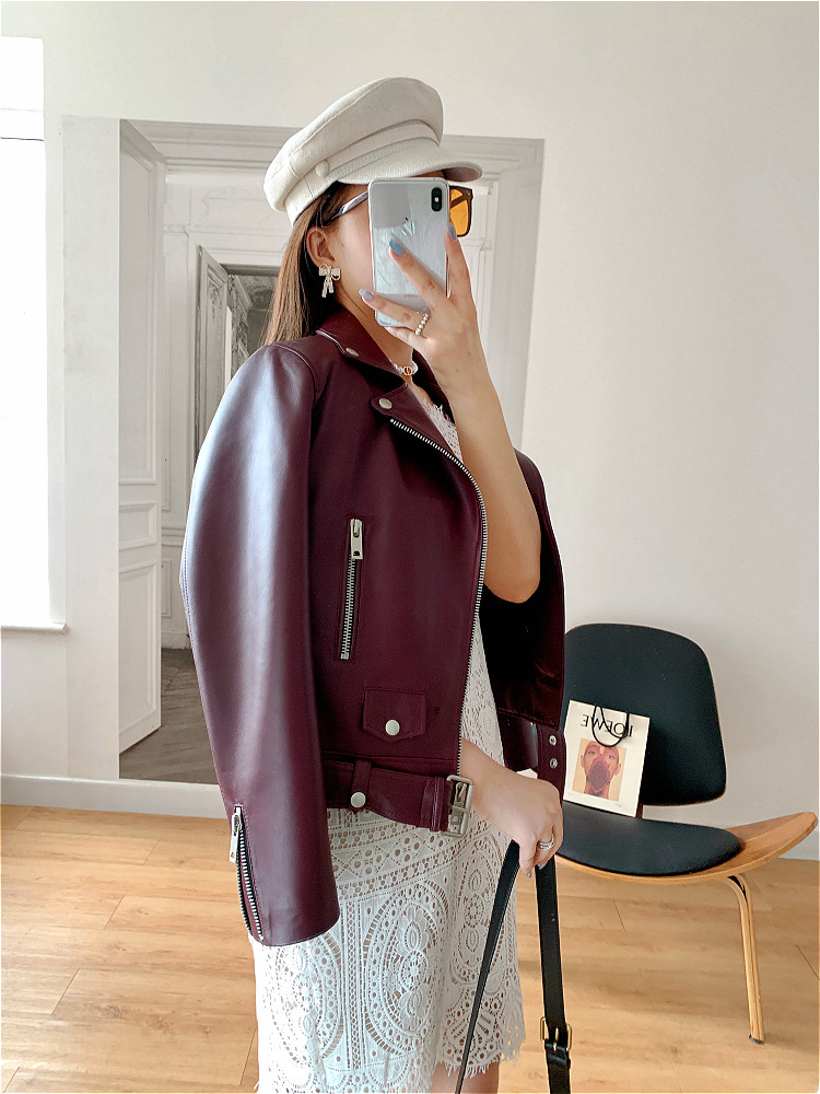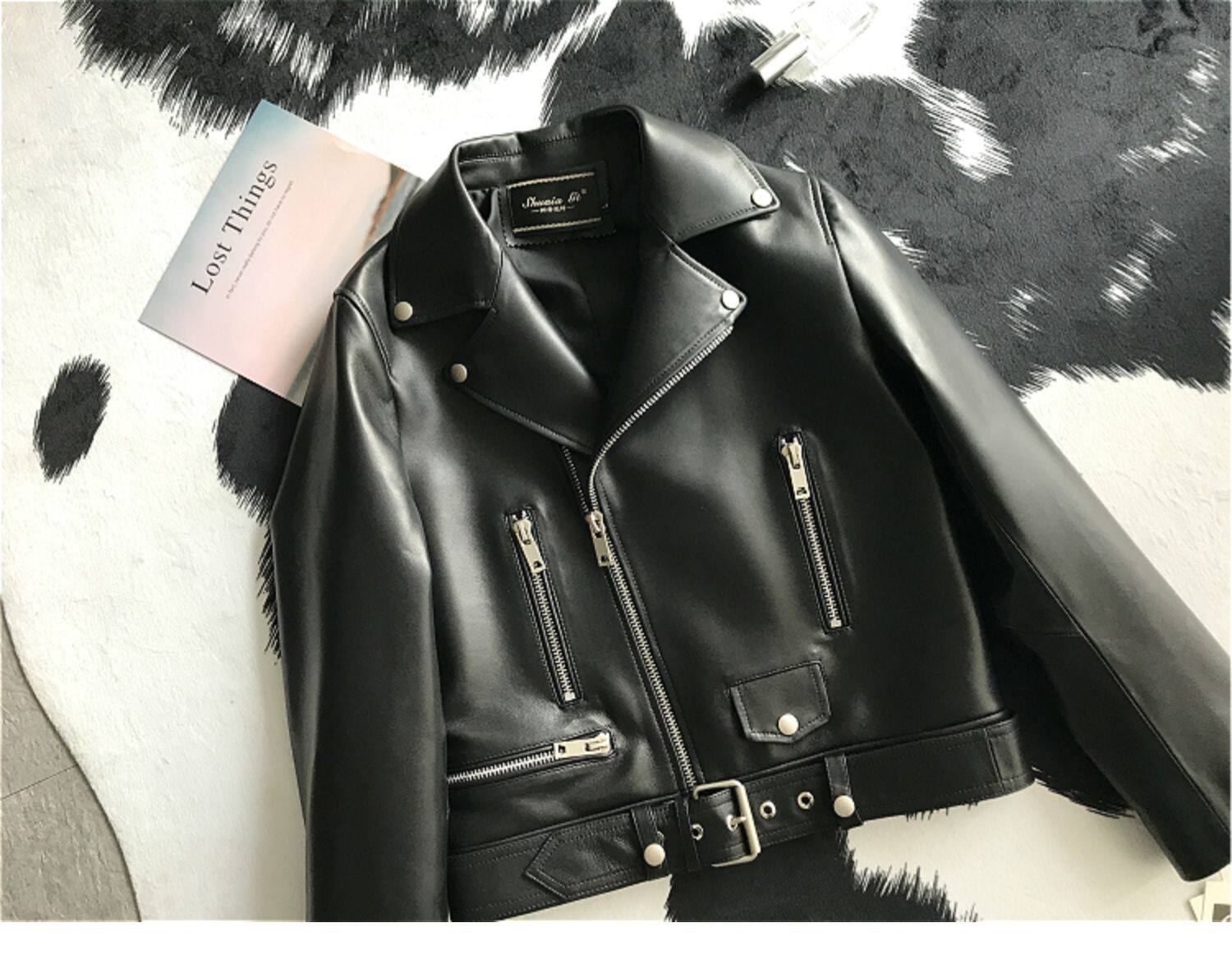 2025 Spring New Imported Sheepskin Leather Jacket Women's Genuine Leather Jacket Women's Motorcycle Jacket Short Jacket Looks Slim