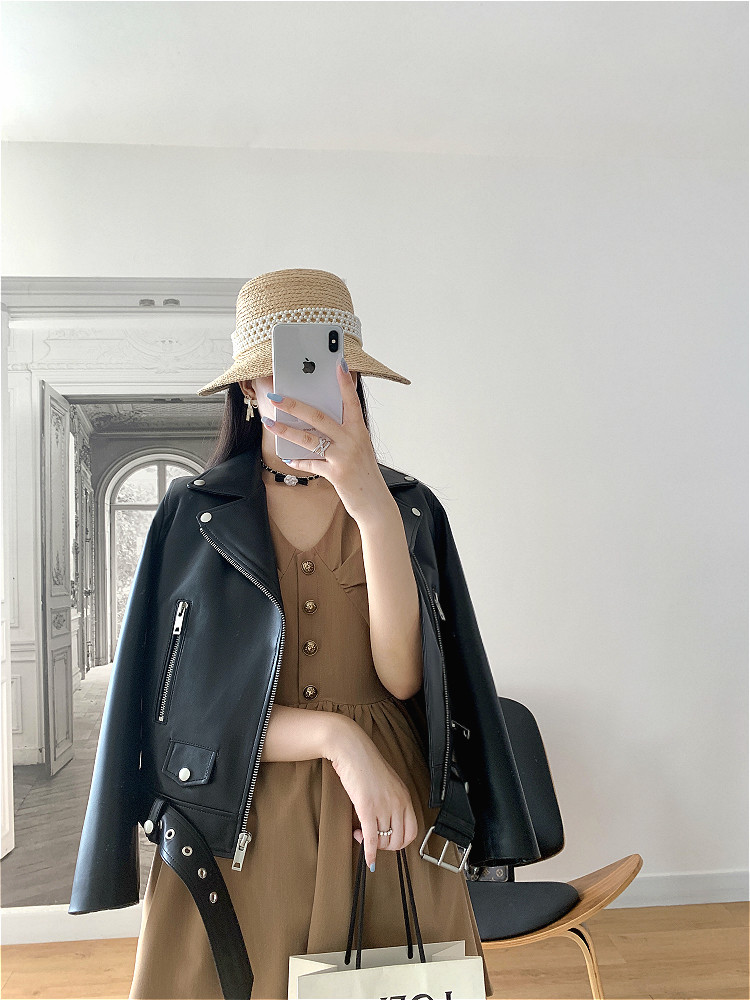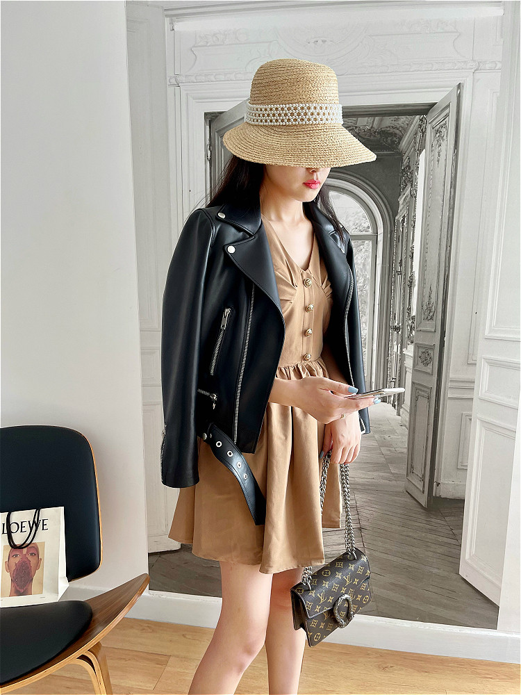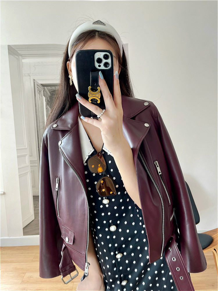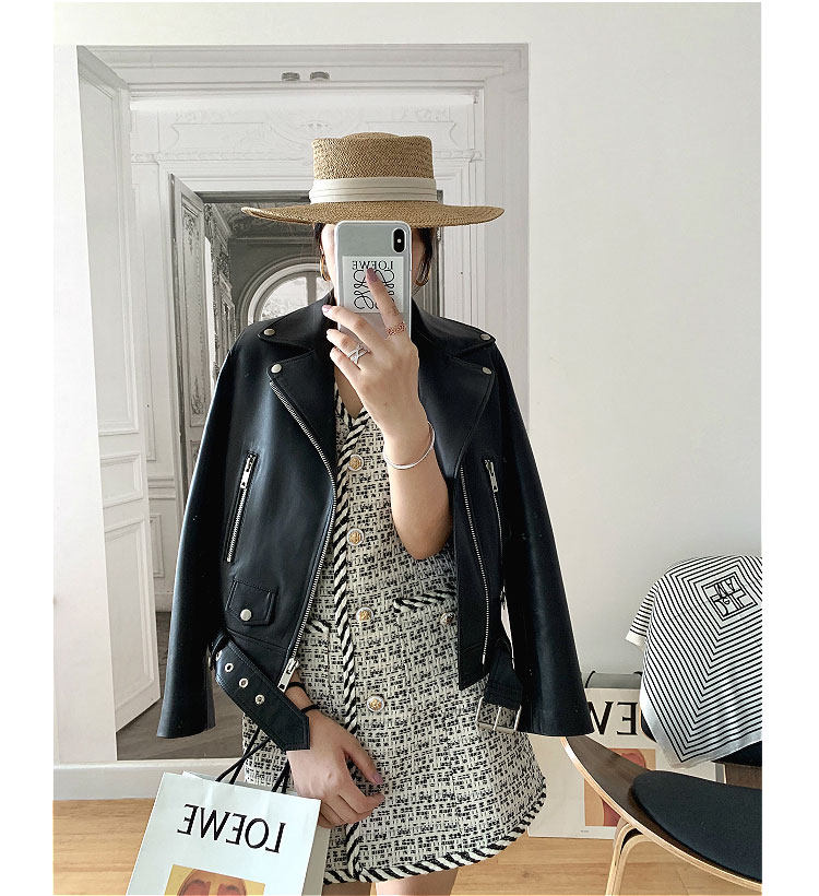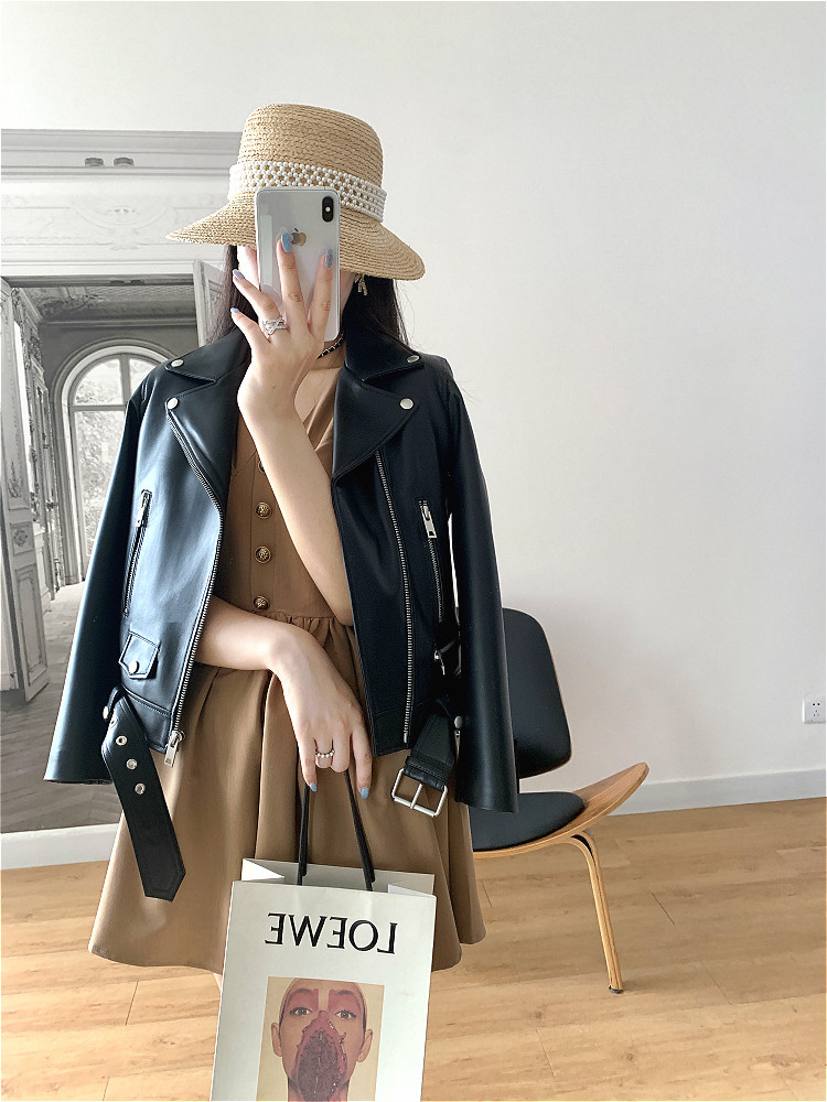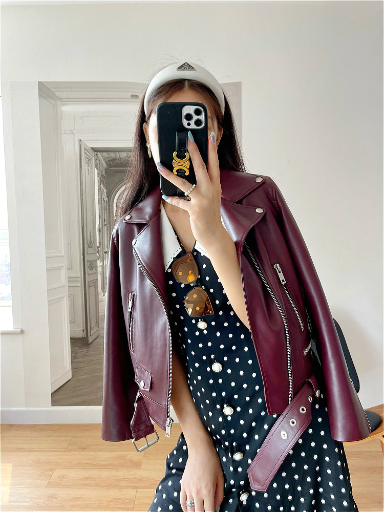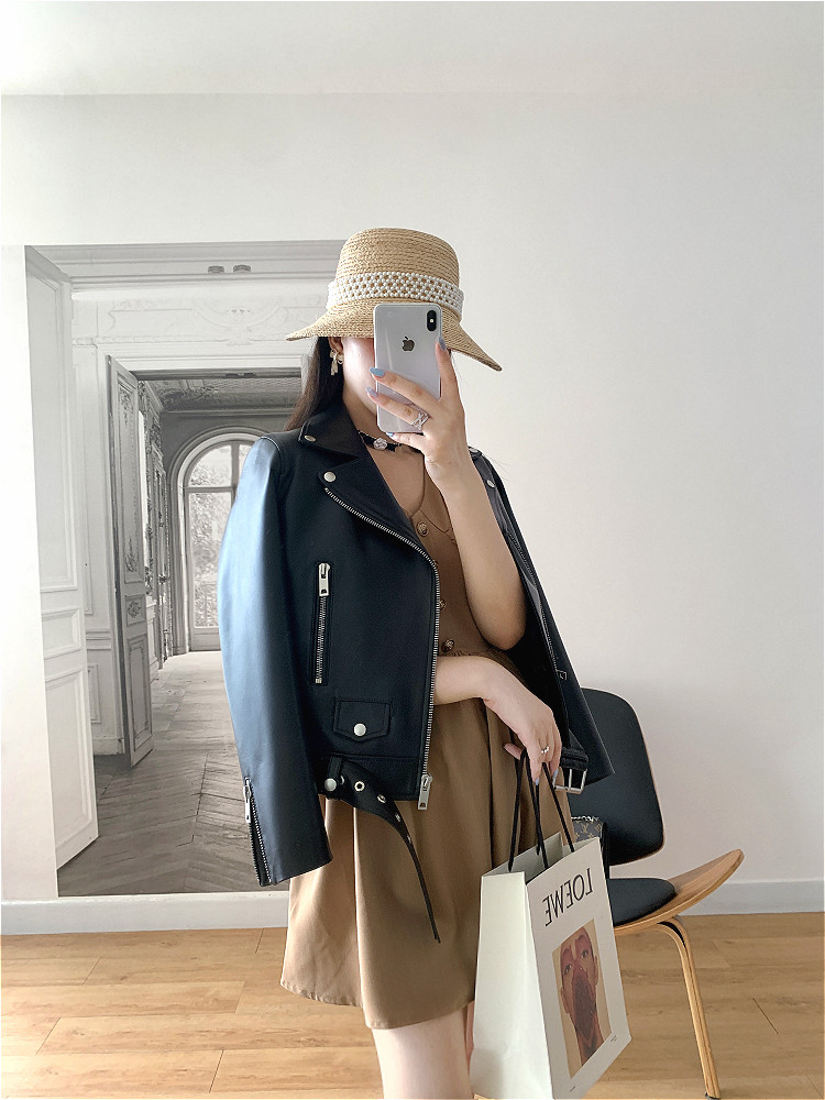 2025 Spring New Imported Sheepskin Leather Jacket Women's Genuine Leather Jacket Women's Motorcycle Jacket Short Jacket Looks Slim