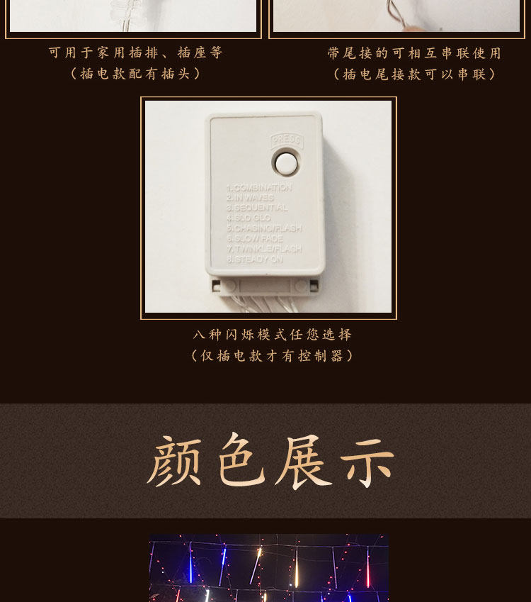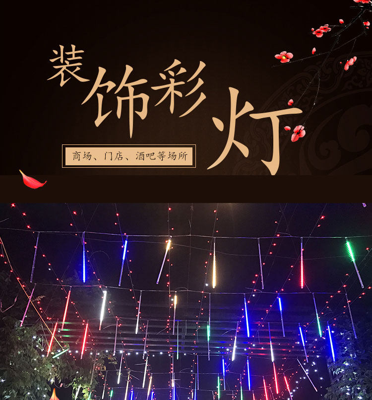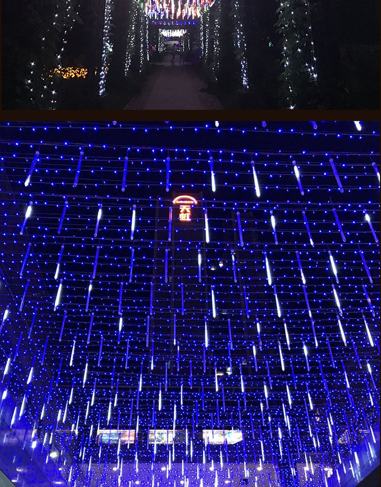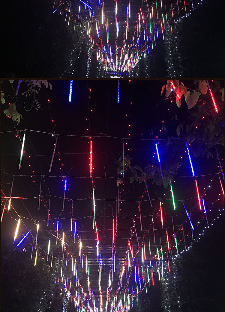 LED meteor shower lights, colorful lights, flashing lights, New Year's Eve Lantern Festival decorative lights, fake double-sided waterproof hanging tree lights, meteor tubes