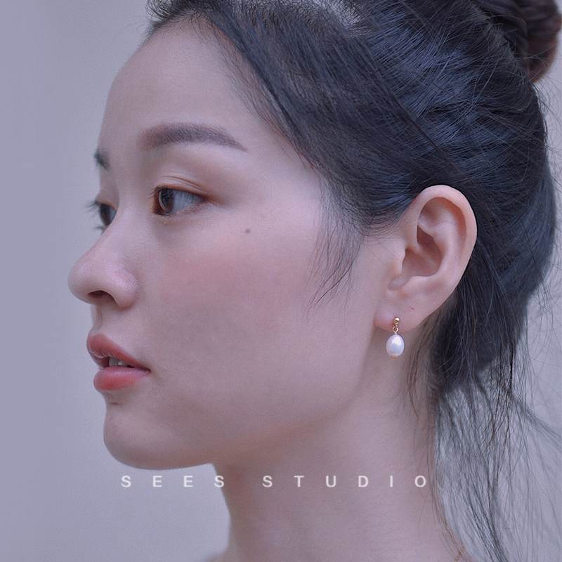 Can Come into Contact with Water! American 14K Gold-Filled Baroque Natural Freshwater Pearl French Style Earrings Autumn and Winter Retro Earrings