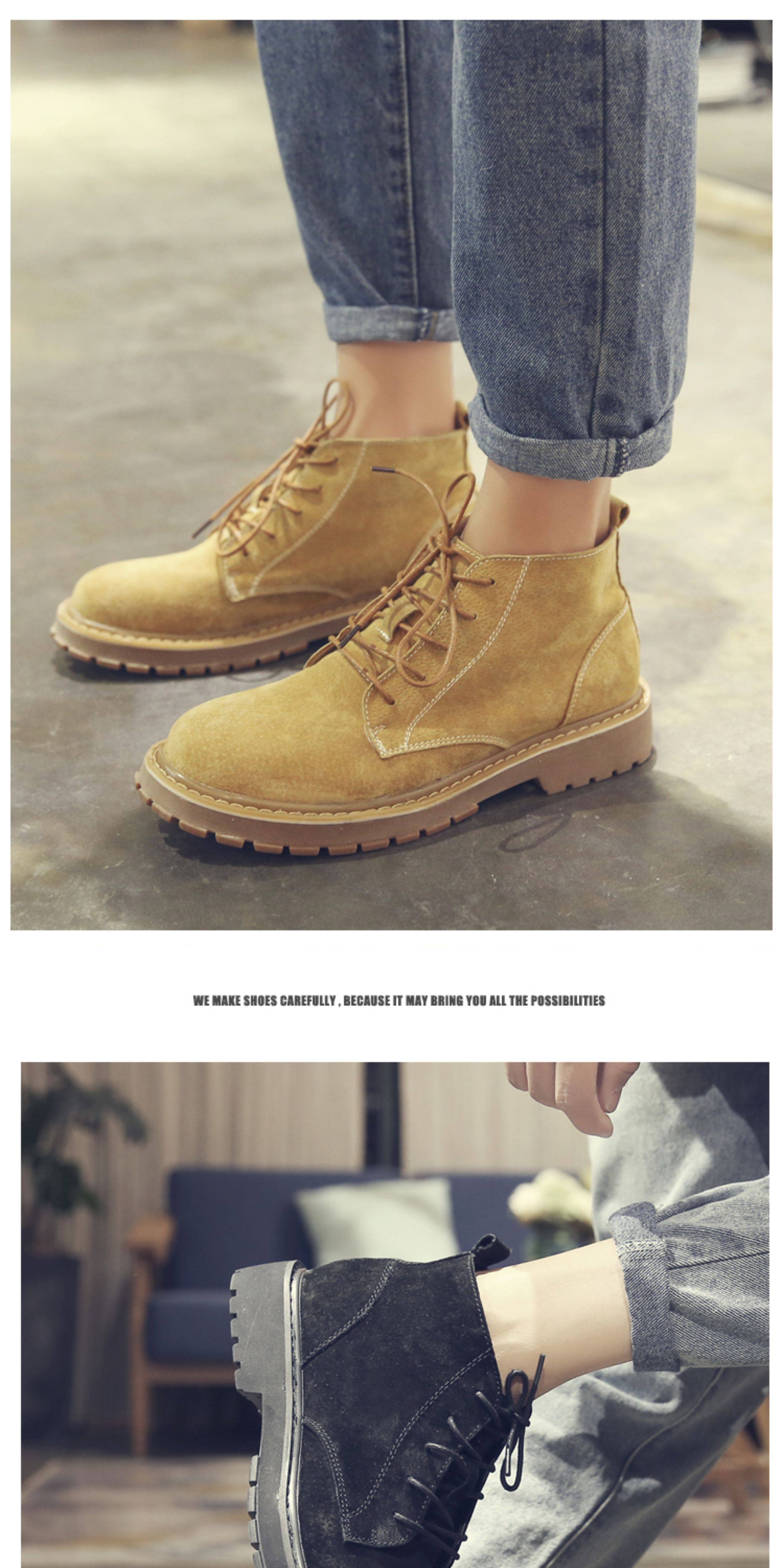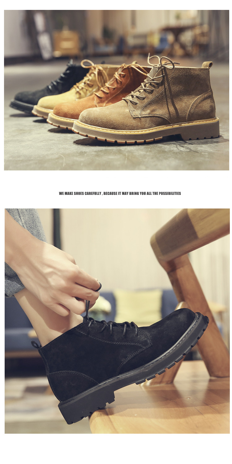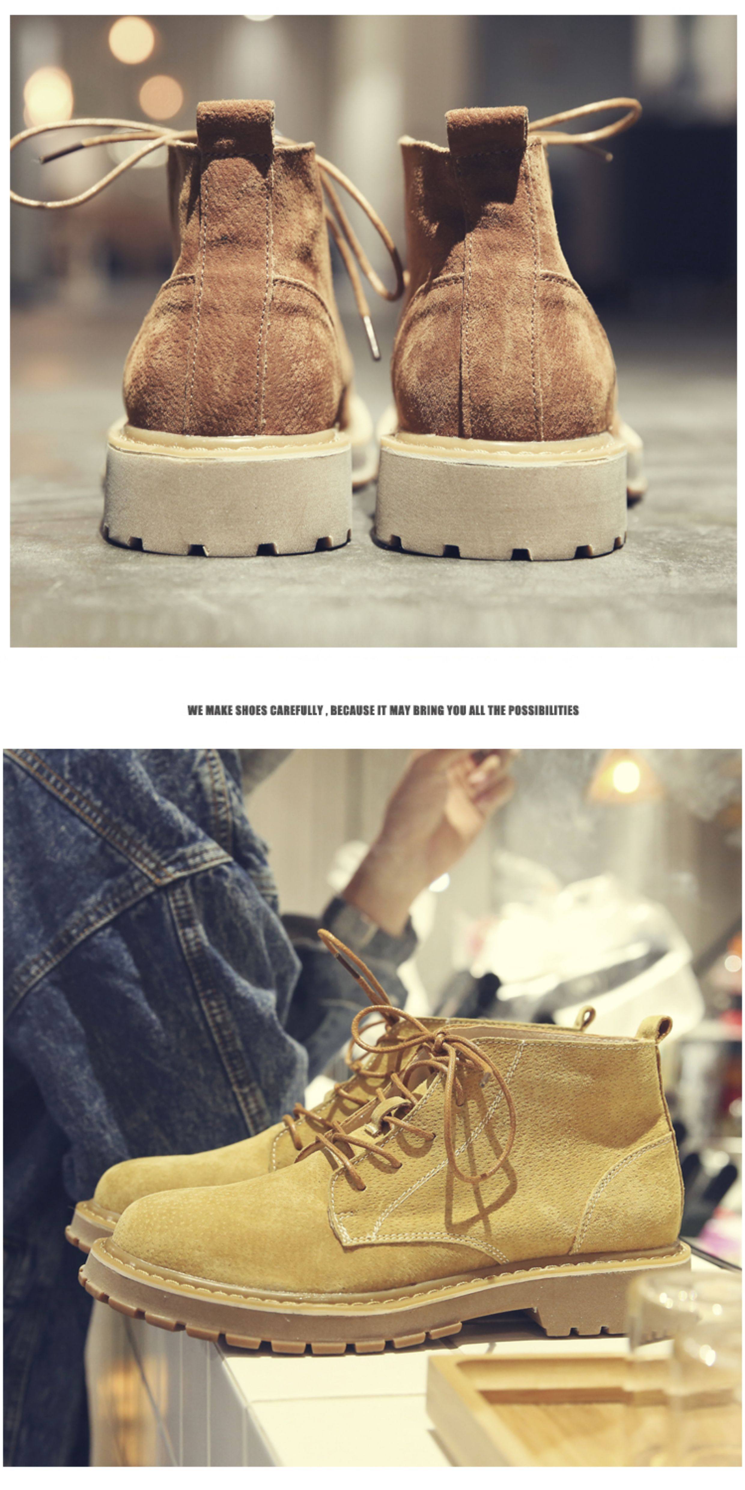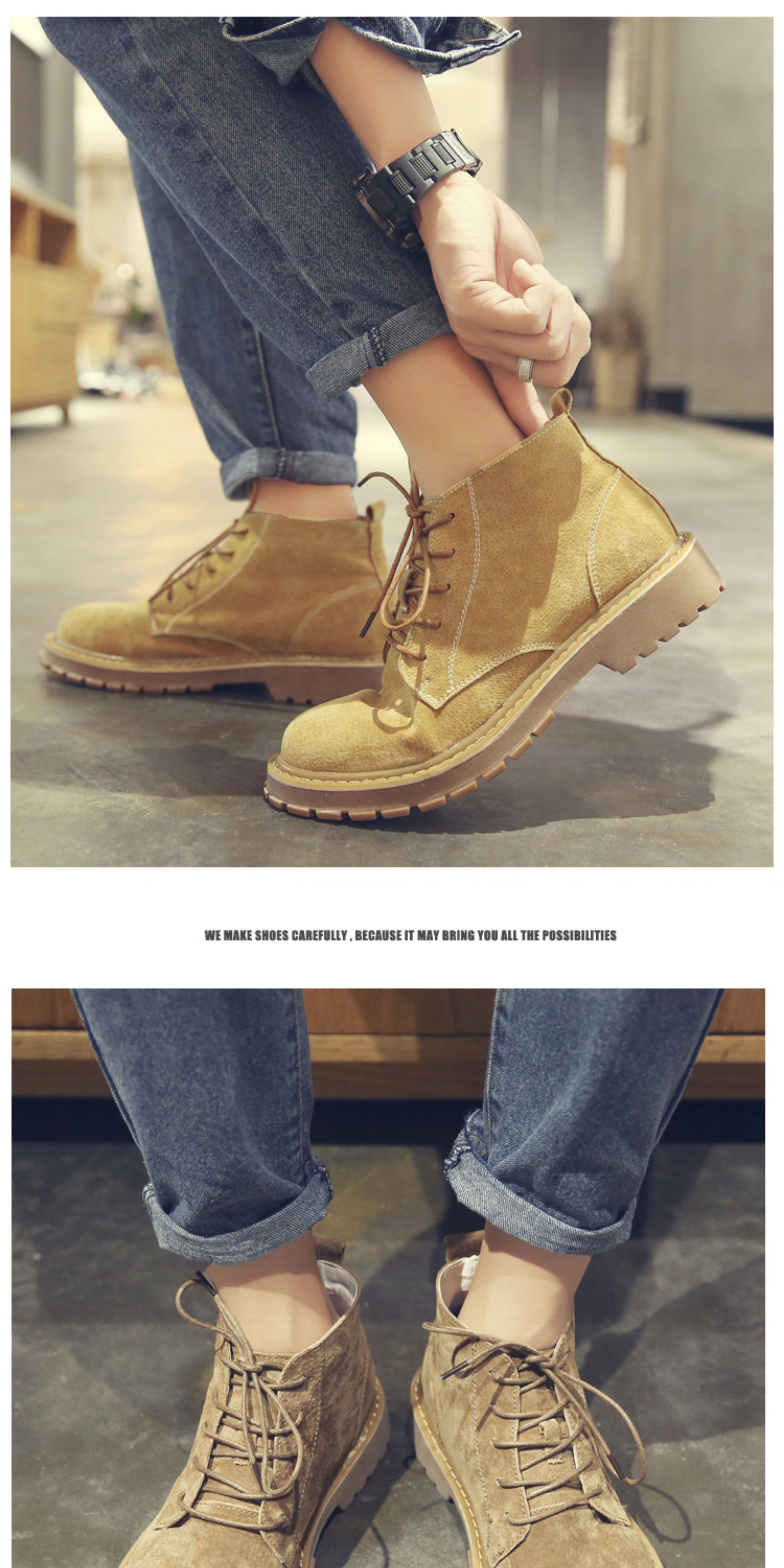 Winter Martin Boots for Men, Mid-Top Trendy Short Boots, British Style, Fleece-Lined High-Top Shoes, Retro Korean Style, Genuine Leather Yellow Work Boots
