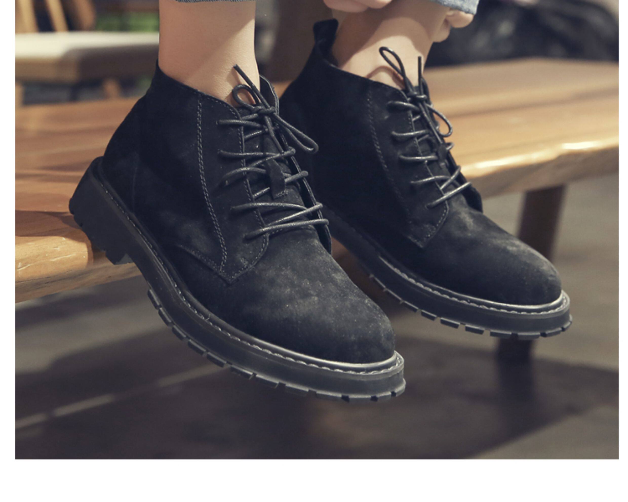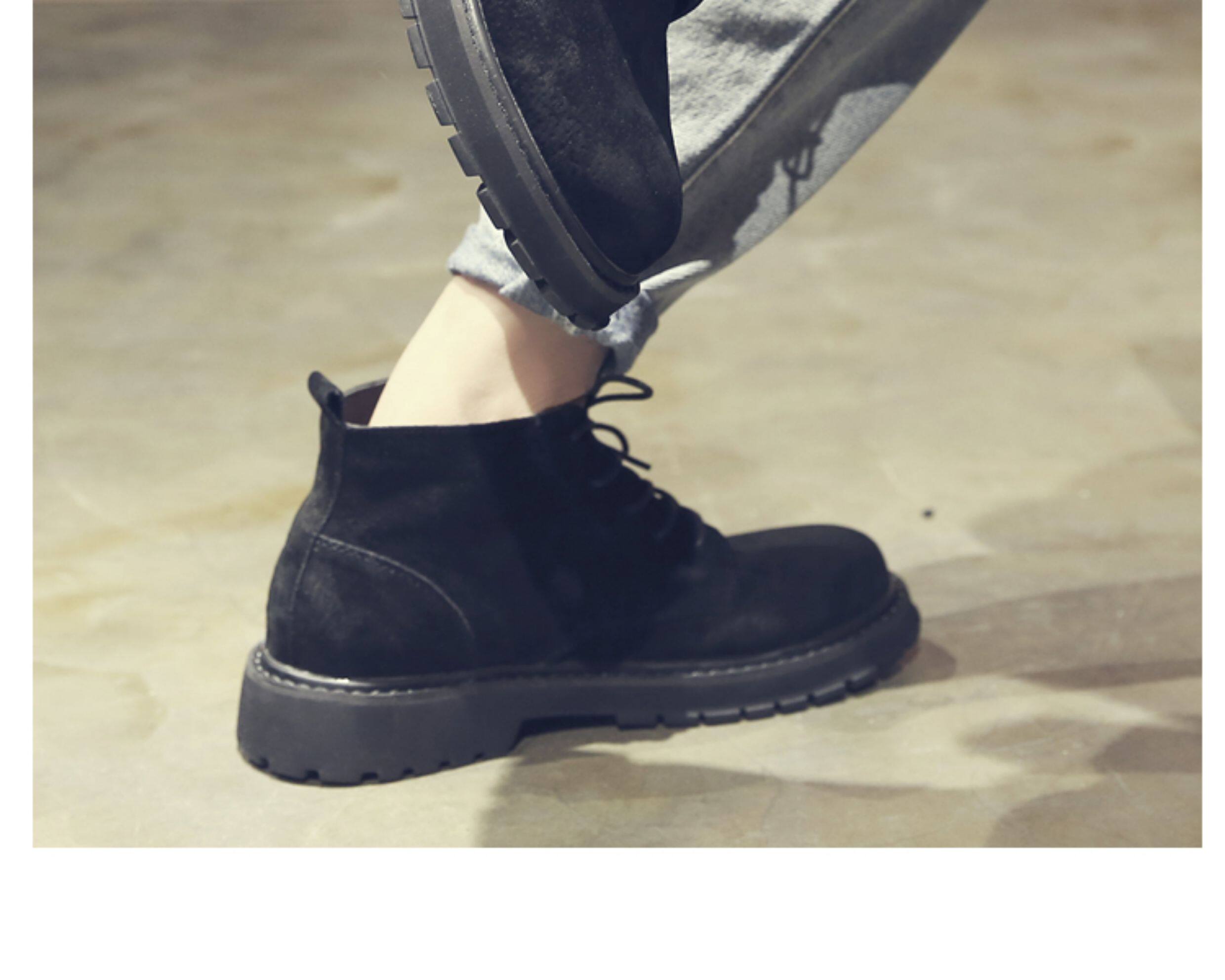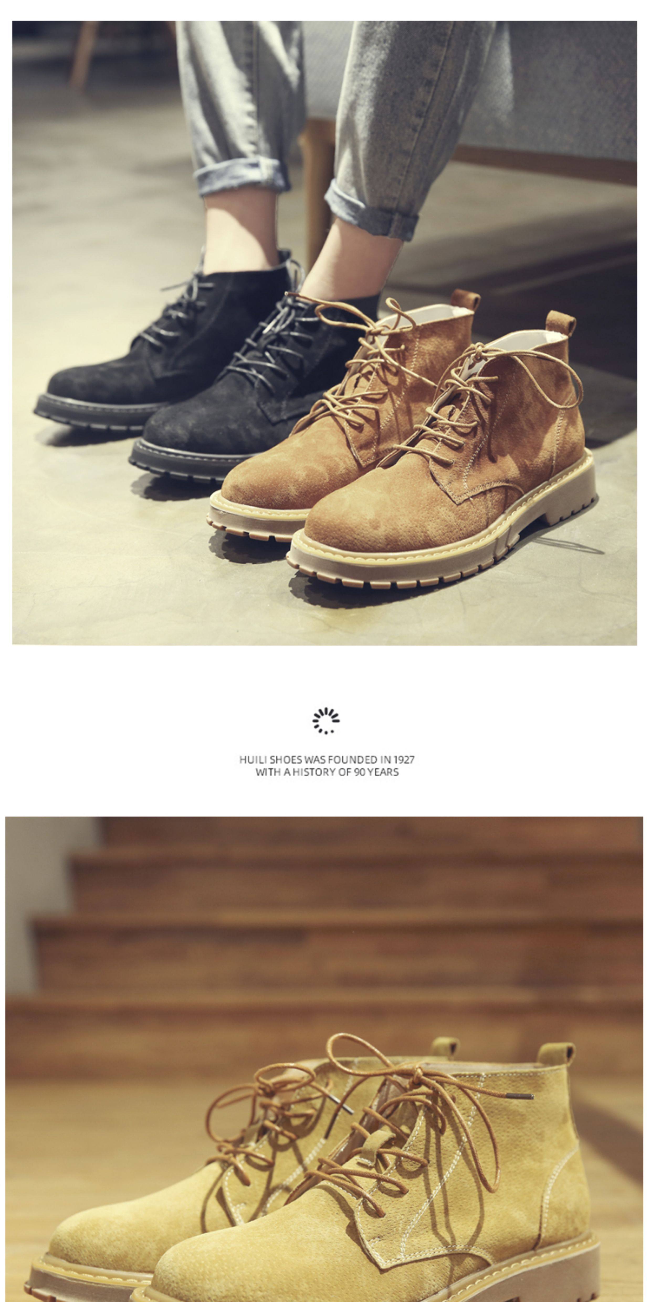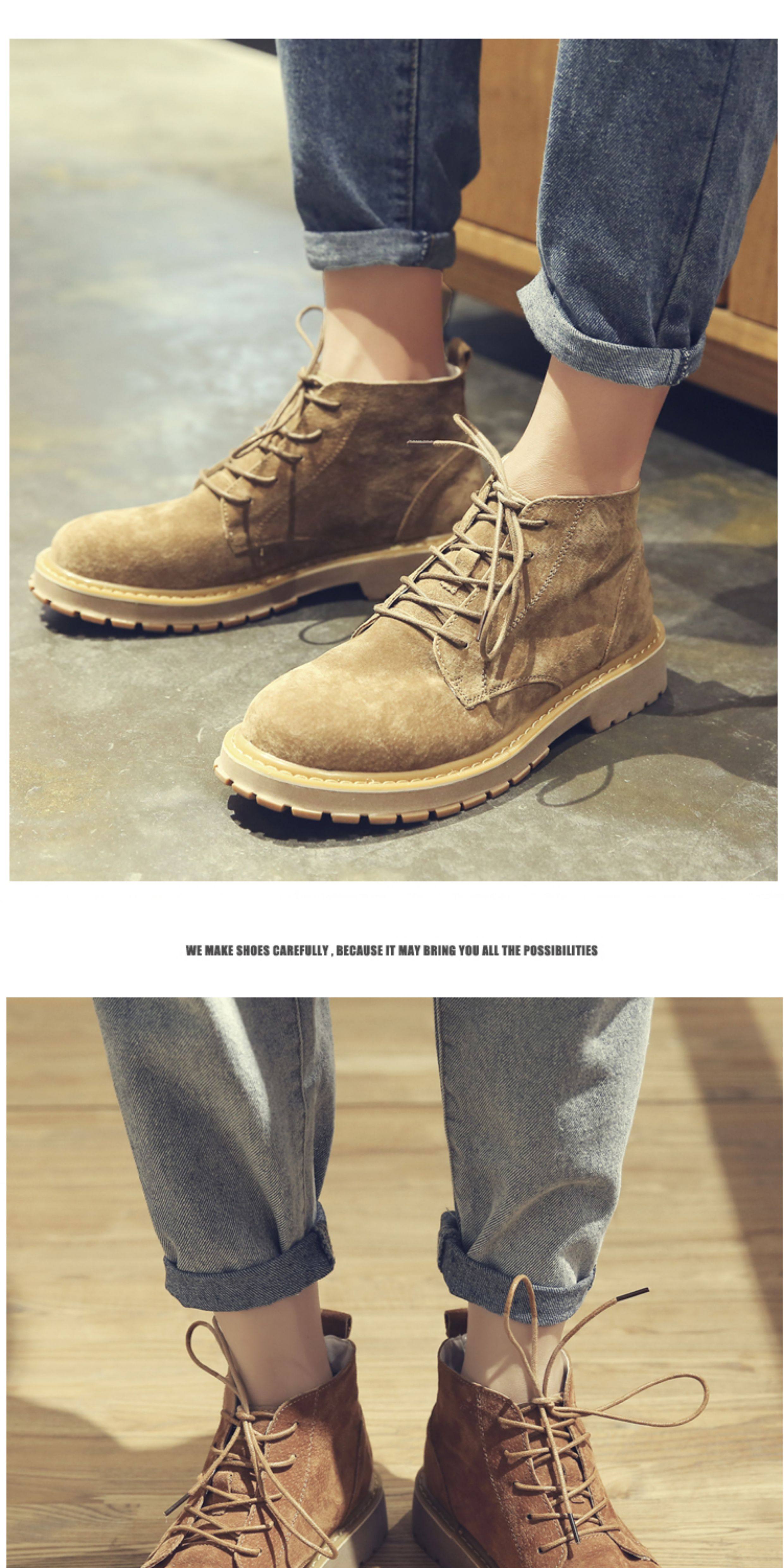 Winter Martin Boots for Men, Mid-Top Trendy Short Boots, British Style, Fleece-Lined High-Top Shoes, Retro Korean Style, Genuine Leather Yellow Work Boots