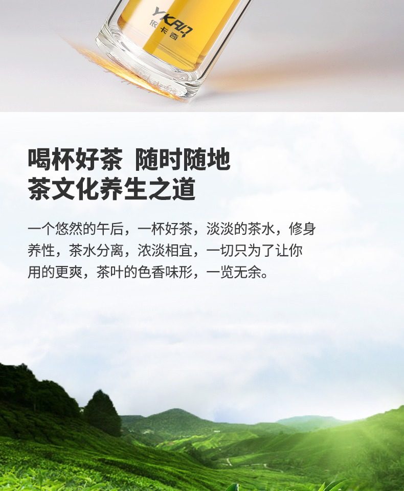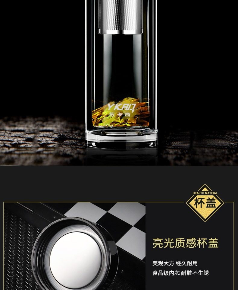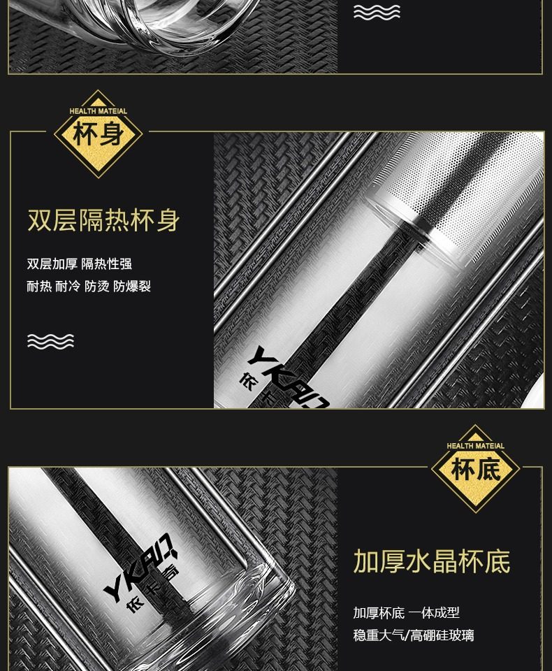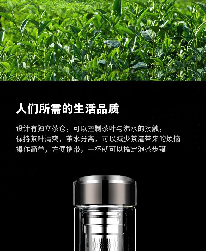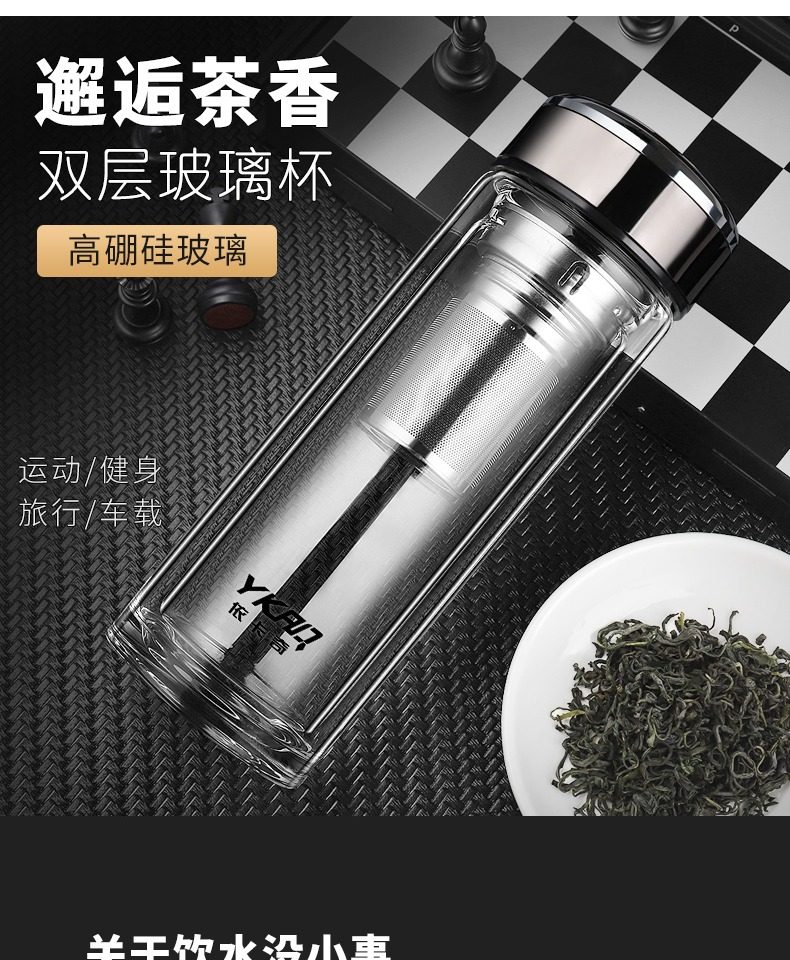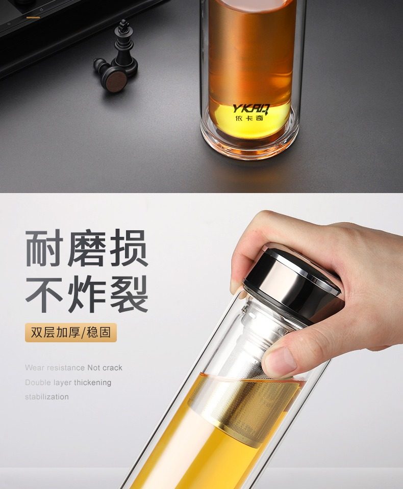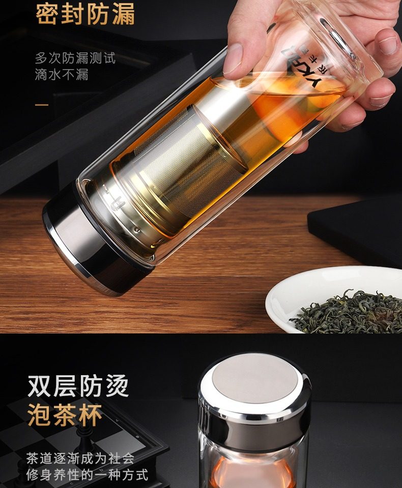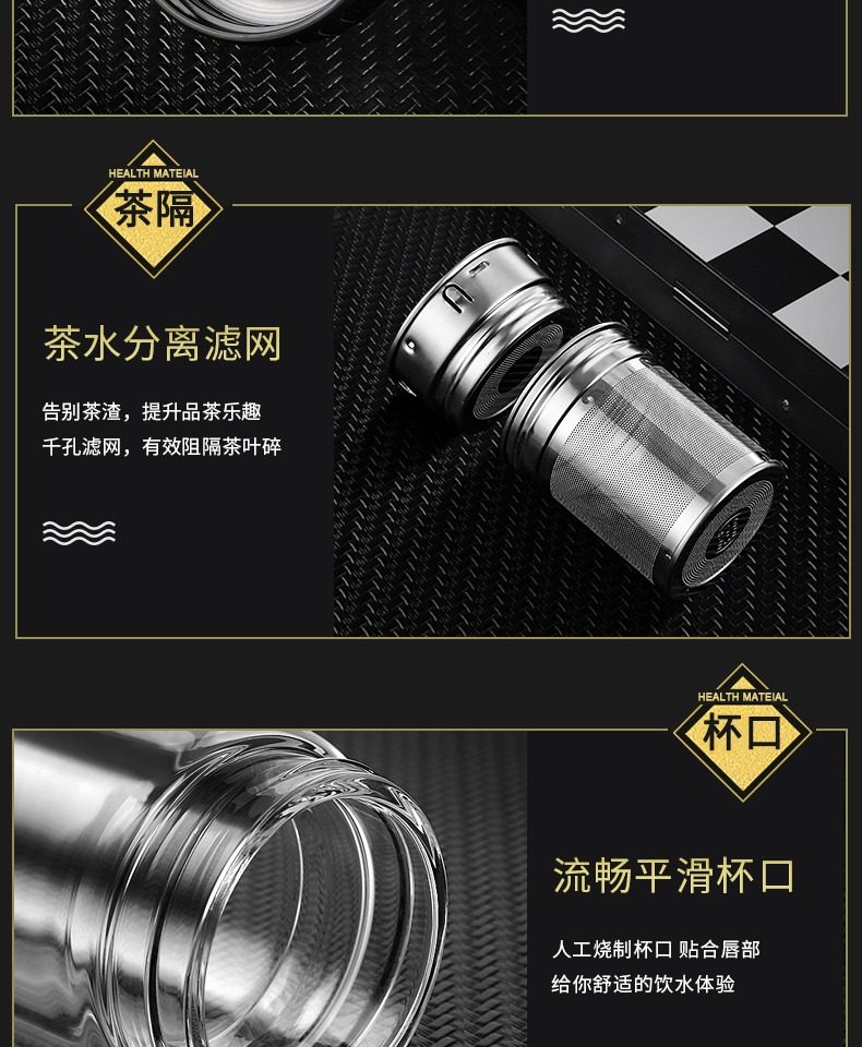Double-Layer Insulated Glass Cup for Men, Black Tea Office Cup, Driver's Car Water Cup, Portable Tea and Water Separation Tea Cup