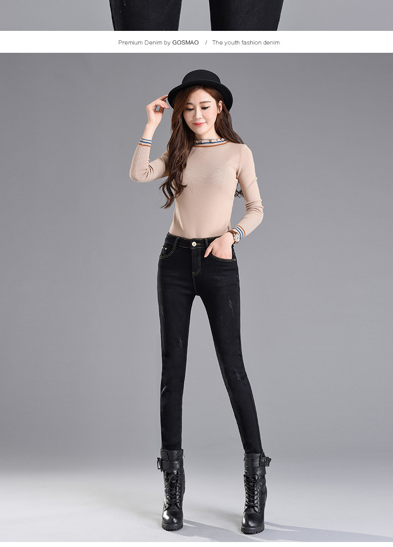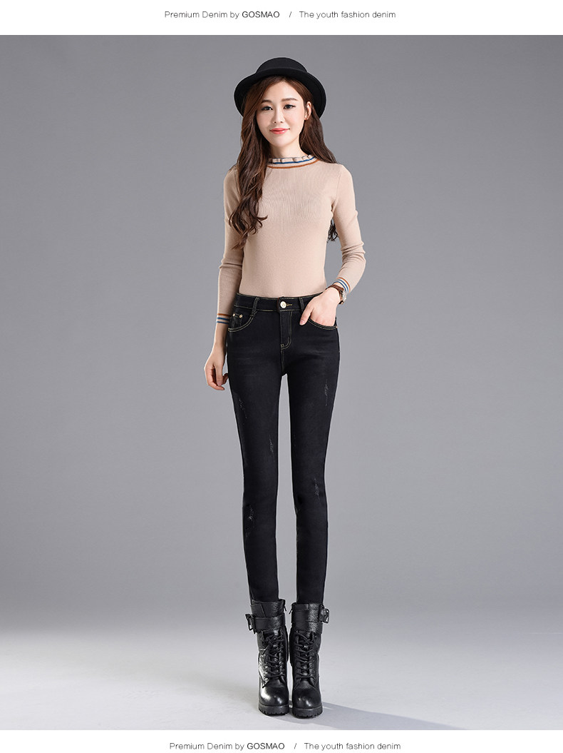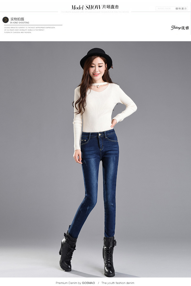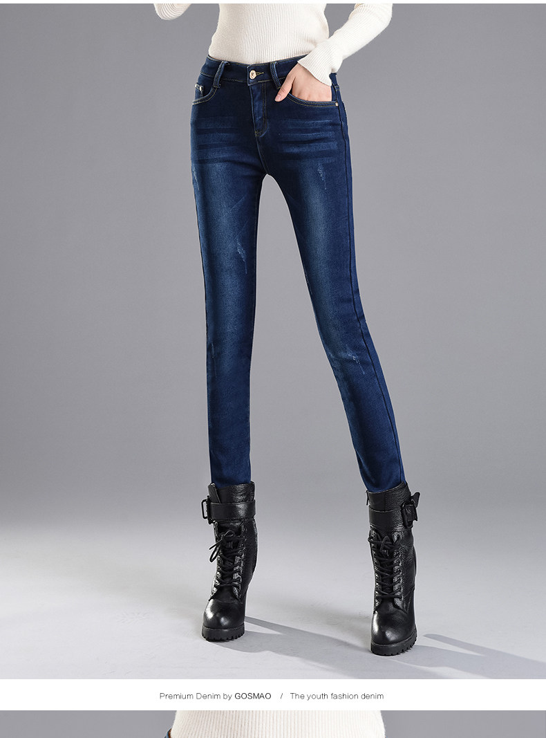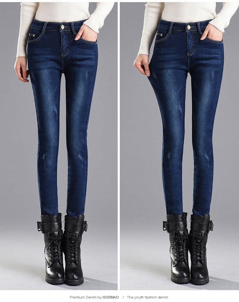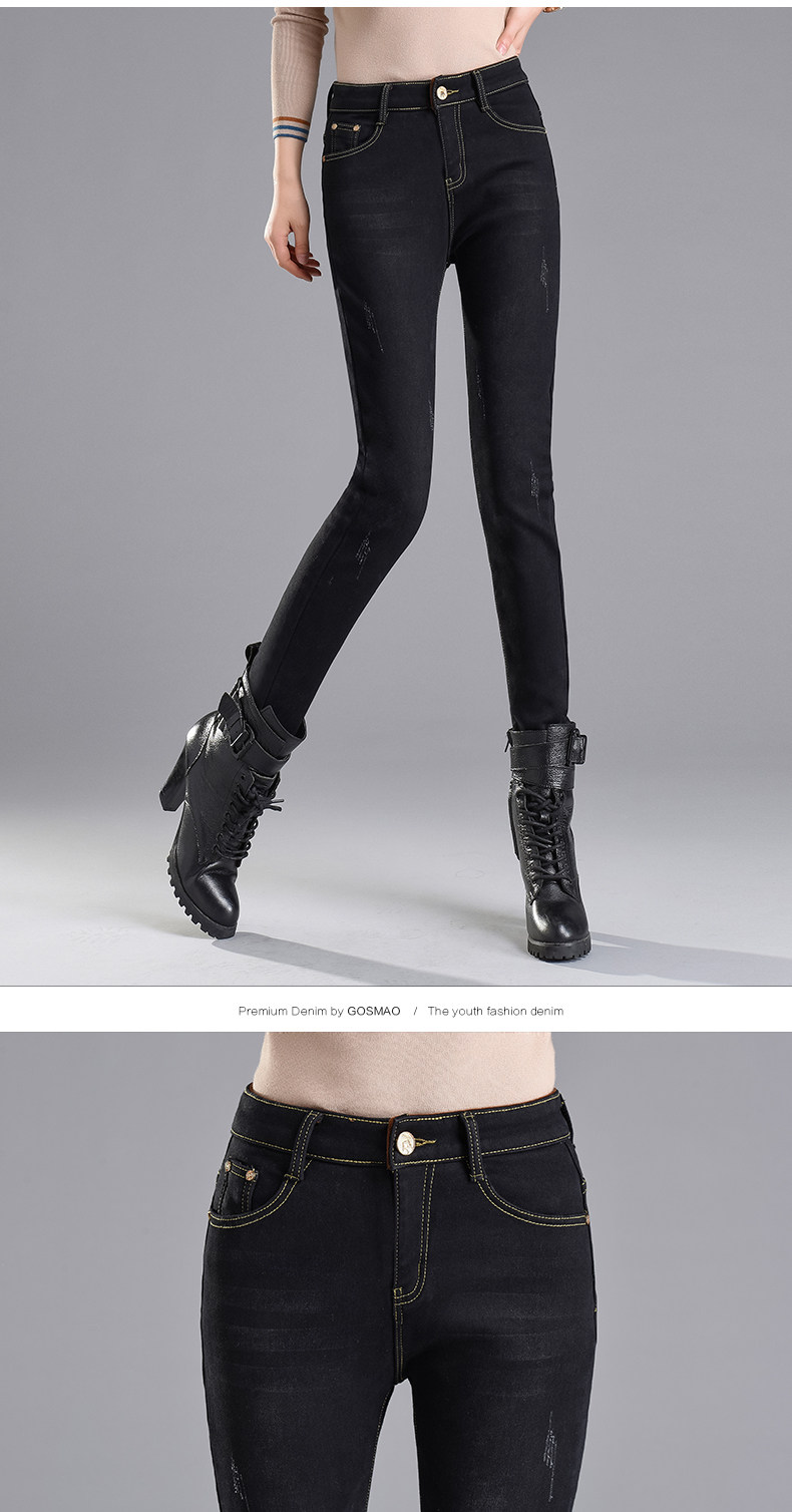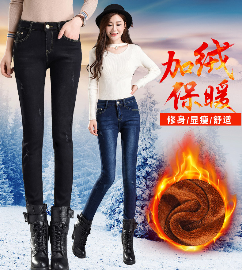 Velvet jeans women's high waist 2025 winter new Korean style slimming large size black petite trousers white boot pants