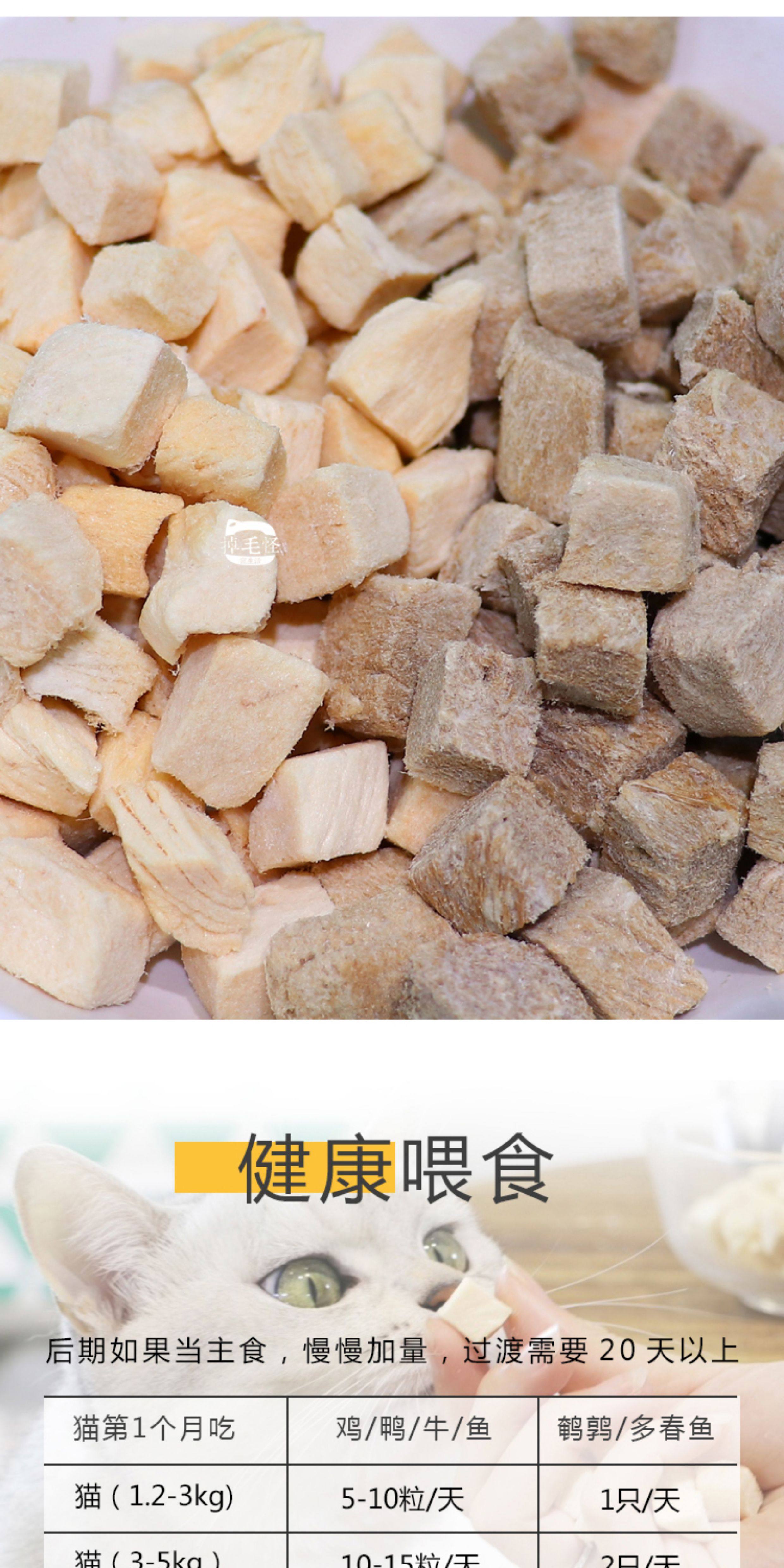 Food flavor High quality chicken cubes 300g,High quality chicken cubes 500g,Special Whole Chicken Breast 500g,Qinghuo duck meat cubes 500g,Excellent Mixed Grain Mixed Freeze-Dried Crumb 500g/bag,Mixed grain chicken minced 500g,Mixed grain duck meat 500g,Duck breast 500g,Egg yolk pellets 500g,Salmon 500g,Cod pellets 500g,Freeze-dried quail 500g,Beef cubes 500g,Spring fish 500g,Combination 250g chicken breast + 250g duck breast,Combination 200g duck meat cubes + 300g chicken cubes,A8 independent 5 packs 100g/bag - chicken + chicken breast + chicken liver + beef liver + egg yolk,A1 independent 5 packs 100g/bucket+chicken+duck+chicken breast+chicken liver+egg yolk,A2 independent 5 packs 100g/barrel + chicken + duck + quail + spring fish + cod,A3 independent 7 packs 100G/chicken+duck+chicken liver+salmon+quail+chicken breast+egg yolk,A4 independent 5 packs 100g/bucket+chicken+duck+chicken breast+beef liver+egg yolk,A6 independent 7 packs 100G/barrel + chicken + duck + beef + quail + salmon + cod + spring fish,High quality chicken cubes 500g