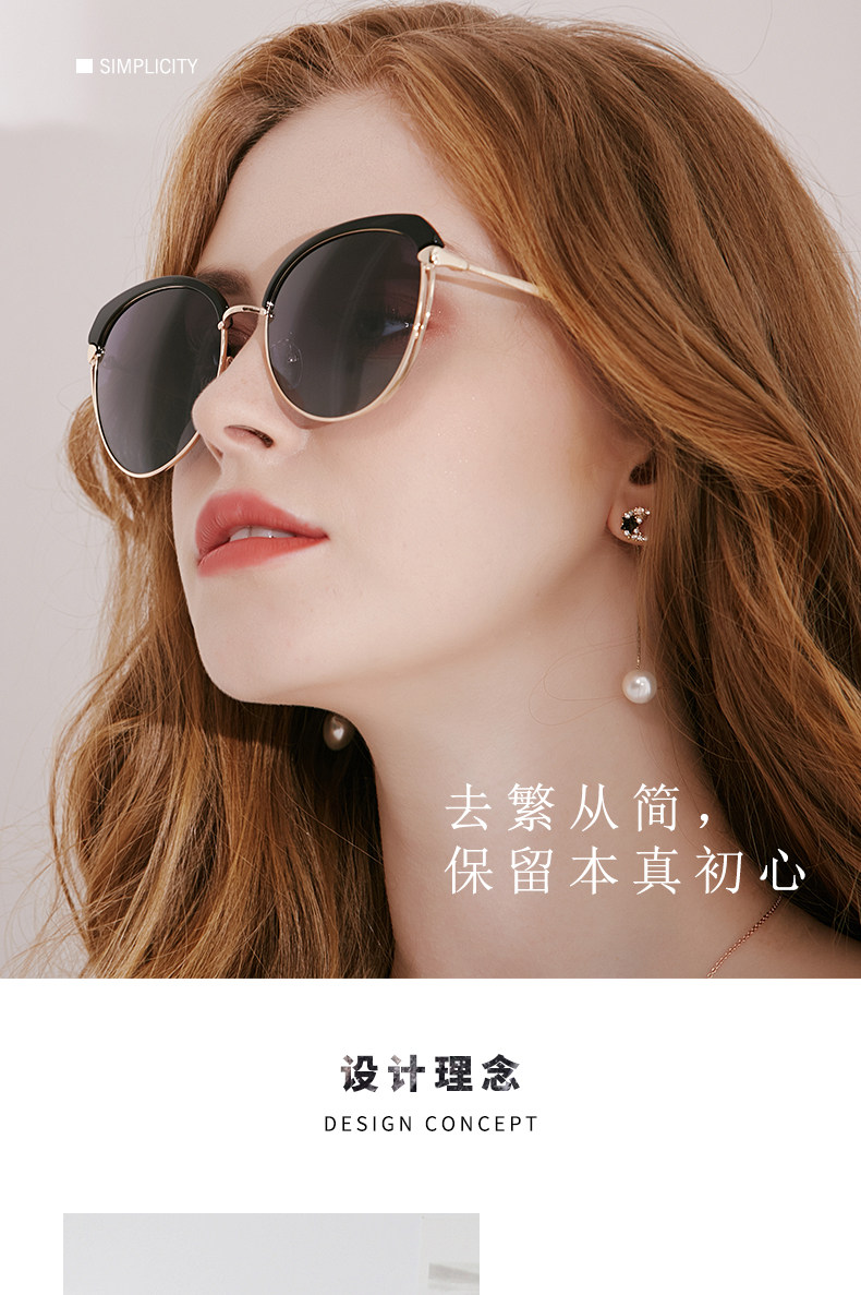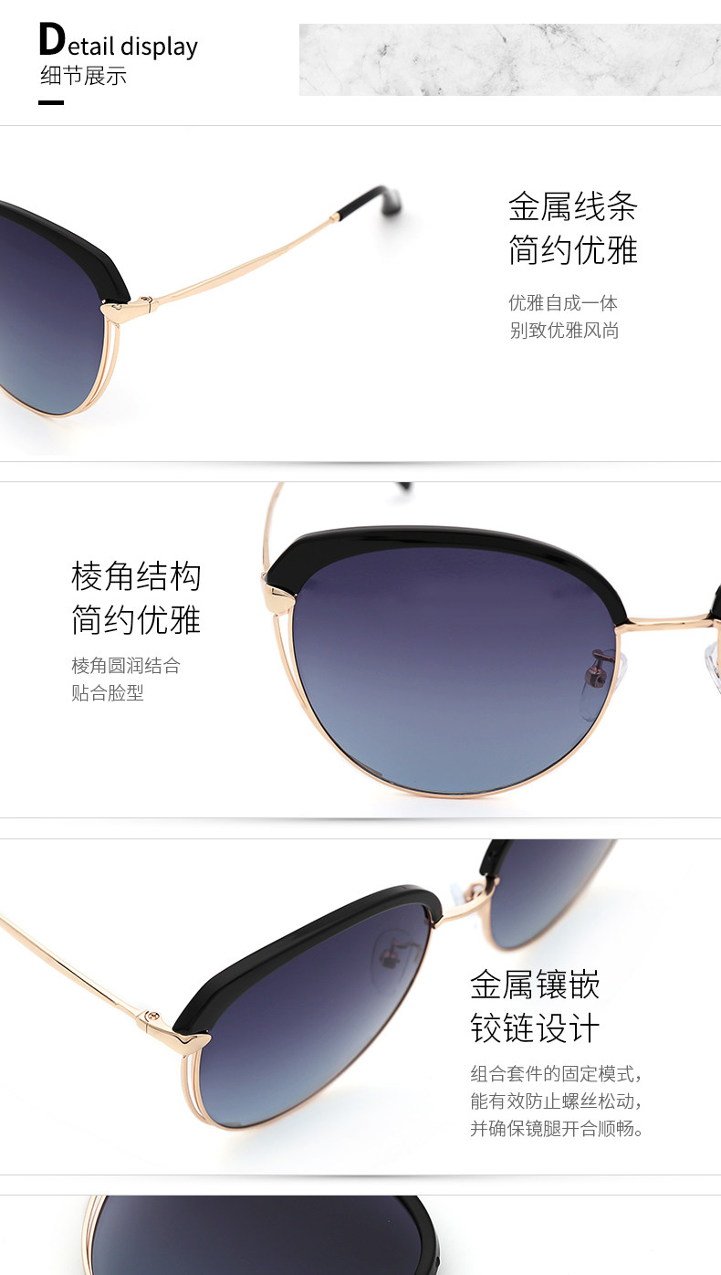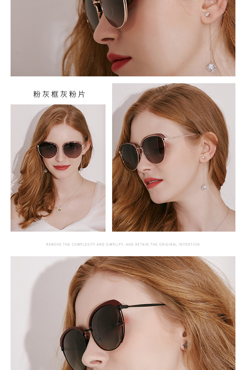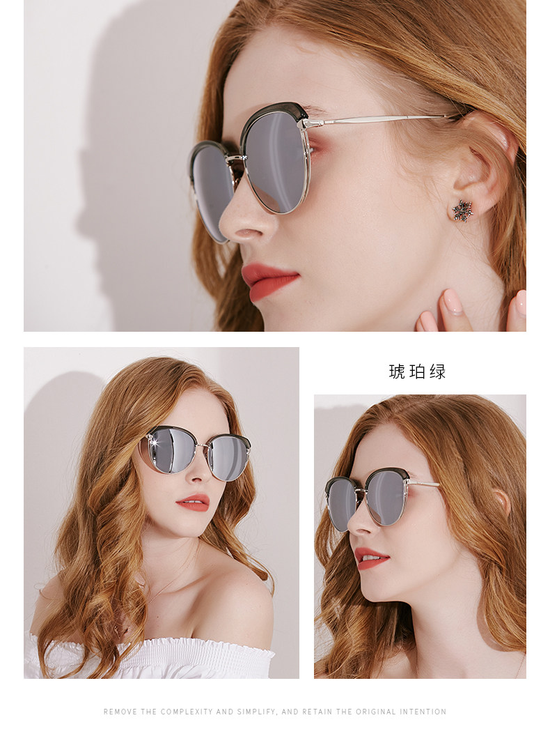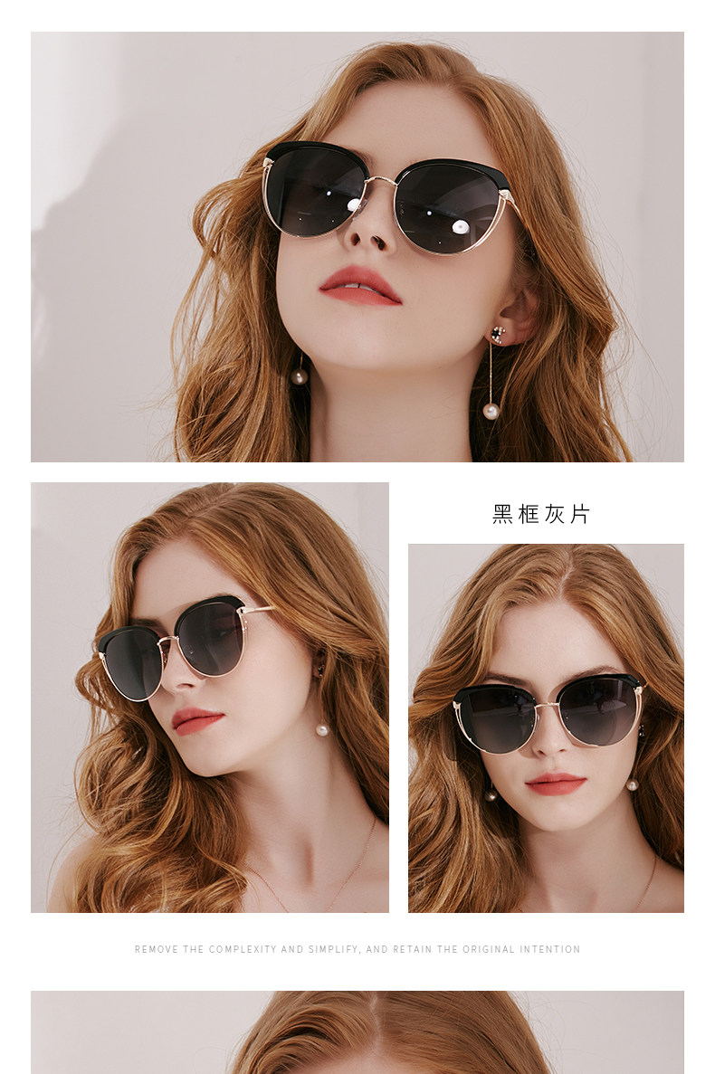 Sunglasses for Women, Korean Style Trendy Sunglasses, Women's Anti-Uv Polarized Round Face Cat-Eye Retro ins Women's Driving Glasses