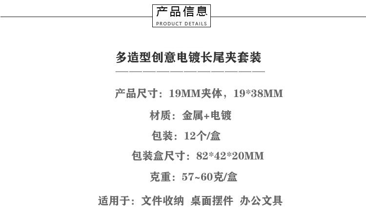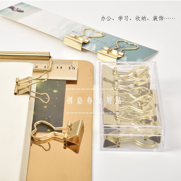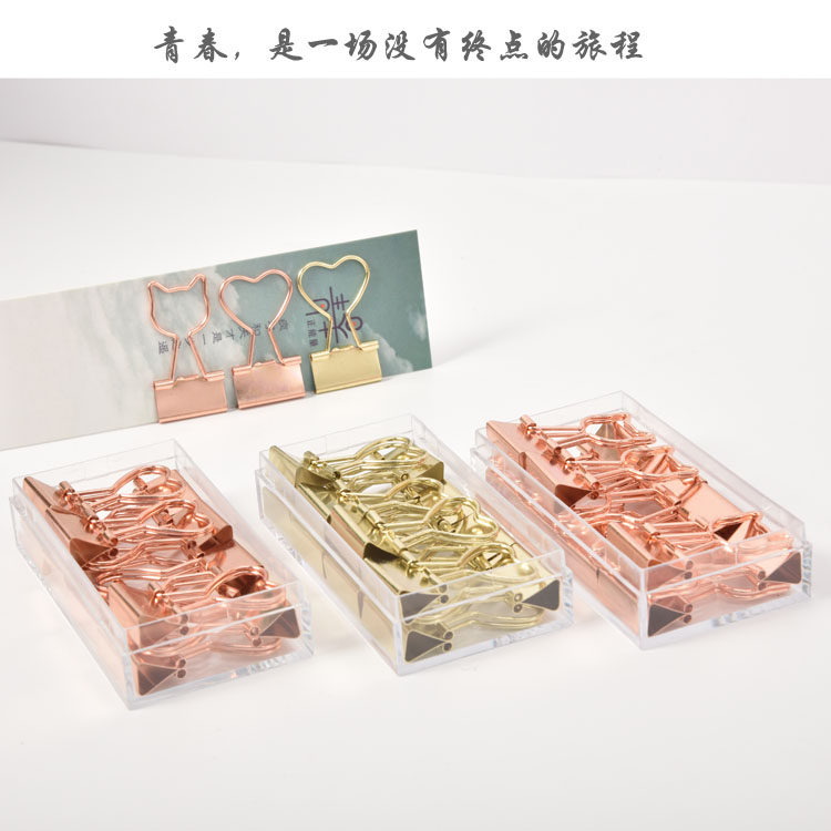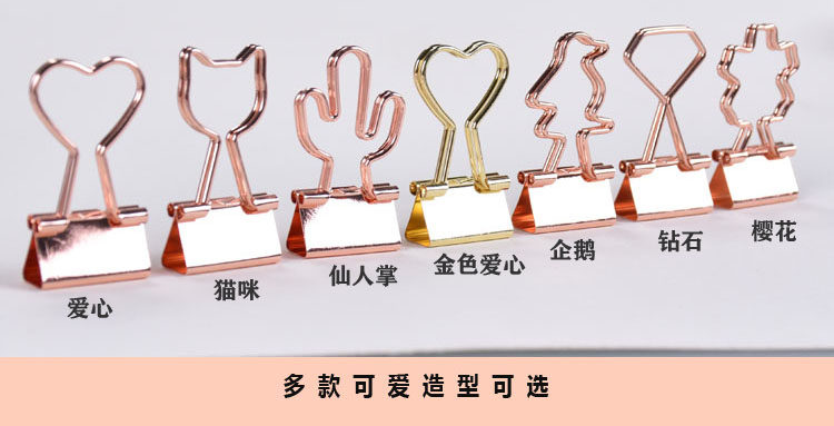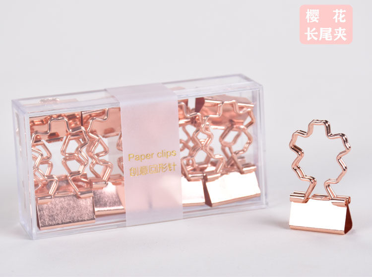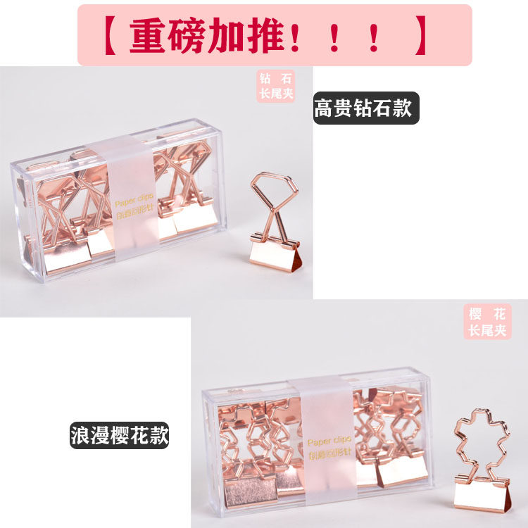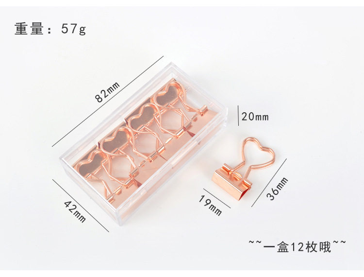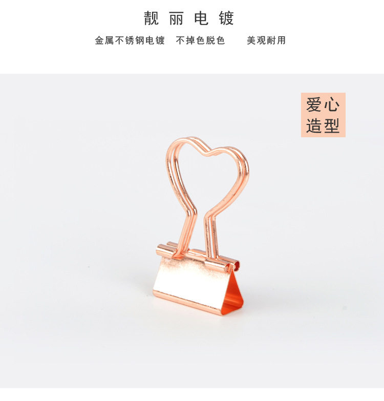 Creative office stationery high-end rose gold love swallowtail clip 12 pack information storage long tail clip cartoon