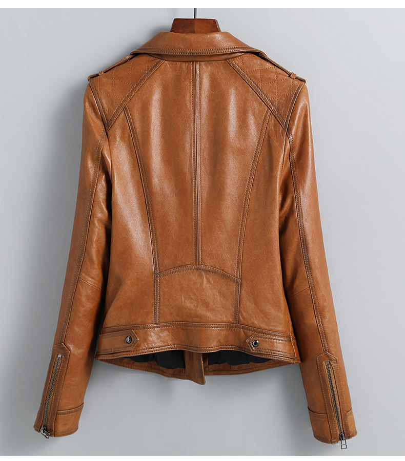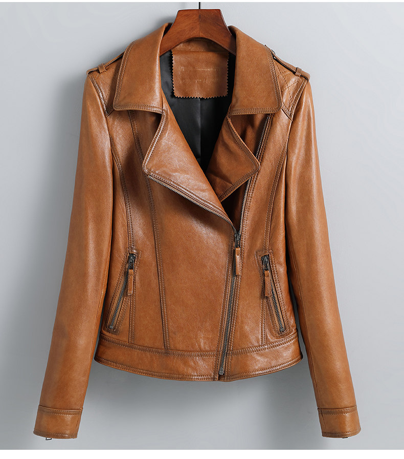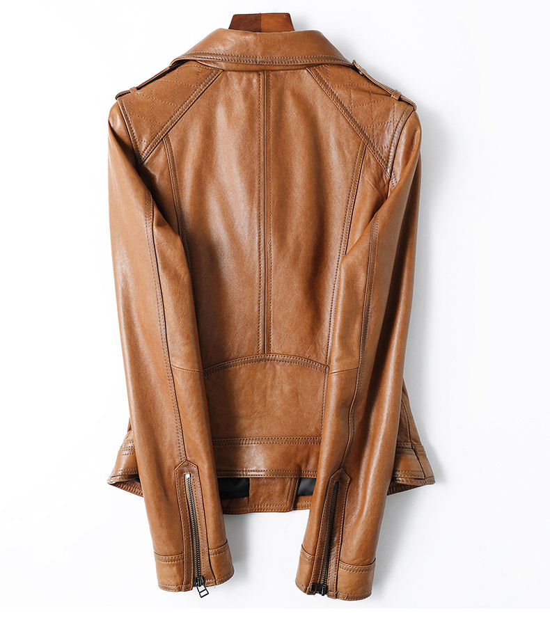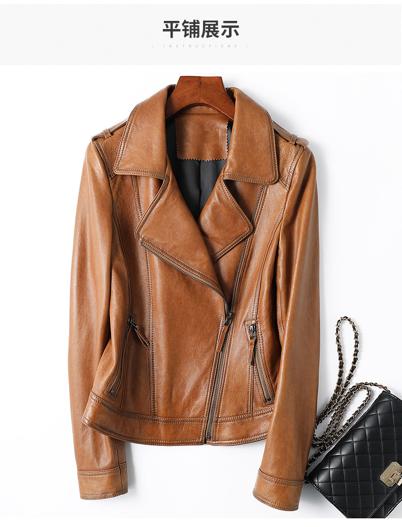 2024 Spring New Short Genuine Leather Jacket Women's Washed Imported Sheepskin Suit Lapel Motorcycle Leather Jacket Slim Fit