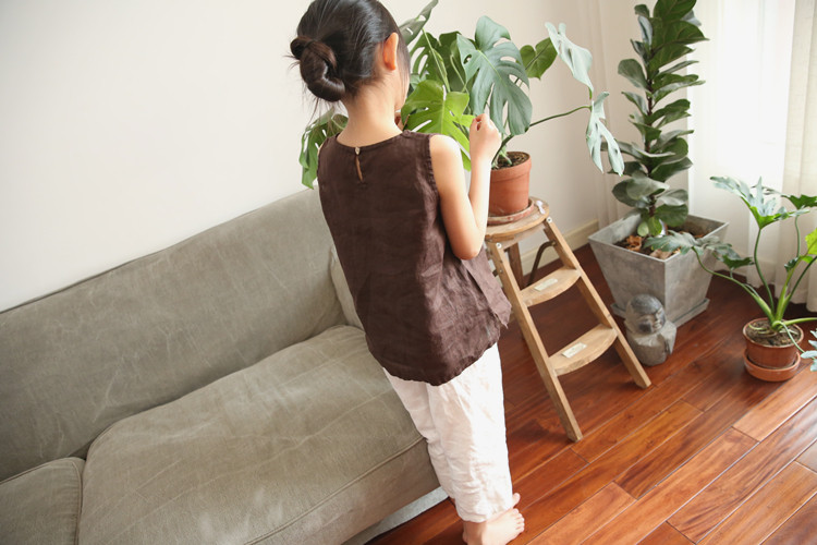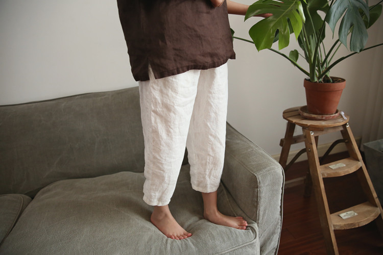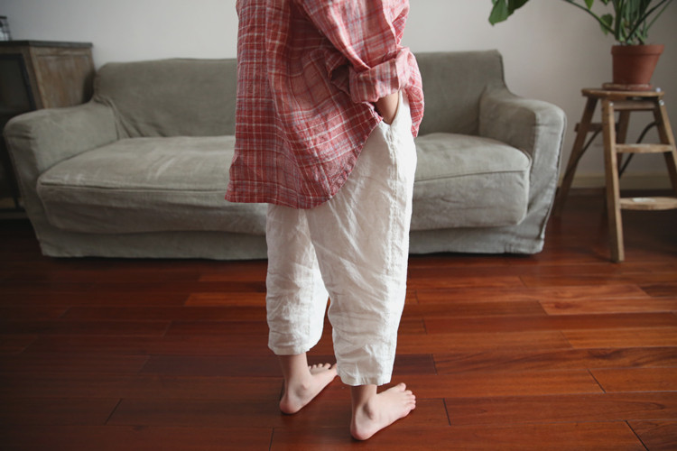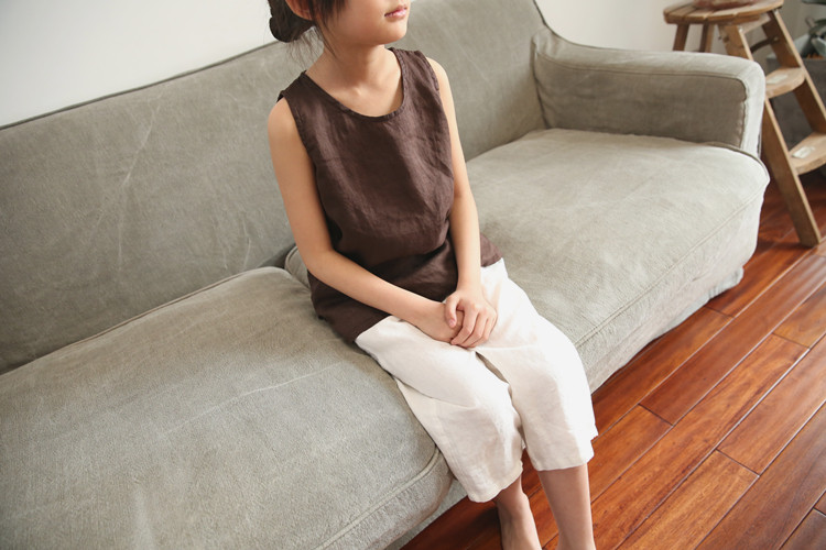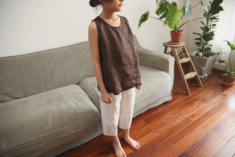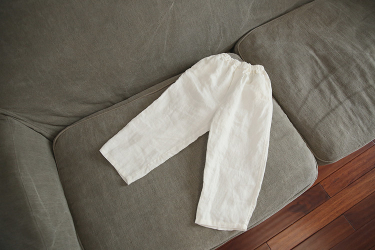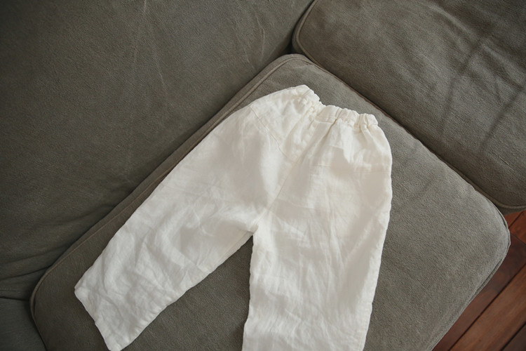 Qiji Original Summer New Product Medium and Large Children's White Cropped Pants Boys and Girls Linen Casual Pants Literary Style