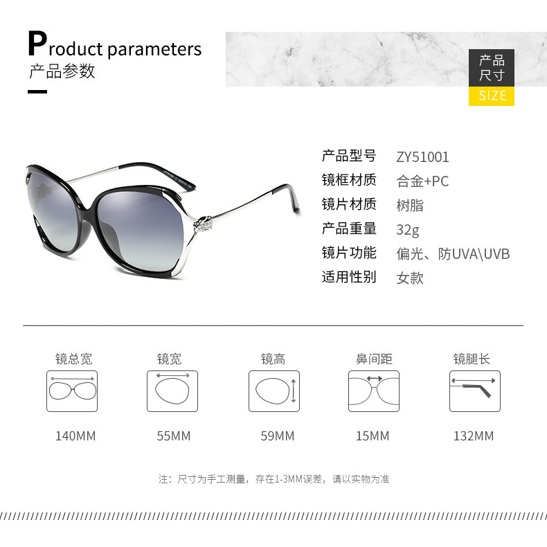 Polarized sunglasses for women, UV protection, 2025 new brand, round face, fashion, big face, personality, Korean style sunglasses trend