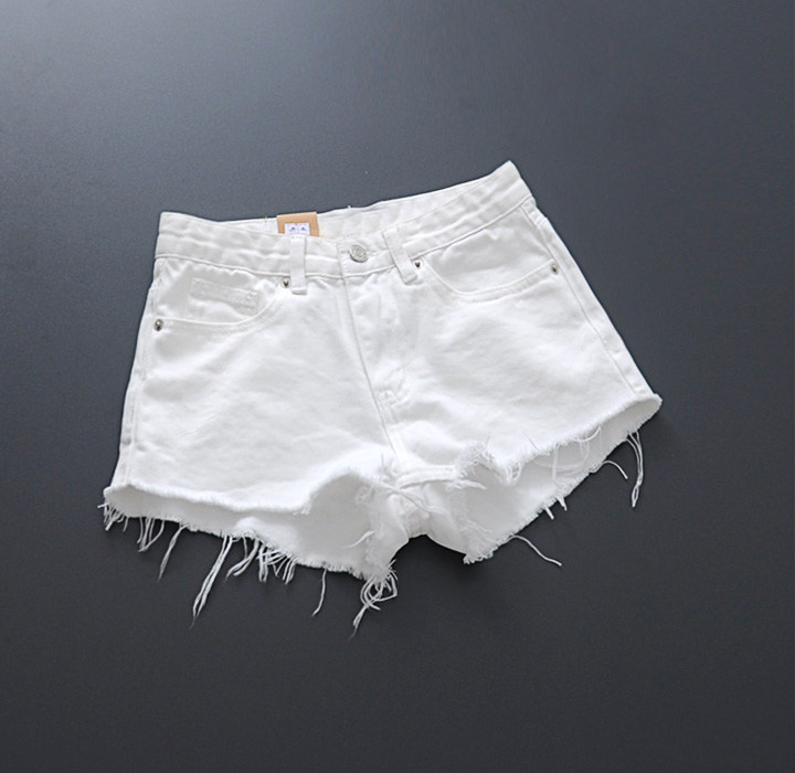 European and Korean Style 2024 Spring/Summer New Arrival ins Slimming Versatile Wide-Leg Pants White Frayed Denim Shorts Women's Hot Pants