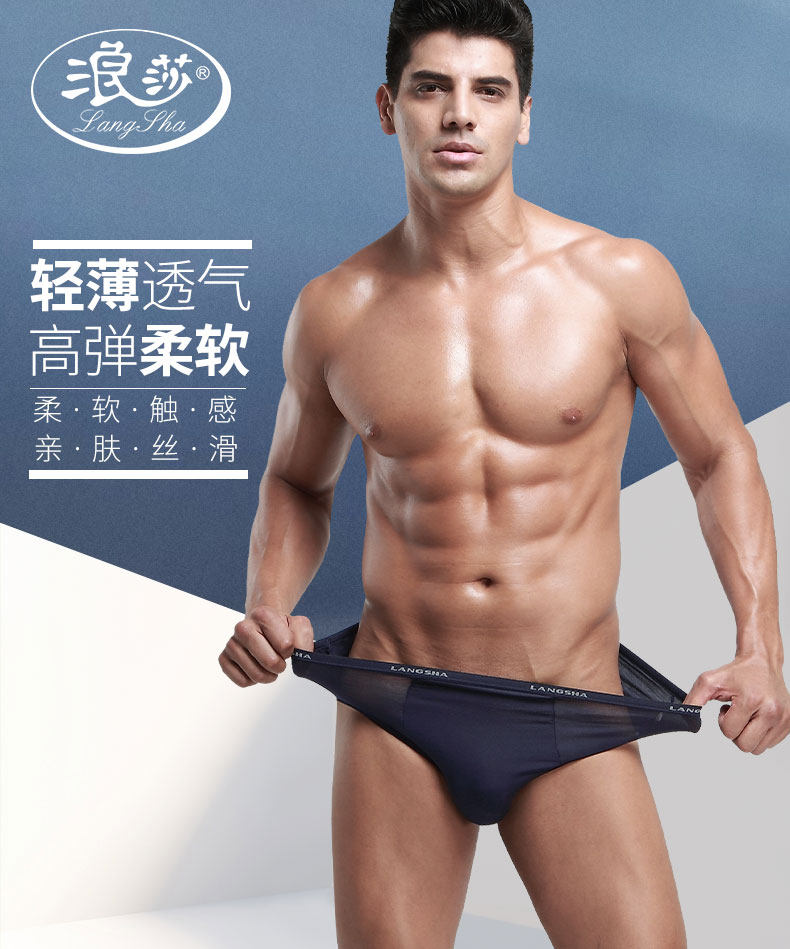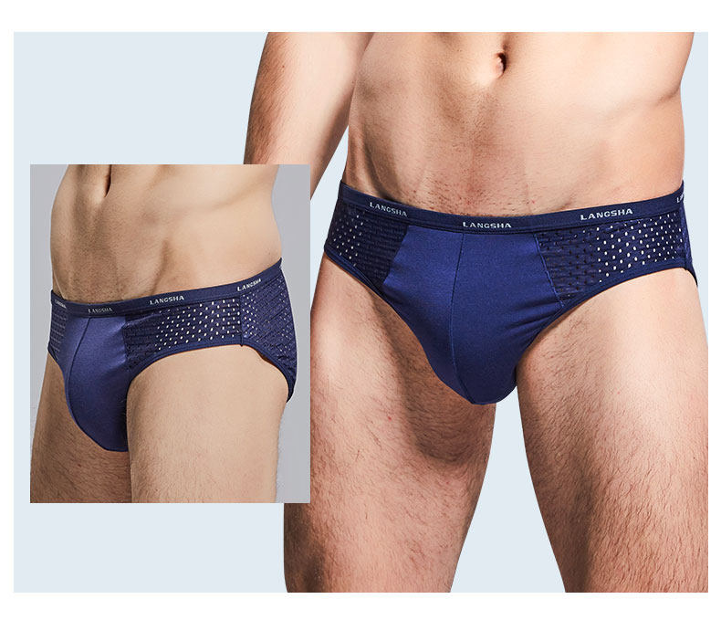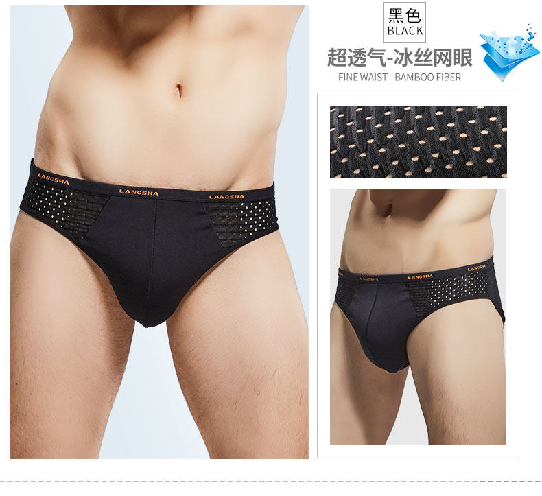 Langsha men's underwear boys ultra-thin shorts briefs men's underwear boys breathable ice silk mesh shorts men's