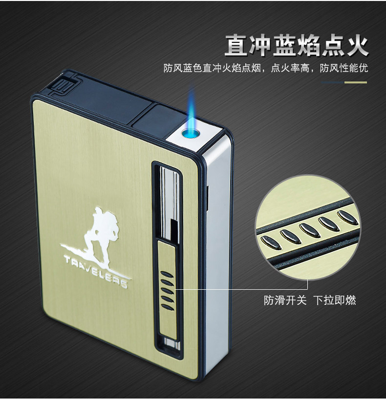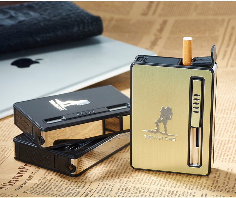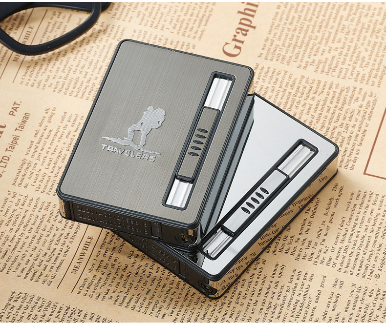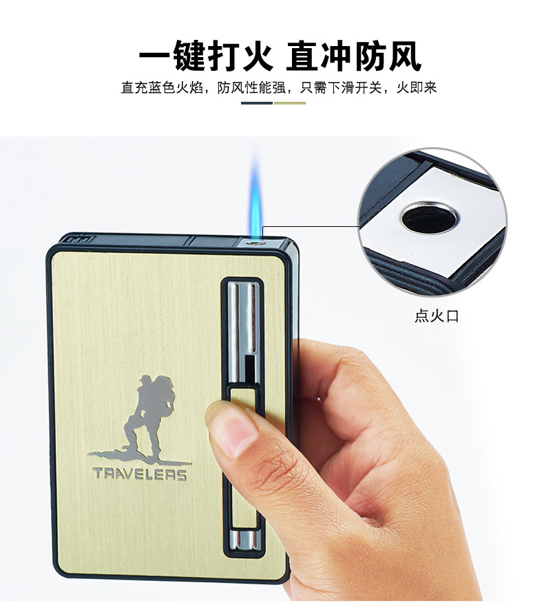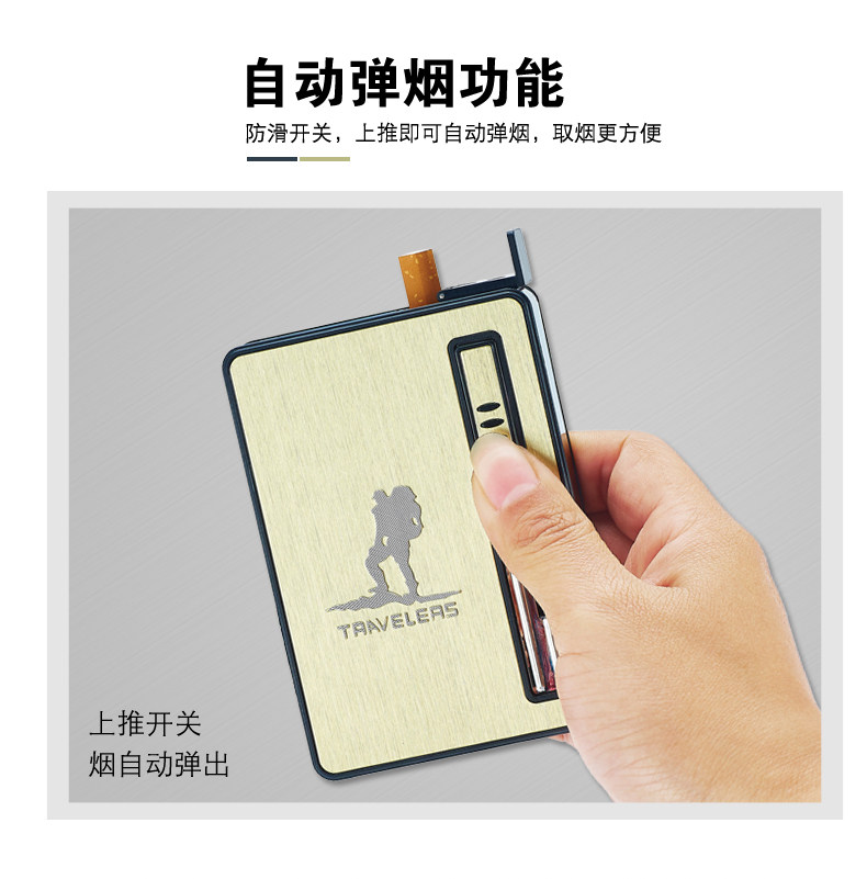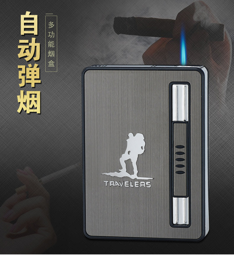 Internet Celebrity Cigarette Case with Lighter, 20-Cigarette Capacity, Automatic Ejection, Creative and Personalized Windproof Portable Cigarette Box for Men