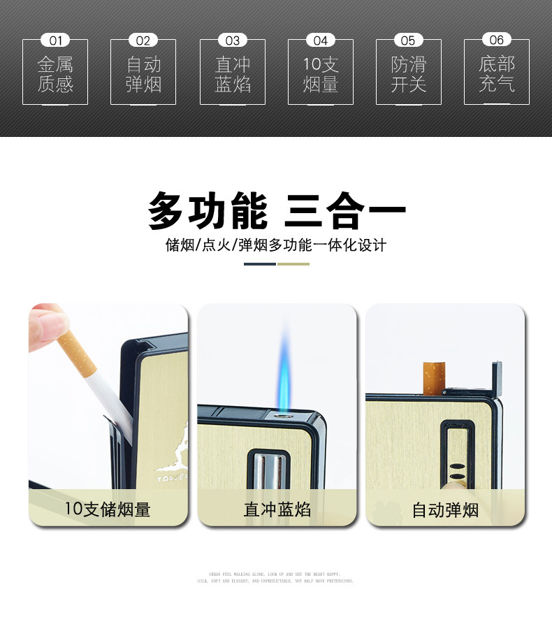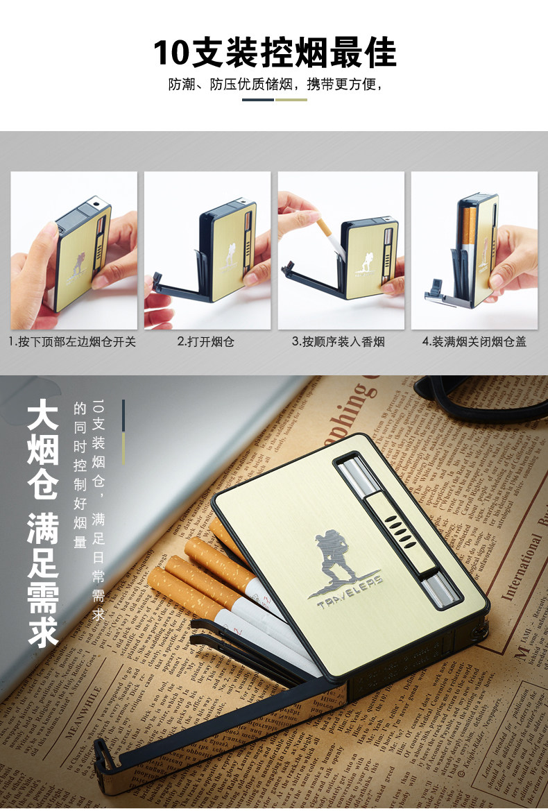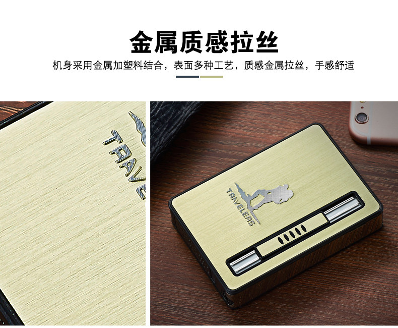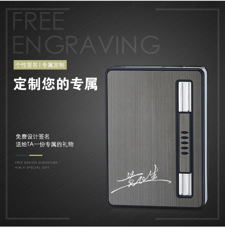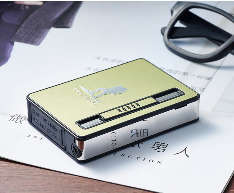 Internet Celebrity Cigarette Case with Lighter, 20-Cigarette Capacity, Automatic Ejection, Creative and Personalized Windproof Portable Cigarette Box for Men