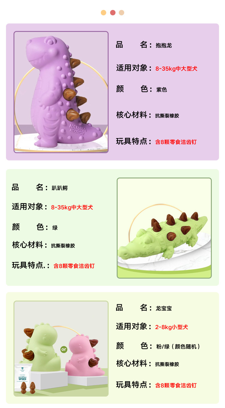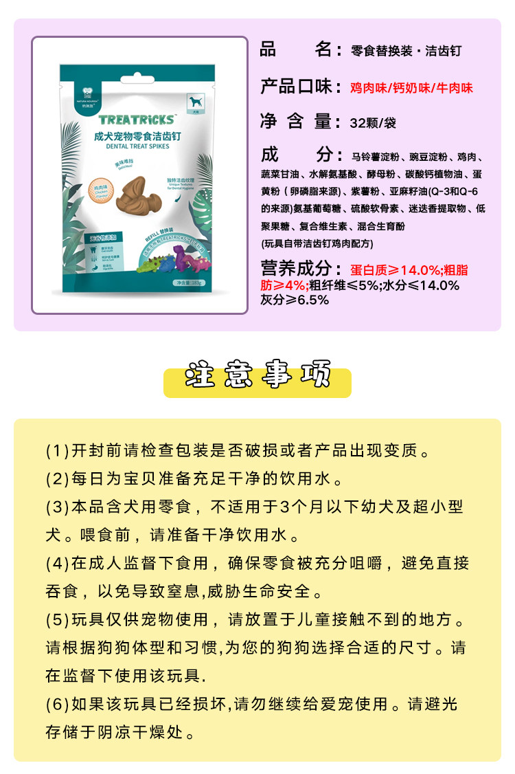 Food flavor Pale Pink Stegosaurus (Contains 8 Chicken Flavor Nails) August 26,Light Blue Hedgehog (Contains 7 Chicken Flavor Nails) August 26,Light Green Alligator (Contains 8 Chicken Flavor Nails) October 26,Lilac Tyrannosaurus Rex (Contains 8 Chicken Flavor Nails) March 26,Nail refills (chicken flavor 32 pieces) August 26,Nail refills (beef flavor 32 pieces) October 26,Nail refills (calcium milk flavor 32 pieces) June 26,4 nail refills get 1 free chicken and calcium milk, please contact customer service if you need it