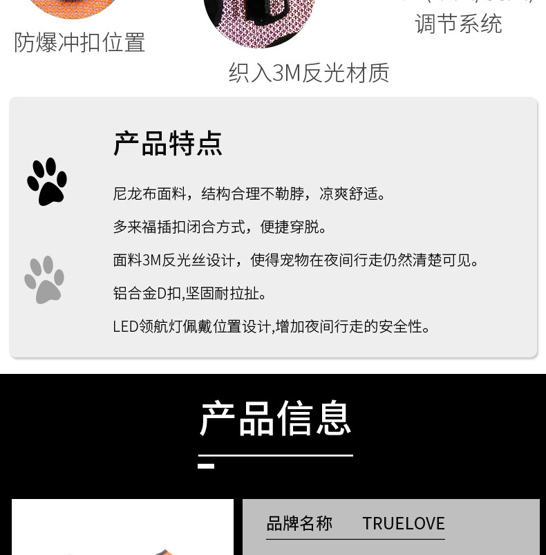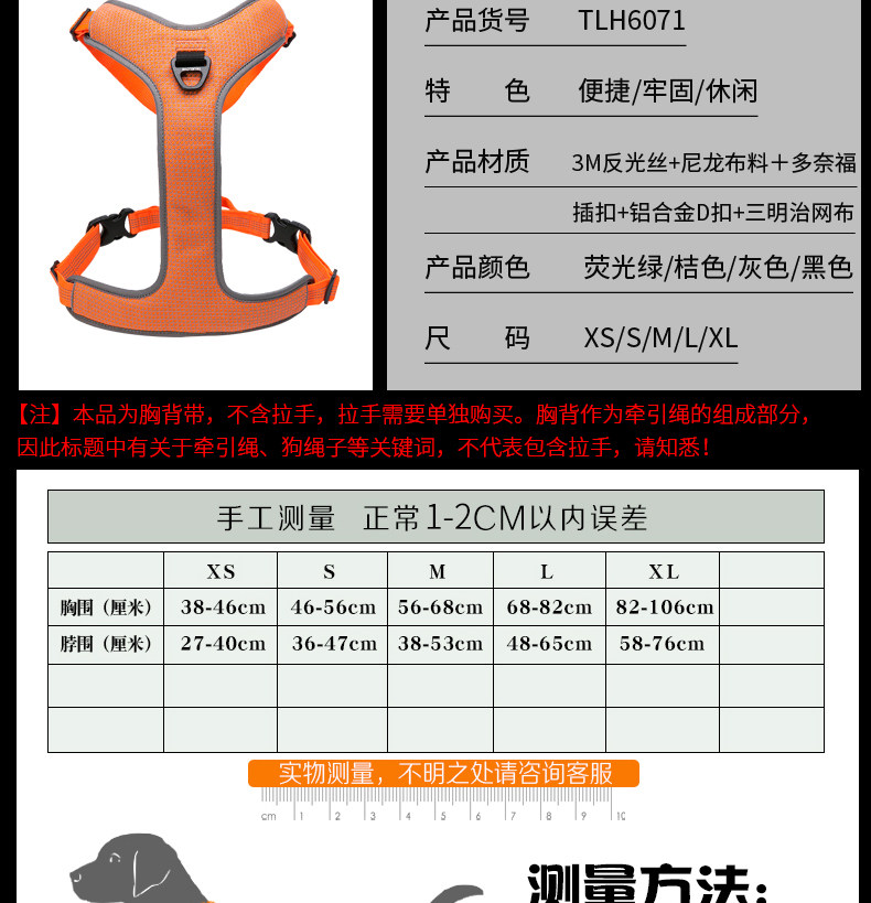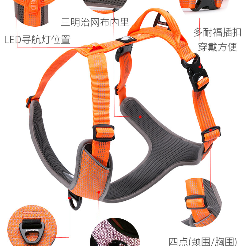 Truelove Dog Leash Pet Harness Vest-Style Dog Chain Walking Leash Small, Medium and Large Dog Supplies