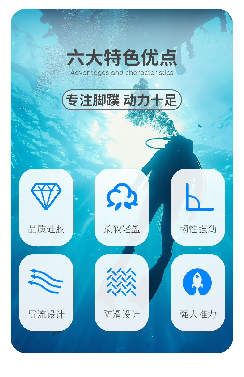 Diving professional deep diving long fins four-line King Kong spring heel with open heel scuba fins free diving equipment