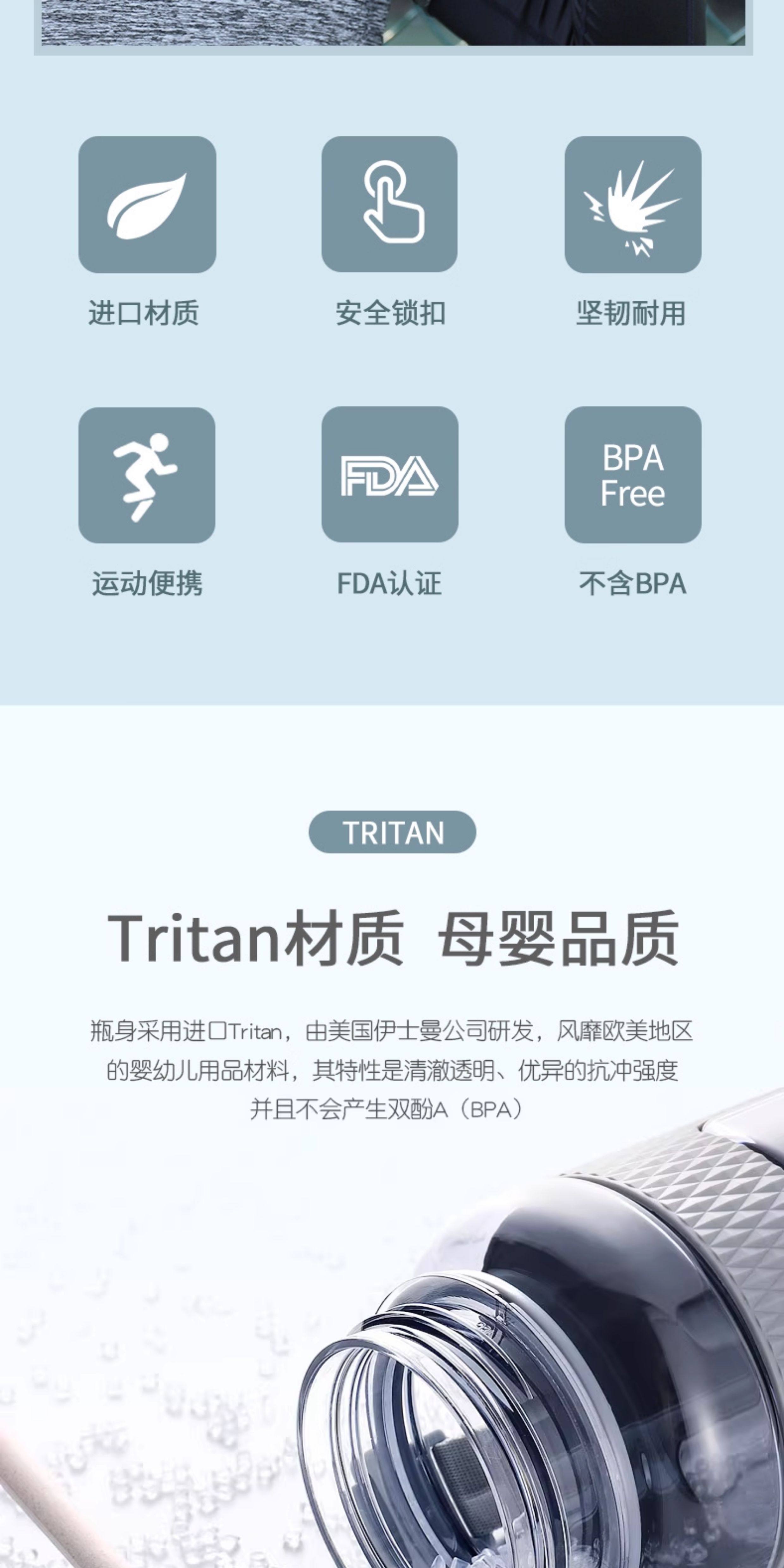 Student water cup large capacity anti-fall and anti-scalding fitness middle school student sports water bottle plastic portable cup for boys summer
