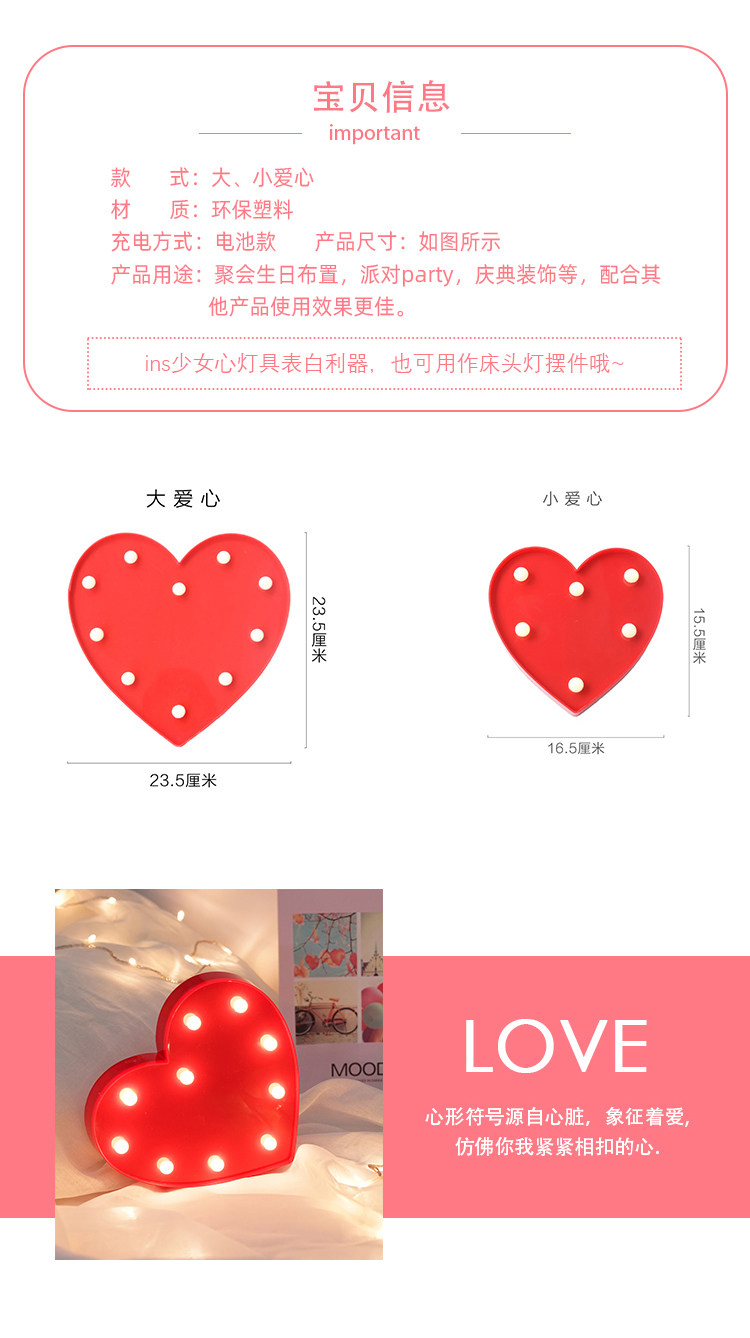Chinese Valentine's Day LED heart-shaped light proposal arrangement creative supplies decoration ins love glow birthday party light surprise