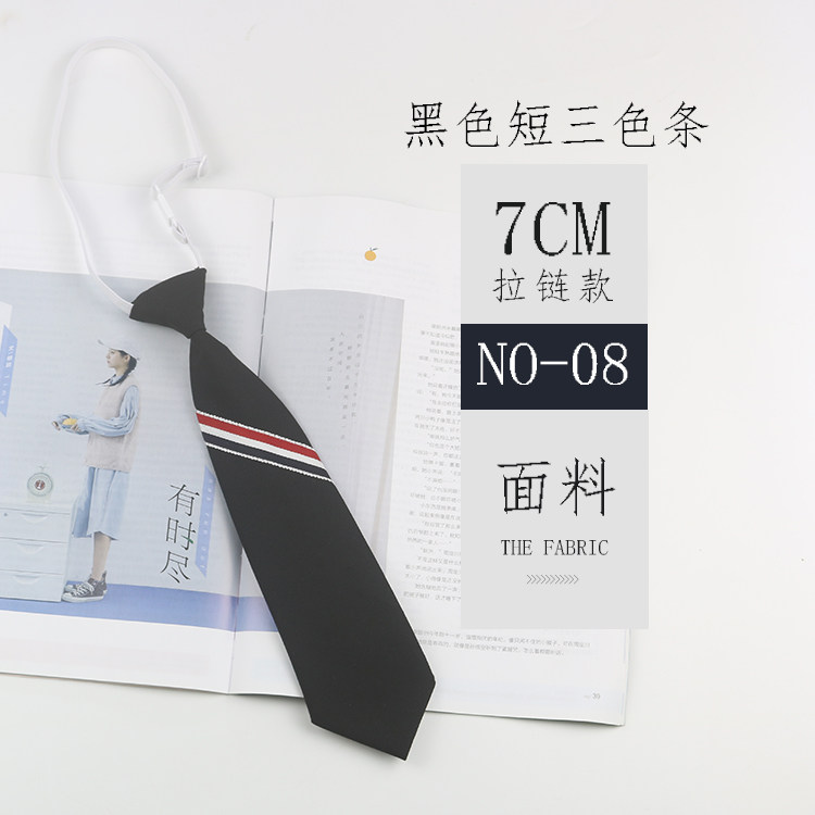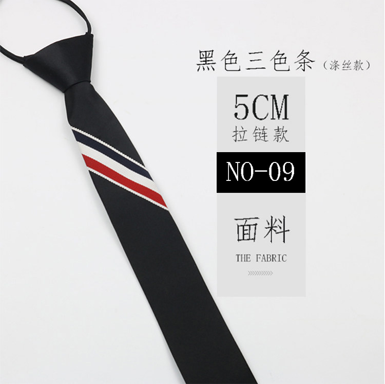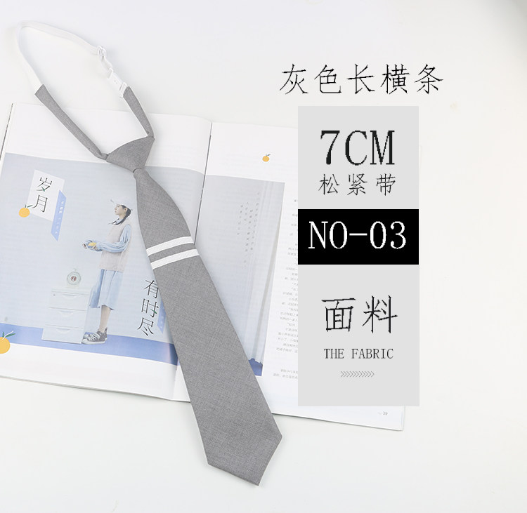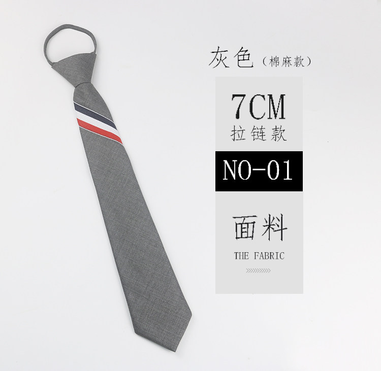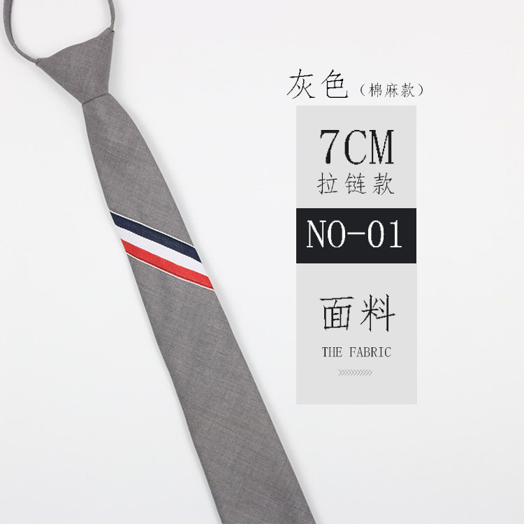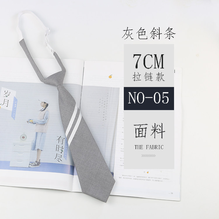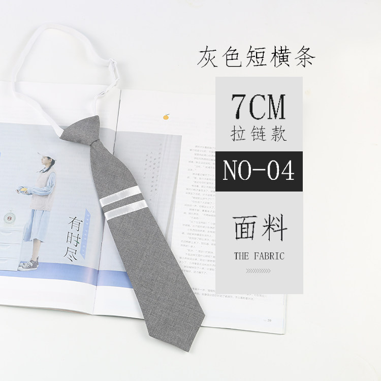 Tie Similar to Cyndi Wang's Style, Unisex, Narrow Korean Version, ins Lazy Zipper, Black, Gray, Three-Color Striped, Dk Trendy, Jk Japanese Style