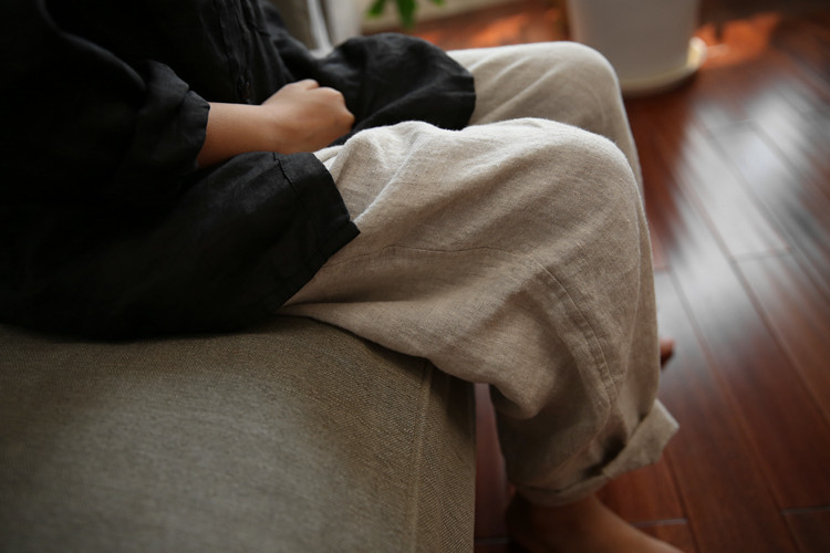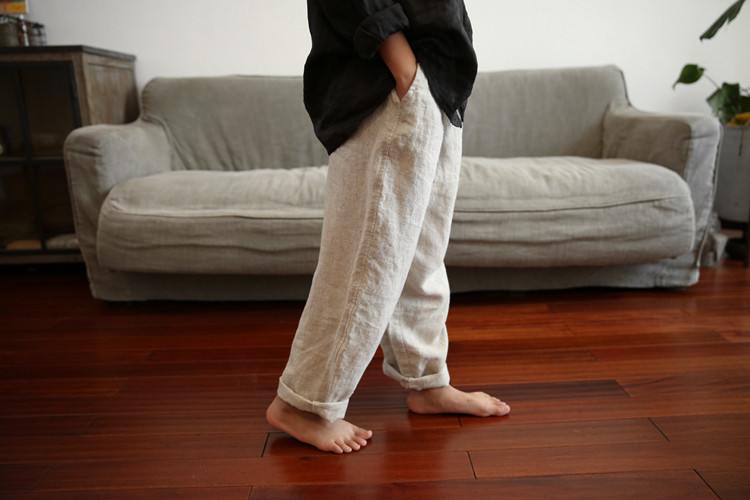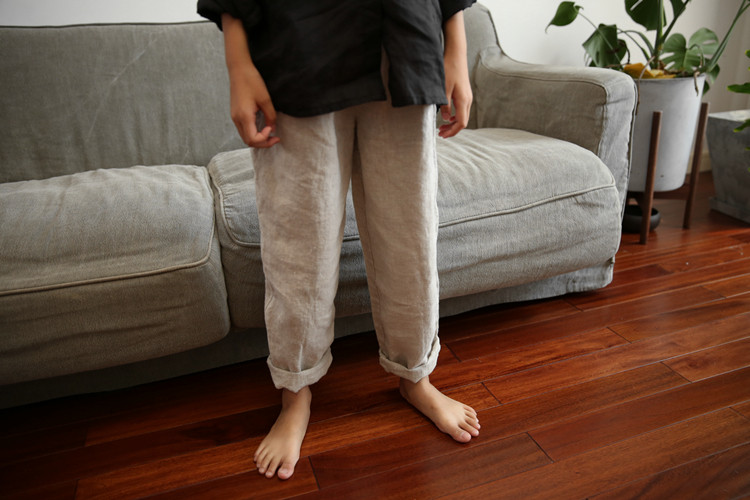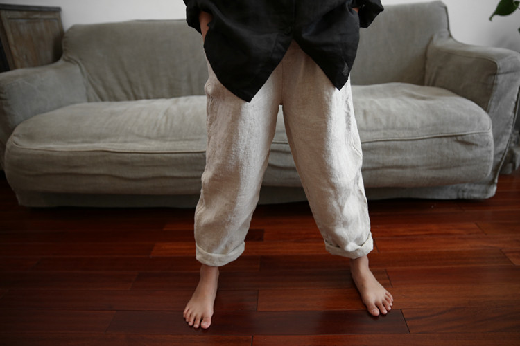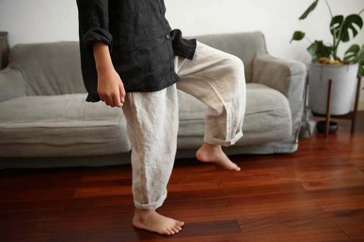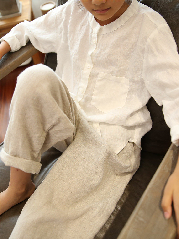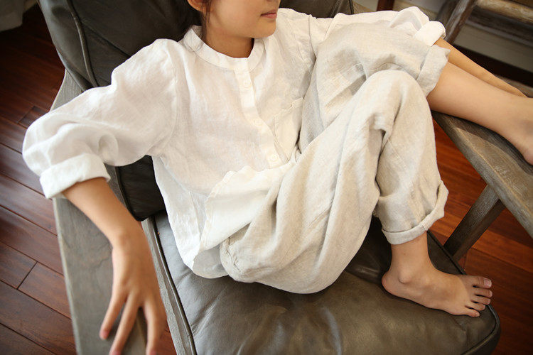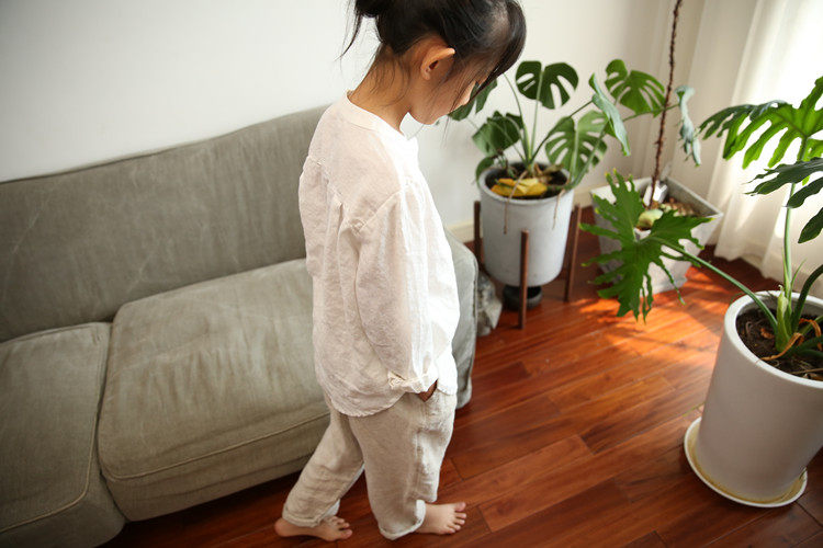 Qiji spring and autumn new children's clothing children's linen casual trousers boys and girls artistic style trousers solid color parent-child
