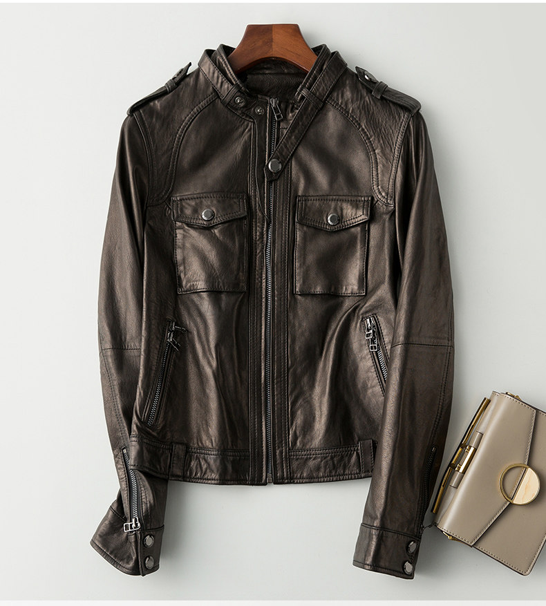 2023 New Small Genuine Leather Jacket Women's Short Motorcycle Sheepskin Slim High Waist Jacket Spring and Autumn Haining