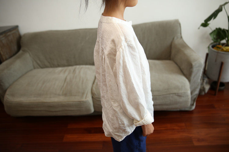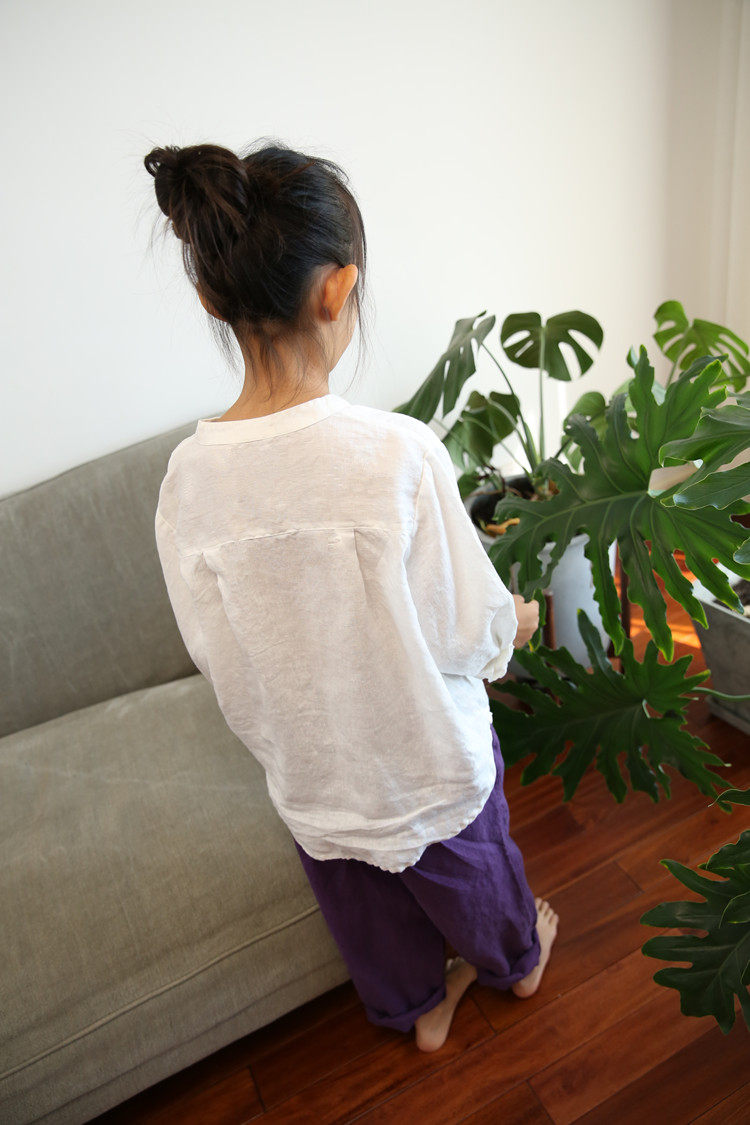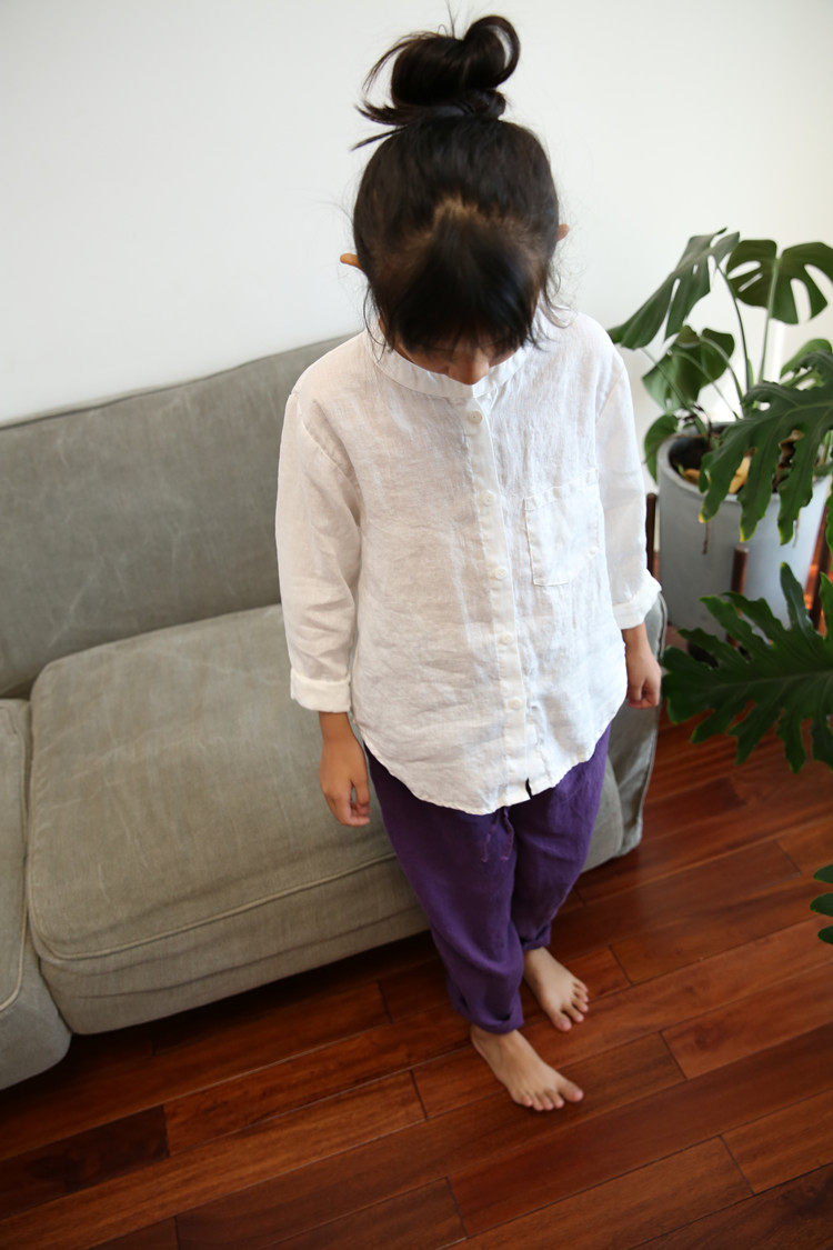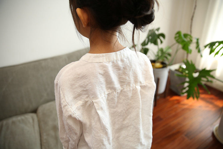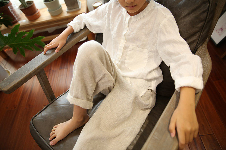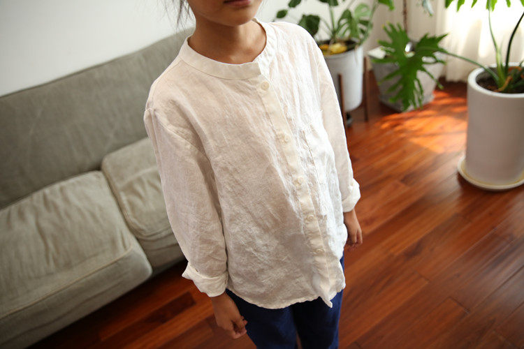 Qiji spring and autumn new children's clothing for boys and girls, linen long-sleeved white shirts, medium and large children's casual stand-up collar shirts for parents and children