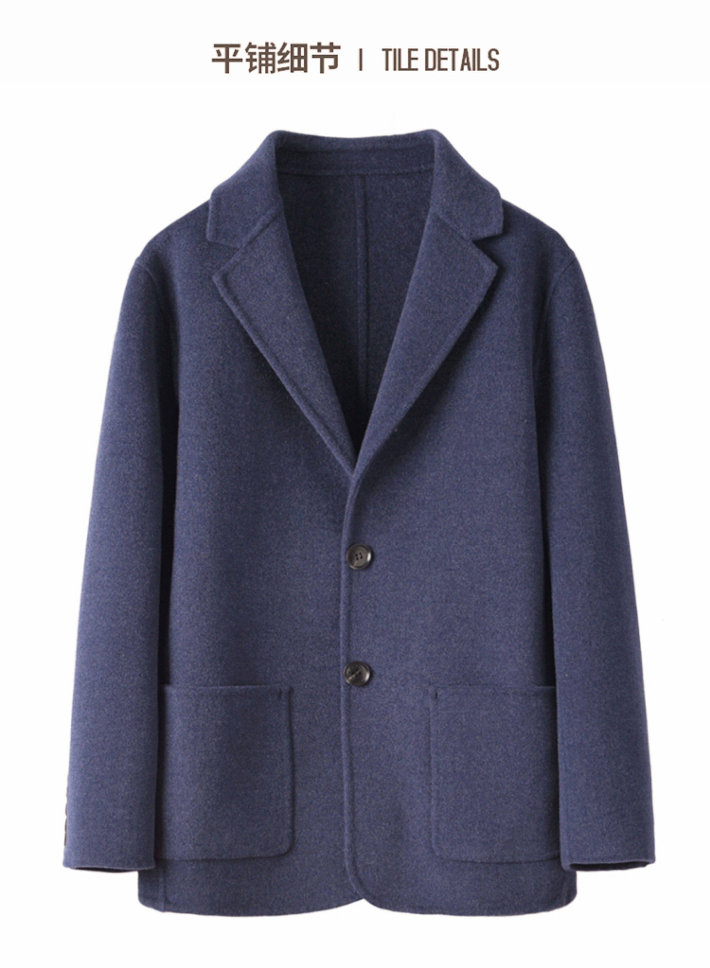 Spring, Autumn and Winter New Style Suit Collar Solid Color Coat for Men 100% Double-Sided Wool Short Casual Slim Fit Jacket