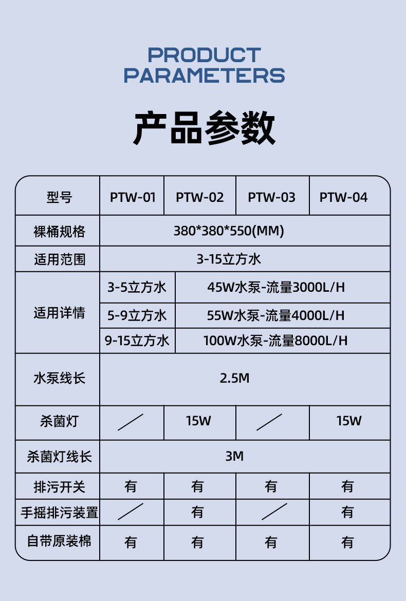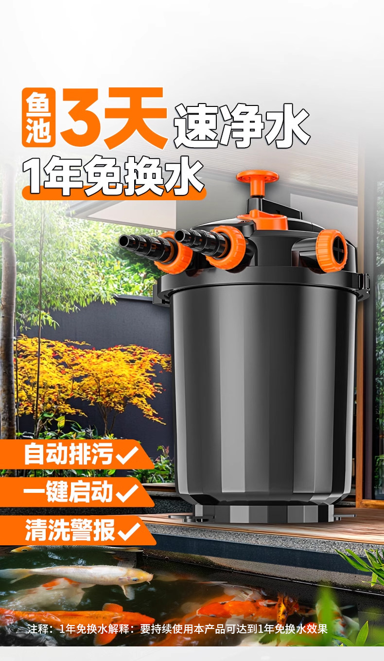 Sort by color Hand-cranked pond bucket/EFU-10000A bare model without pump,Water pump 45W hand crank pond bucket/EFU-10000A,Water Pump 55W Hand Pond Bucket/EFU-10000A,Water pump 100W hand crank pond bucket/EFU-10000A,Brand new 25L large capacity upgrade, automatic sewage discharge | 3-layer circulation penetration | cleaning alarm (photographed 05 bare barrel).,1-year water pump warranty! 5-year barrel warranty! (Photographed 01 bare barrel).,05/Bare bucket without water pump.,01/Simple naked model/no water pump.,01/Water pump 45W, suitable for 0-5 cubic meters of water, complete package for fish pond maintenance.,01/Water pump 55W, suitable for 6-9 cubic meters of water, complete package for fish pond maintenance.,01/Water pump 100W, suitable for 9-15 cubic meters of water, complete package for fish pond maintenance.,02/Simple sterilization model/no water pump.,02/Water pump 45W, suitable for 0-5 cubic meters of water, complete package for fish pond maintenance.,02/Water pump 55W, suitable for 6-9 cubic meters of water, complete package for fish pond maintenance.,02/Water pump 100W, suitable for 9-15 cubic meters of water, complete package for fish pond maintenance.,03/Hand crank model/without water pump.,03/Water pump 45W, suitable for 0-5 cubic meters of water, complete package for fish pond maintenance.,03/Water pump 55W, suitable for 6-9 cubic meters of water, complete package for fish pond maintenance.,03/Water pump 100W, suitable for 9-15 cubic meters of water, complete package for fish pond maintenance.,04/Hand-crank sterilization model/without water pump.,04/Water pump 45W, suitable for 0-5 cubic meters of water, complete package for fish pond maintenance.,04/Water pump 55W, suitable for 6-9 cubic meters of water, complete package for fish pond maintenance.,04/Water pump 100W, suitable for 9-15 cubic meters of water, complete package for fish pond maintenance.,New customer experience | Be the first to buy the same popular model | First come first served! (Photo taken and pfd90000 bare box will be sent).,Round mouth 90*50*50cm, suitable for 45-75 square meters of water/bare box.,Round mouth 90*50*50cm, suitable for 45-75 square meters of water/filter material package.,Round mouth 90*50*50cm, suitable for 45-75 square meters of water/full set meal.,There is only one left/waterfall mouth 40*31.5*27, suitable for 0-10 tons of water/bare tank.,Waterfall mouth 40*31.5*27 suitable for 0-10 tons water/filter material package.,Waterfall mouth 40*31.5*27 suitable for 0-10 tons of water/full package.,Waterfall mouth 60*45*45 suitable for 30-50 tons of water/bare tank.,Waterfall mouth 60*45*45 suitable for 30-50 tons water/filter material package.,Waterfall mouth 60*45*45 suitable for 30-50 tons of water/full package.,1,2,3,4,5,6,7,8,9,10,12,11,13,14,15,16,17,18,19,20,21,22,23,24,25,26,27,28,29