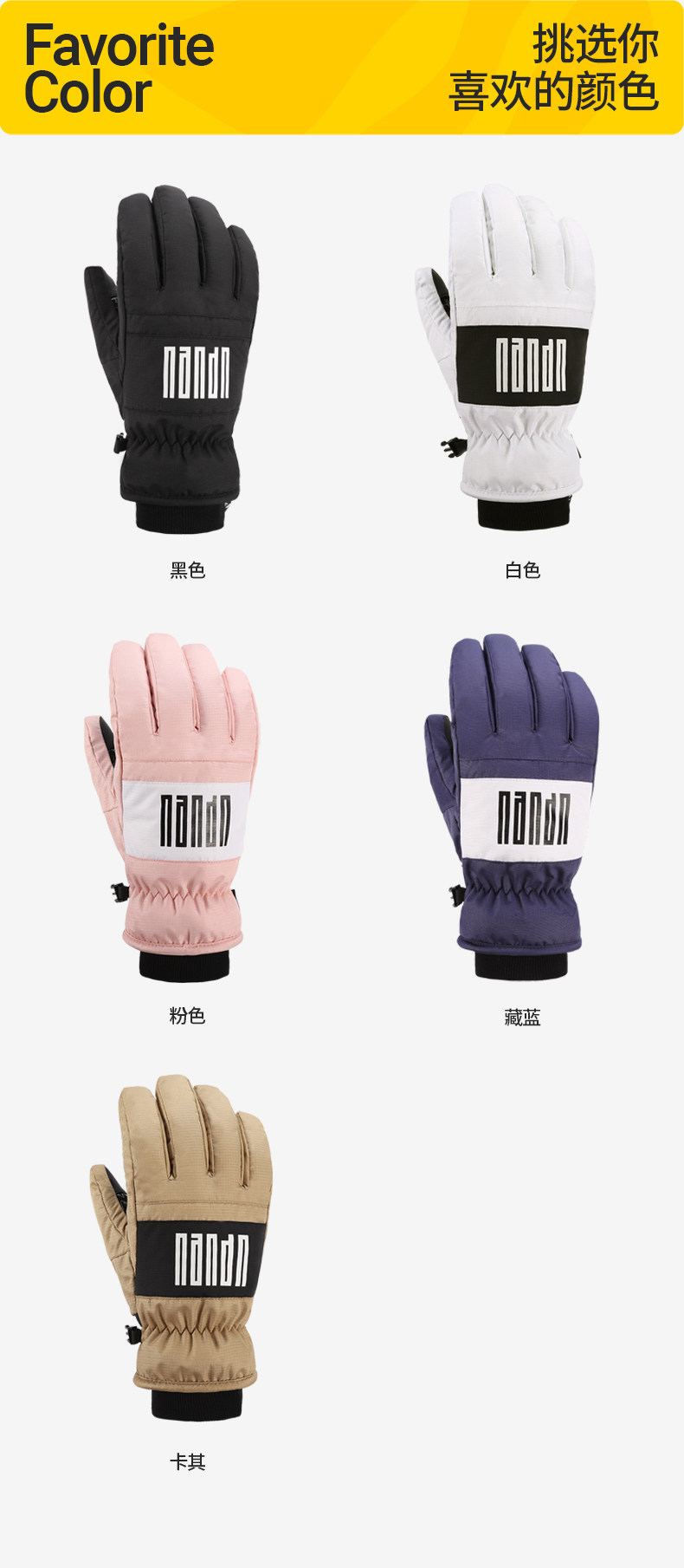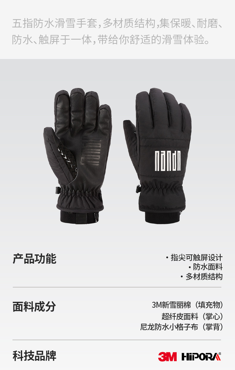 Nandn New Ski Gloves Five-Finger Waterproof, Warm, Wear-Resistant, Touch-Screen Cycling Gloves for Men and Women 5006