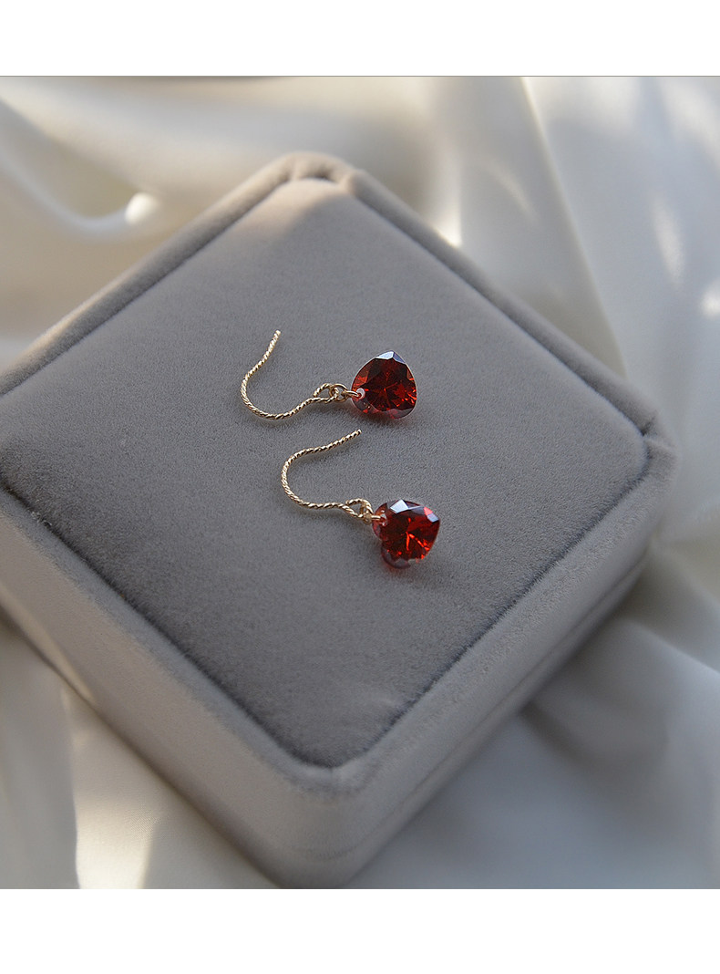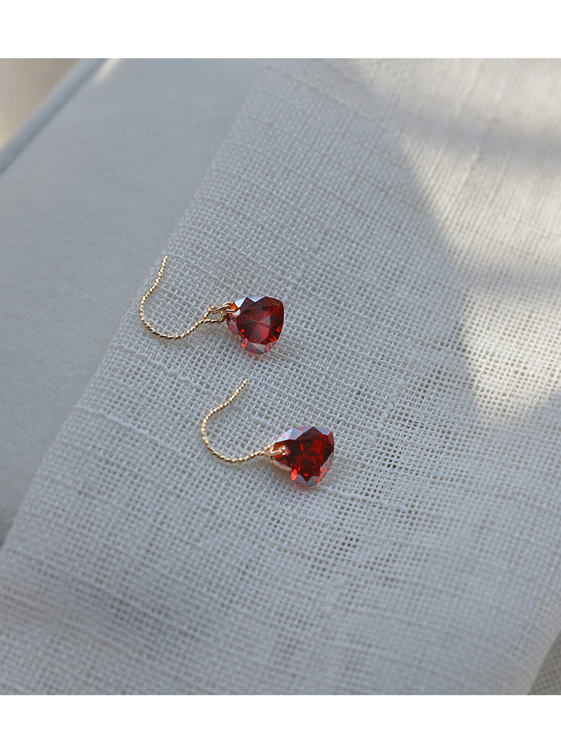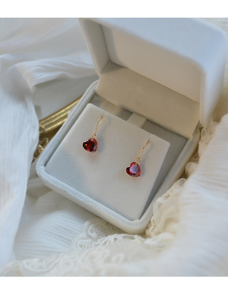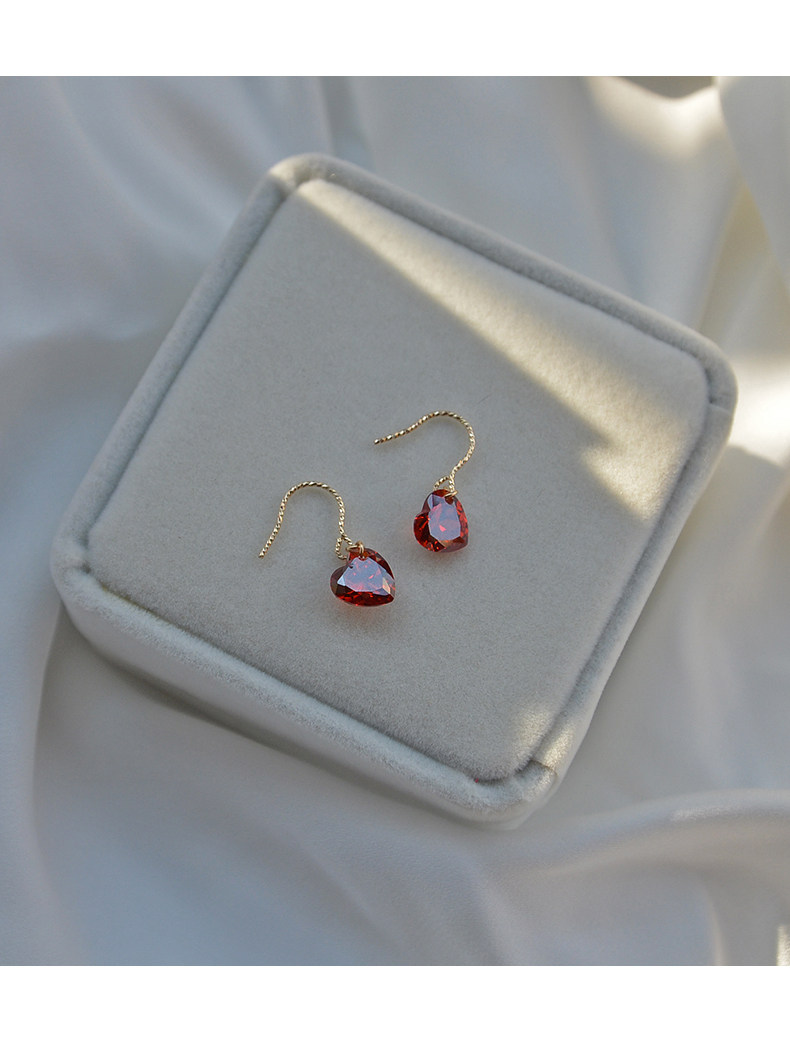 High-end love earrings, feminine 14k gold-filled niche elegant crystal rhinestone red heart-shaped earrings autumn and winter