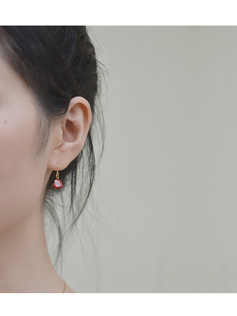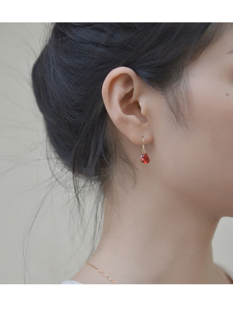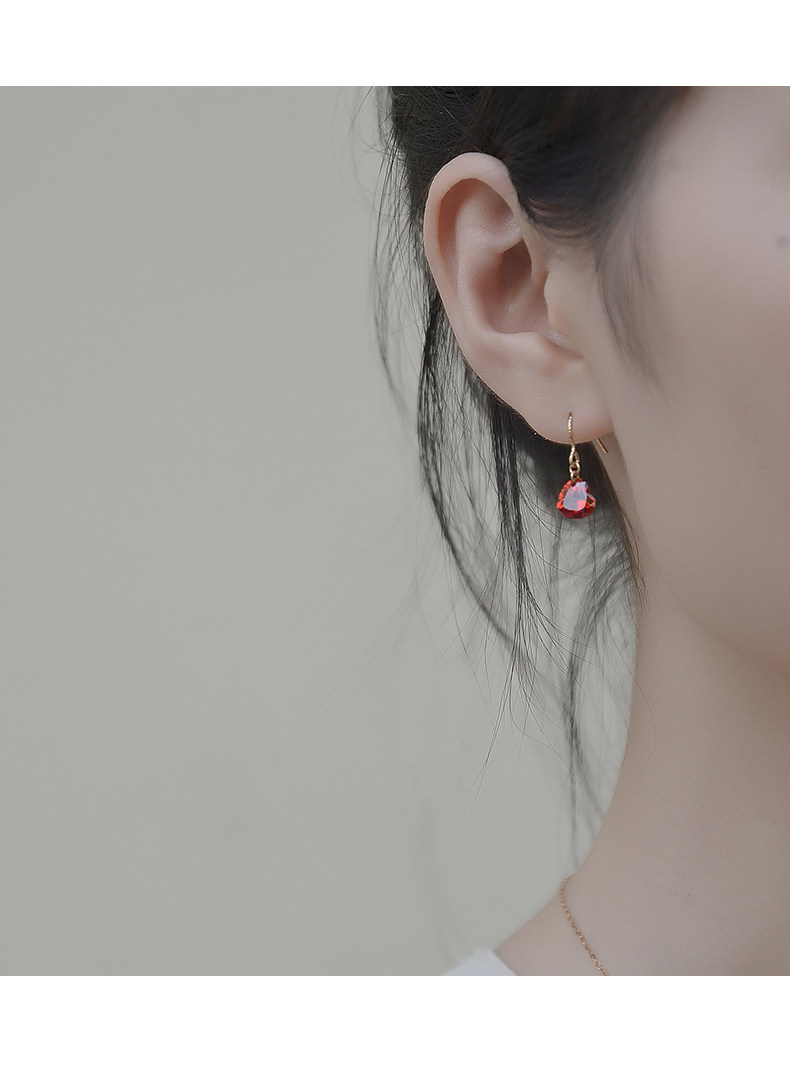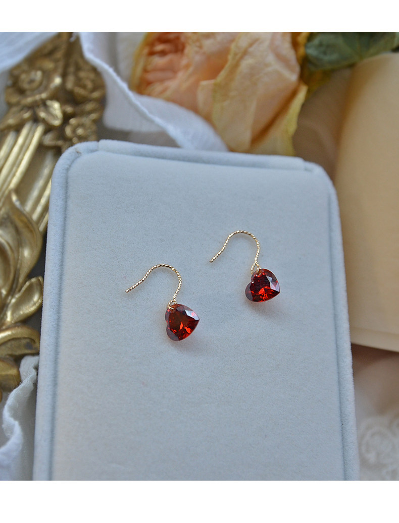 High-end love earrings, feminine 14k gold-filled niche elegant crystal rhinestone red heart-shaped earrings autumn and winter