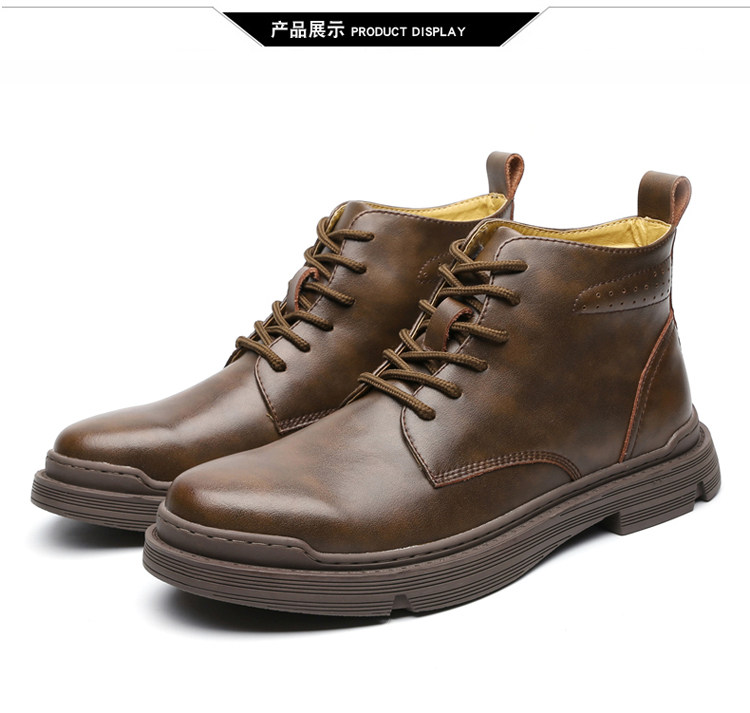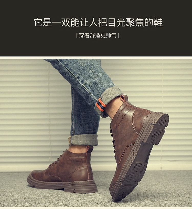 Martin Boots for Men, Winter High-Top with Fleece Lining, British Style Work Boots, Mid-Top Short Boots, Snow Boots, Vintage Genuine Leather Trendy Boots