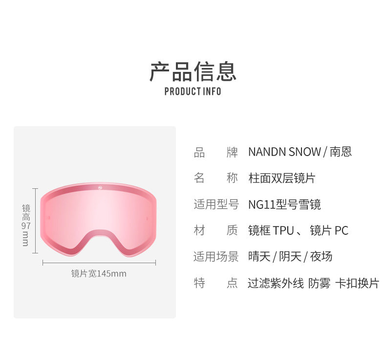 [Ng11 Spare Lens] Nandn Replacement Lens for Ski Goggles, Spare High-Definition Lens, Enhanced Night Vision Lens