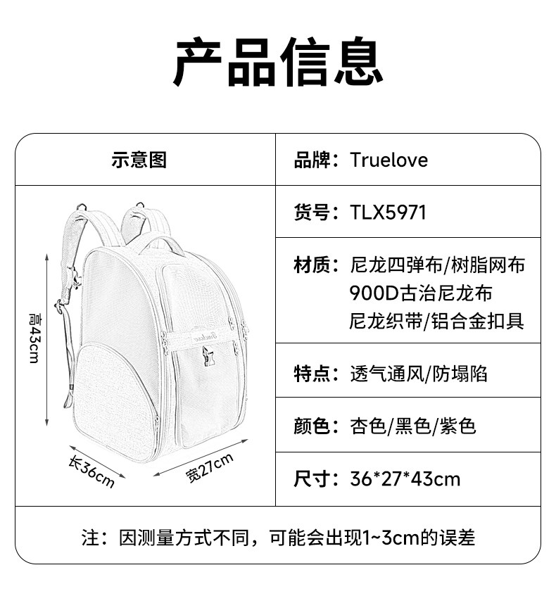 Truelove pet backpack dog small dog teddy outing bag portable backpack breathable bichon supplies